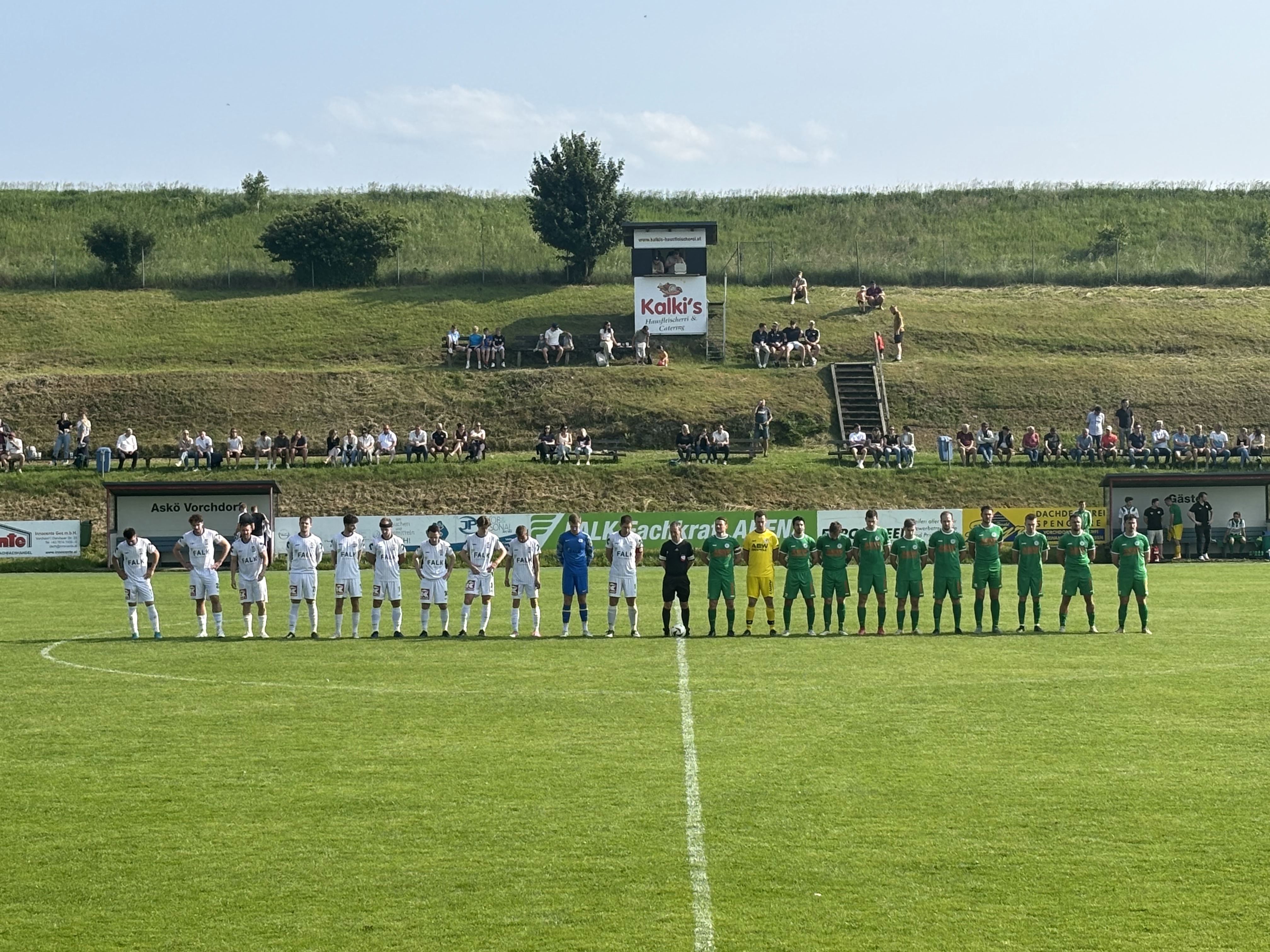 Für wen es heute noch um etwas geht merkt man im Spiel relativ schnell. Die Vorchdorfer hätten bereits in der 2. Minute in Führung gehen müssen, aber Moritz Leithinger schafft das Kunststück und schießt den Ball nach einem Abpraller von David Röthleitner aus kurzer Distanz an die Latte. In der 6. Minute wird es wieder gefährlich, Kevin Wallmen schießt den Ball knapp übers Tor. Die Oberwanger tun sich offensiv sehr schwer, Chancen zu kreieren. Die einzige nennenswerte Möglichkeit im ersten Durchgang hat Robert Speer, der einen Schuss aufs lange Eck verzieht. (24.) Ansonsten Einbahnstraßenfußball Richtung Oberwanger Tor, der schließlich auch zum ersten Treffer mündet. In der 33. Minute setzt sich Paul Klimitsch in der Mitte durch und lässt David Röthleitner im Gästetor keine Chance – 1:0. Drei Minuten später wäre beinahe das 2:0 gefallen, aber Moritz Leithinger schiebt den Ball knapp am Tor vorbei. Noch näher dran ist kurz danach Chavdar Dimitrov, dessen Schuss noch die Außenstange touchiert. (38.) Kurz vor der Pause passiert dann schließlich das Unvermeidbare, die Heimmannschaft erhöht auf 2:0. Nach einem Steckpass ist die Verteidigung ausgehebelt und Moritz Leithinger bringt das Leder im Tor unter. (43.) Die Oberwanger sind somit schon zur Pause klar im Rückstand.