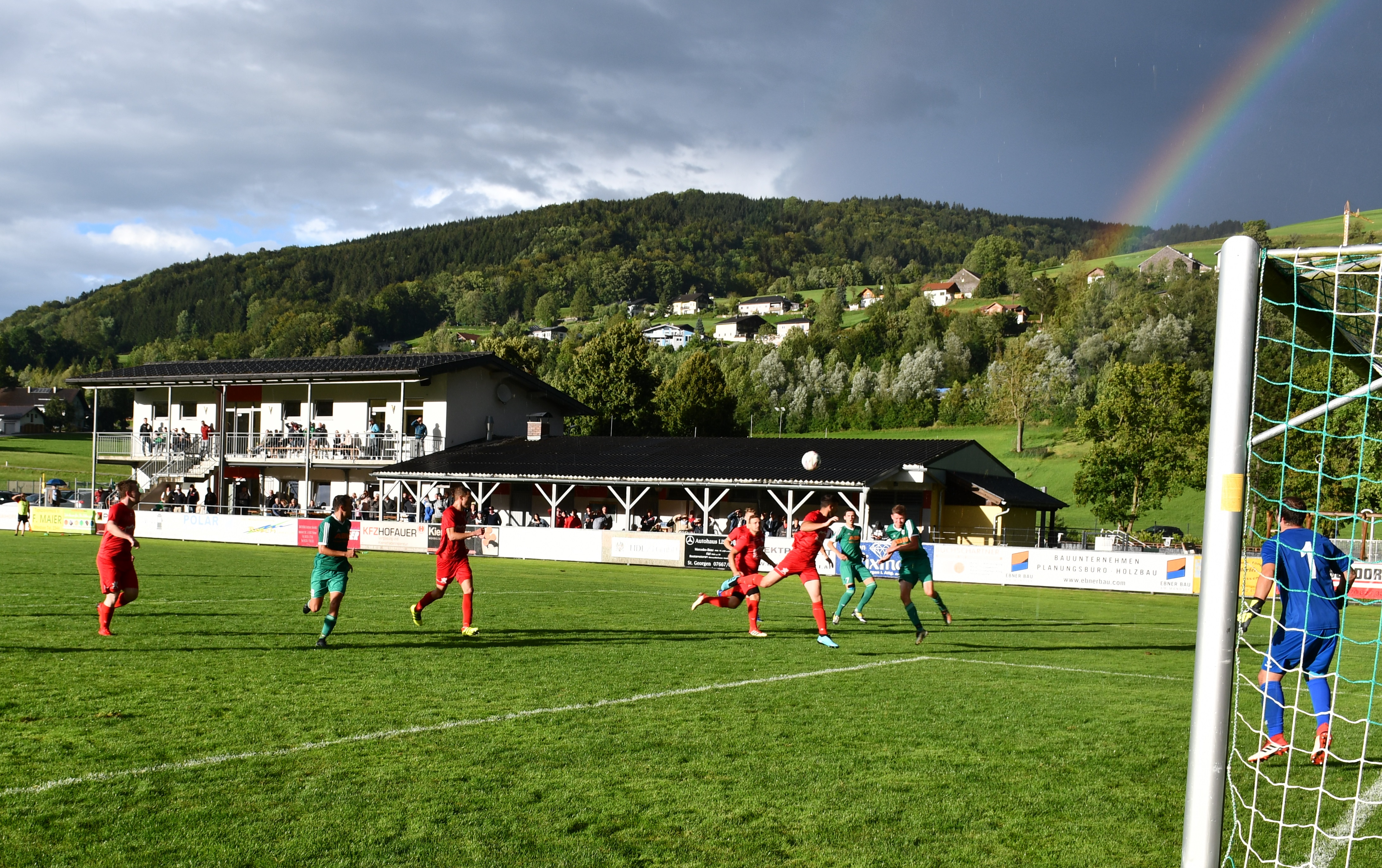 Das Spiel beginnt mit einer Schrecksekunde. Bereits nach einer Minute muss der Gästespieler Martin Wimmer minutenlang am Platz behandelt werden, er kann aber danach weiterspielen. Spielerisch tut sich bis zur 22. Minute wenig, ehe Oberwang die erste Torchance vorfindet. Der Schuss von Simon Loindl fällt aber zu schwach aus, kein Problem für Torhüter Benedikt. Eine Minute später versucht es Peter Lametschwandtner, aber auch er bekommt den Ball nach einem Lochpass nicht am Torwart vorbei. Im dritten Anlauf ist der Gästekeeper dann aber machtlos. Daniel Lettner ist in der 27. Minute frei durch und bezwingt den Torwart mit einem schönen Heber – 1:0 für Oberwang. In der 32. Minute kommt der Ball nach einem Fehler der Roithamer Abwehr bis zu Peter Lametschwandtner durch, aber wieder ist bei Tormann Benedikt Endstation. Roitham braucht bis zur 40. Minute, um zur ersten Torchance zu kommen. Nach einer Ecke köpfelt Bozidar Cosic aufs Tor, aber Tormann David Röthleitner ist zur Stelle und pariert. (40.) Die Schlussphase der ersten Hälfte gehört dann wieder den Oberwangern. Aufgrund der anfänglichen Spielunterbrechungen gibt es fünf Minuten Nachspielzeit und die hat es in sich. Den Anfang macht Robert Speer in der zweiten Minute, er scheitert aus guter Position am Torwart. Eine Minute später wird auch der Kopfball von Mathias Schmidt pariert, beim Abpraller ist aber Robert Speer zur Stelle und kann zum 2:0 verwerten. Beinahe hätte es sogar noch das dritte Tor vor Seitenwechsel gegeben, aber Simon Loindls Schuss wird aus kurzer Distanz noch abgeblockt. Von dem her ist Roitham mit dem 2:0 zur Pause noch gut bedient.