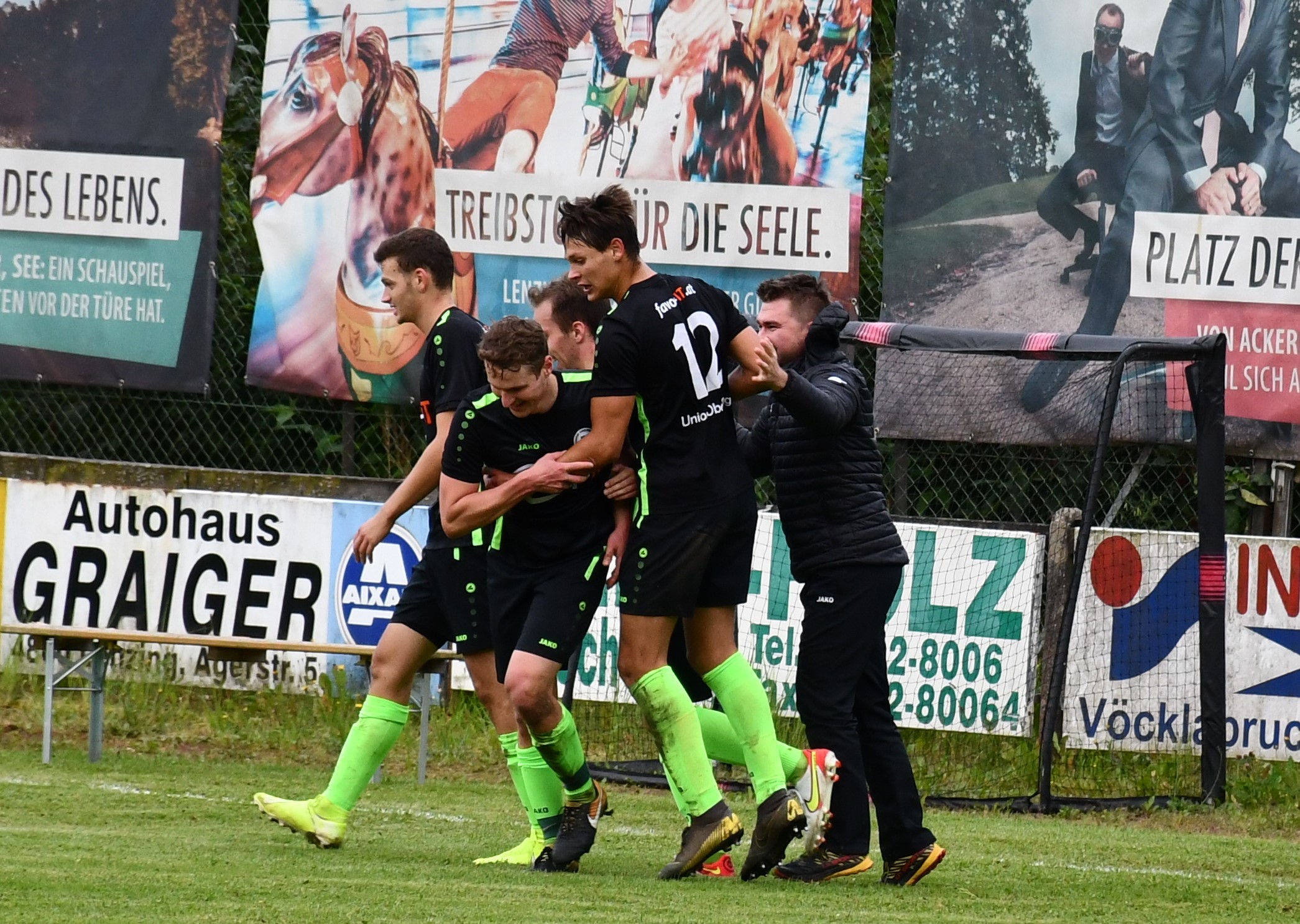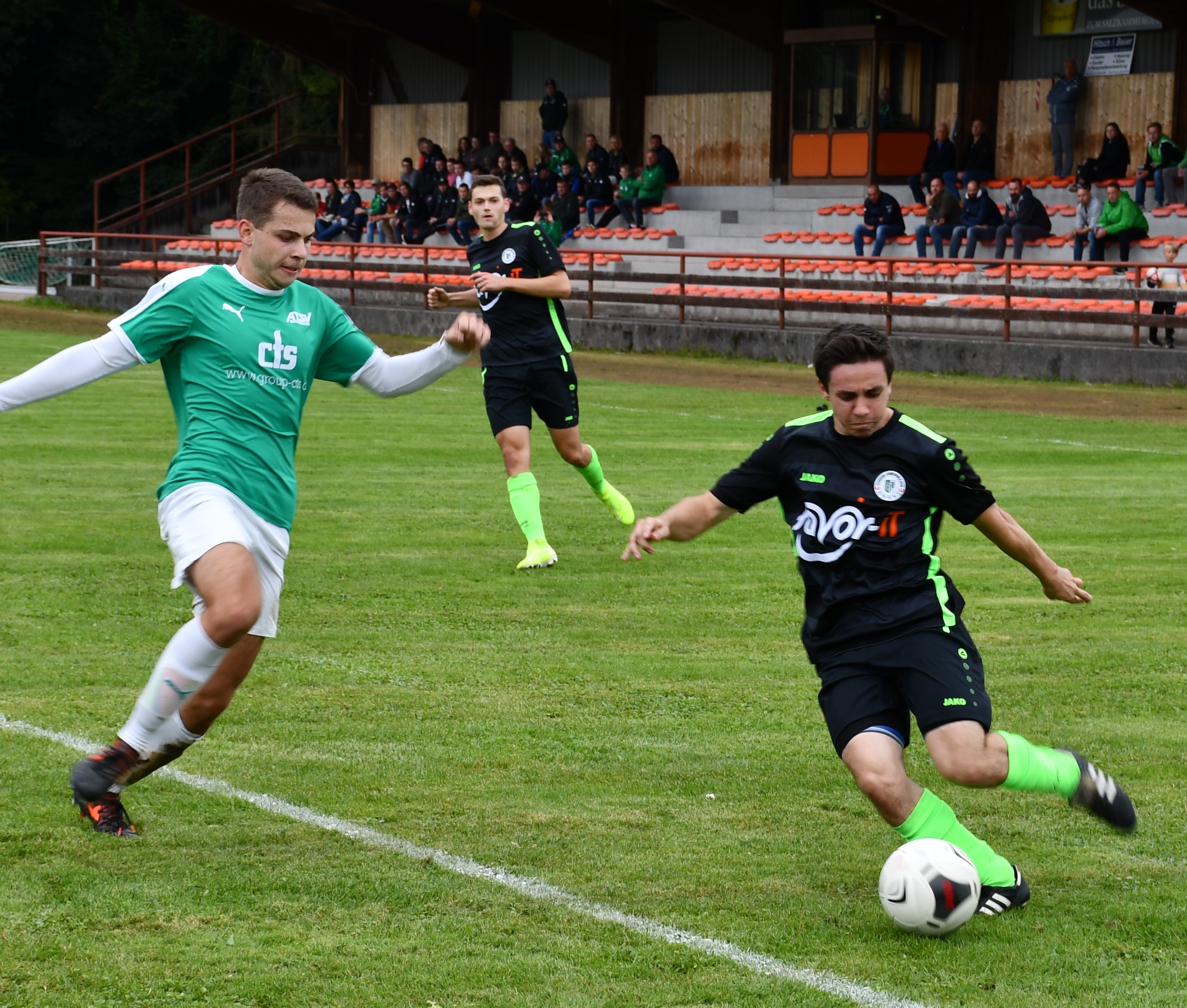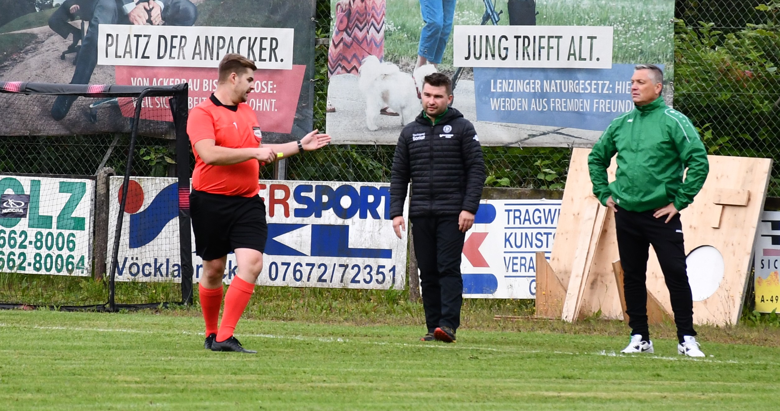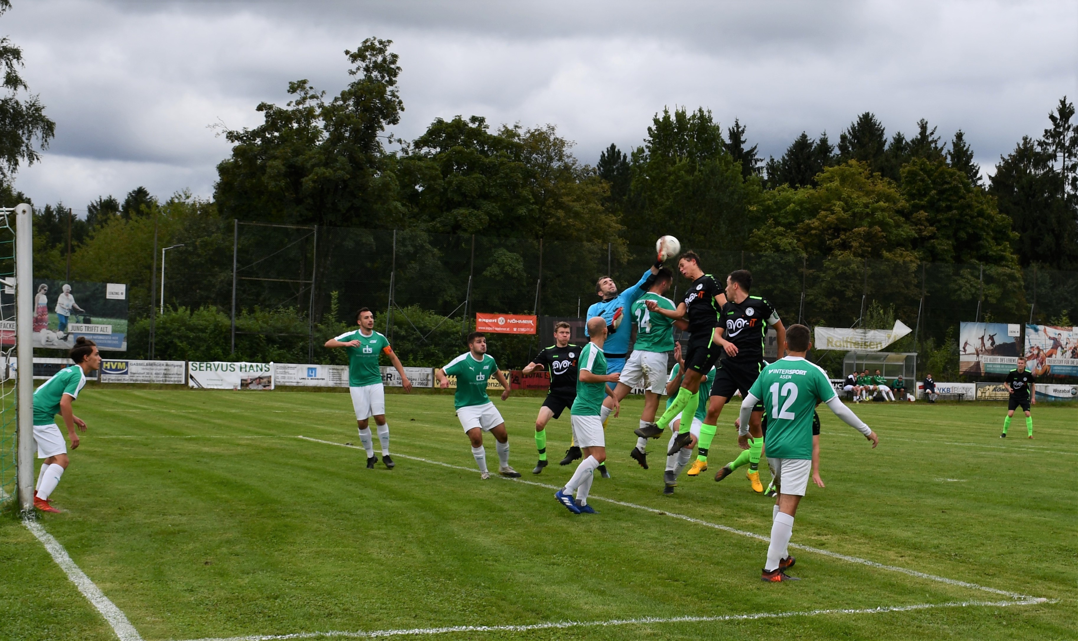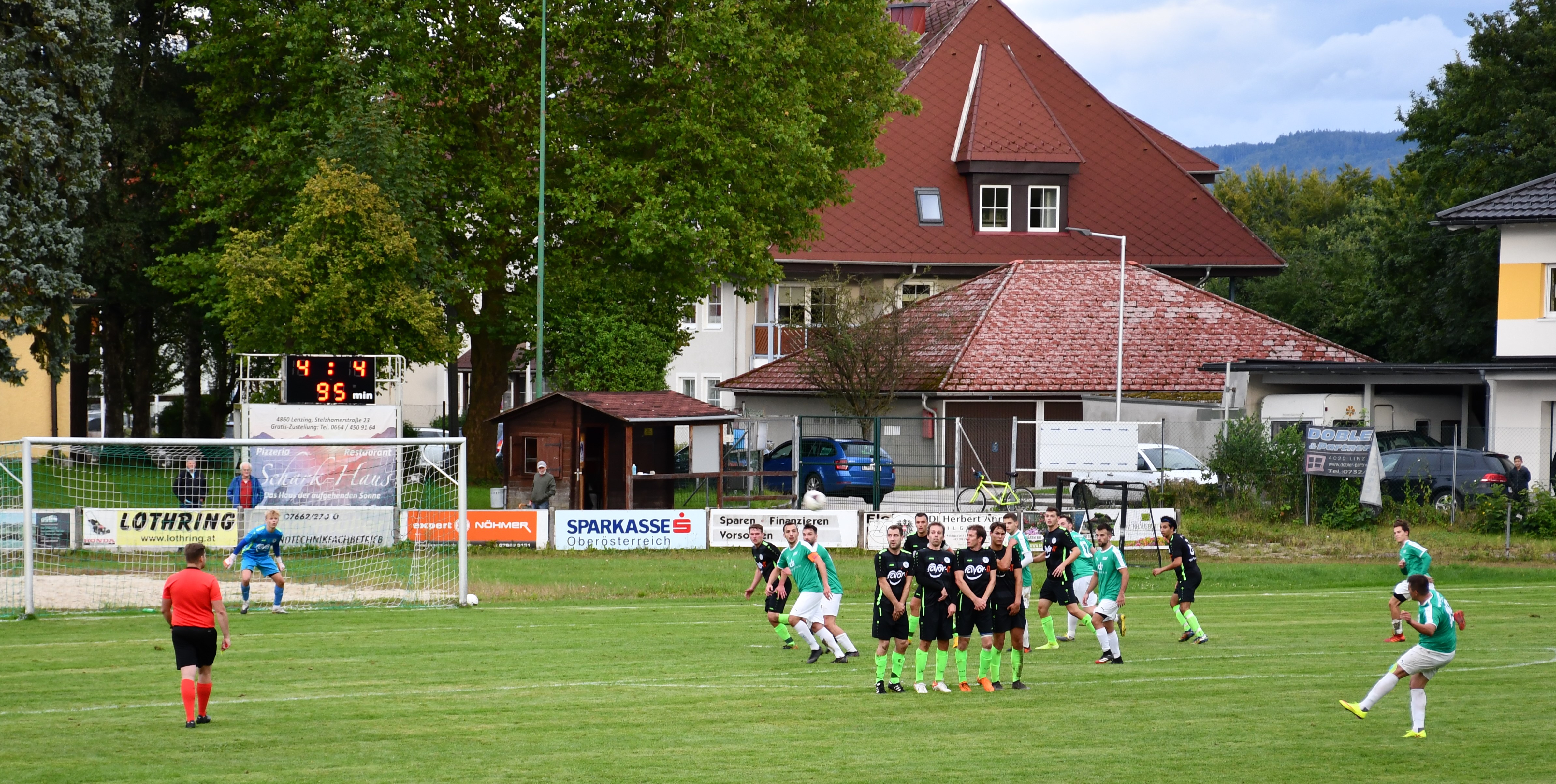 Bei schon eher herbstlichen Temperaturen in Lenzing braucht die Partie etwas, um in Fahrt zu kommen. In der 10. Minute leistet sich Lenzings Tormann Meissner bei einem Eckball einen Patzer, aber seine Mitspieler können noch auf der Linie klären. Wenig später gibt es auf der anderen Seite einen Freistoß für Lenzing. Der Ball wird weit in den Strafraum geschlagen, Markus Bauer nutzt eine Unstimmigkeit in der Oberwanger Verteidigung und trifft per Kopf zum 1:0. (13.) Danach brauchen die Oberwanger aber nicht lange, um ins Spiel zurückzukommen. In der 21. Minute hat Christoph König die Übersicht und bedient Simon Loindl, der noch einen Verteidiger aussteigen lässt und den Ball schön ins Eck schlenzt – 1:1. Dann hat Christoph König sogar die Chance auf 2:1 zu stellen, aber er lässt eine Tausendprozentige aus und trifft aus kurzer Distanz nur die Latte. (28.) Gleich in der nächsten Aktion folgt dann Aluminiumtreffer Nummer 2: Eine abgerissene Flanke von Mathias Schmidt senkt sich unangenehm für den Tormann und fällt ebenso auf die Latte. Schon in der ersten Hälfte gibt es einige strittige Szenen, aber es sollte sich vor allem in der zweiten Halbzeit noch mehr aufschaukeln. Die Führung zum 2:1 gelingt den Oberwangern zum perfekten Zeitpunkt, nämlich in der Nachspielzeit der ersten Halbzeit. Christoph König trifft mit seinem Schuss zuerst die Stange, aber Robert Speer ist beim Abpraller zur Stelle und verwertet. Zur Pause scheint also alles wieder zu laufen für die Gäste.