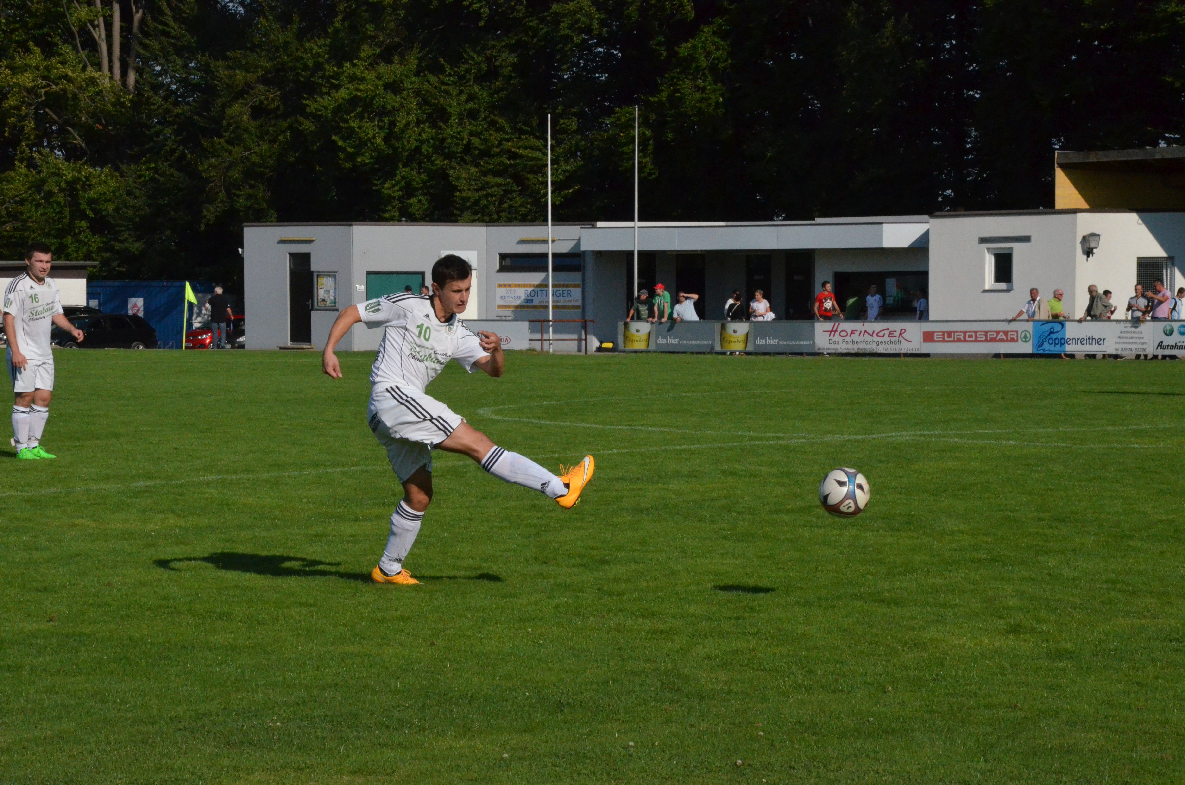 Eine schwierige Ausgangsposition für die Gäste, die sich aber trotzdem gut verkaufen wollen. Zu Beginn können aber sowohl Attnang als auch Oberwang wenig zeigen, beide Mannschaften tun sich bei heißen Temperaturen schwer. Florim Lutviu sorgt als erstes mit einem Weitschuss übers Tor für Gefahr. (25.) Auf Seiten der Oberwanger schießt Mario Lettner ebenfalls aus der Distanz, auch sein Schuss geht knapp daneben. (35.) Kurz vor der Halbzeit kann Attnangs Torhüter Stefan Neumeister bei einem Strafraumgestocher klären, den anschließenden Freistoß zirkelt Mario Pöckl übers Kreuzeck. Attnang wird noch zwei Mal durch Mehmet Mihmat gefährlich, einmal schießt er knapp daneben (40.) und seinen Freistoß kurz vor der Pause kann Tormann Alexander Breitenthaler auf spektakuläre Weise parieren. Bis auf die Chancen in der Schlussphase war die erste Halbzeit eher in die Kategorie „Fußballerische Schonkost“ einzuordnen, beide Mannschaften haben noch viel Luft nach oben.