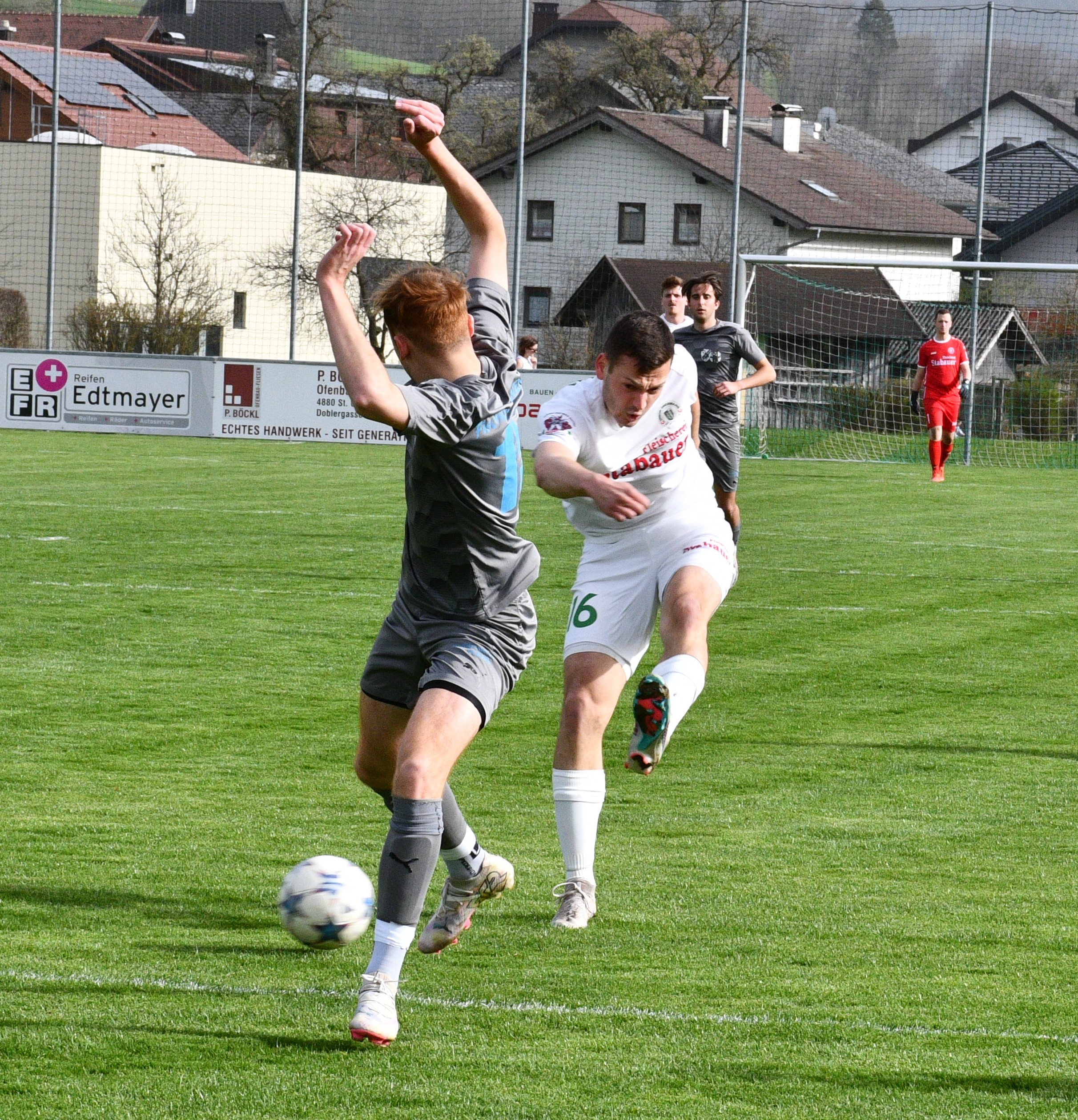 In der zweiten Hälfte dauert es bis zur 53. Minute, ehe die Oberwanger wieder einmal beim Lambacher Tor anklopfen. Dann aber gleich mit einer Doppelchance, zunächst wird Sandro Sperr geblockt und bei der anschließenden Flanke kommt Adel Khalili knapp nicht zum Kopfball. In der 68. Minute kommt der eingewechselte Michael Heiml nach einer schönen Kombination zum Schuss, setzt diesen aber links daneben. Nach 74 Minuten machen sich die Bemühungen der Oberwanger dann schließlich bezahlt. Bei einer Flanke kann Lambachs Tormann Hager den Ball nicht festhalten und Mathias Schmidt nutzt dies aus und trifft aus der Drehung zum 1:1 Ausgleich. In der 81. Minute muss der Torhüter der Gäste angeschlagen ausgewechselt werden, für ihn kommt Ersatztormann Alexander Topf. Dieser kann sich anschließend nicht über Unterbeschäftigung beklagen. Gerade einmal eine Minute steht er im Tor und muss schon gegen Simon Loindl mit einer Glanzparade retten. Auch in der 89. Minute steht er wieder im Mittelpunkt. Zunächst hält er den Schuss des eingewechselten Leopold Binder und schafft es im anschließenden Gestocher, den Ball unter Kontrolle zu bringen. Aufgrund der vielen, teils längeren Unterbrechungen gibt es dann noch sieben Minuten Nachspielzeit. In dieser sind zumeist die Oberwanger am Drücker, aber beinahe hätten die Gäste den Siegtreffer erzielt. Denn in der 94. Minute muss David Röthleitner noch einmal eine Glanzparade auspacken, er lenkt einen Schuss von Mihajlo Cvijanovic an die Latte. Auf der anderen Seite vergibt Sandro Sperr in der 97. Minute die letzte Torchance, somit bleibt es beim 1:1 Unentschieden.
