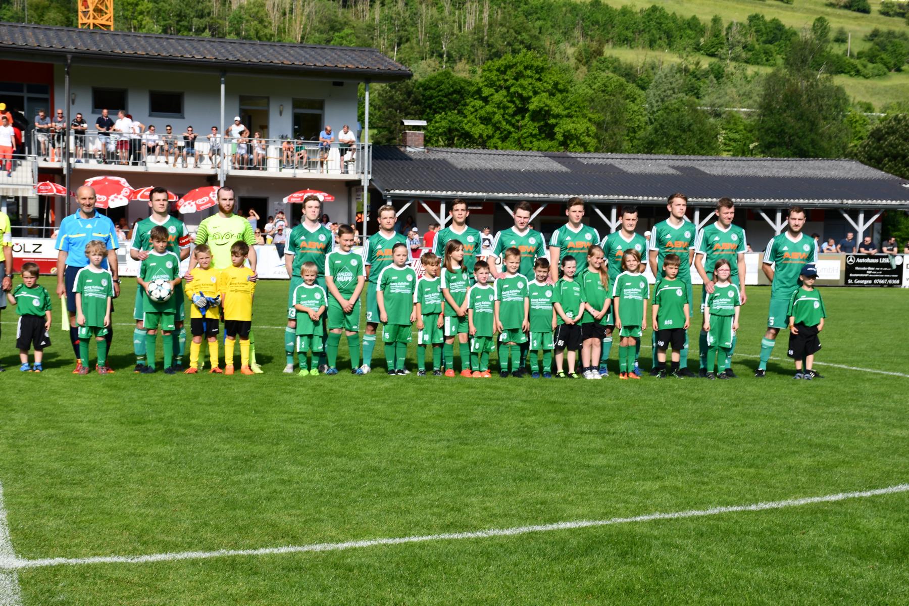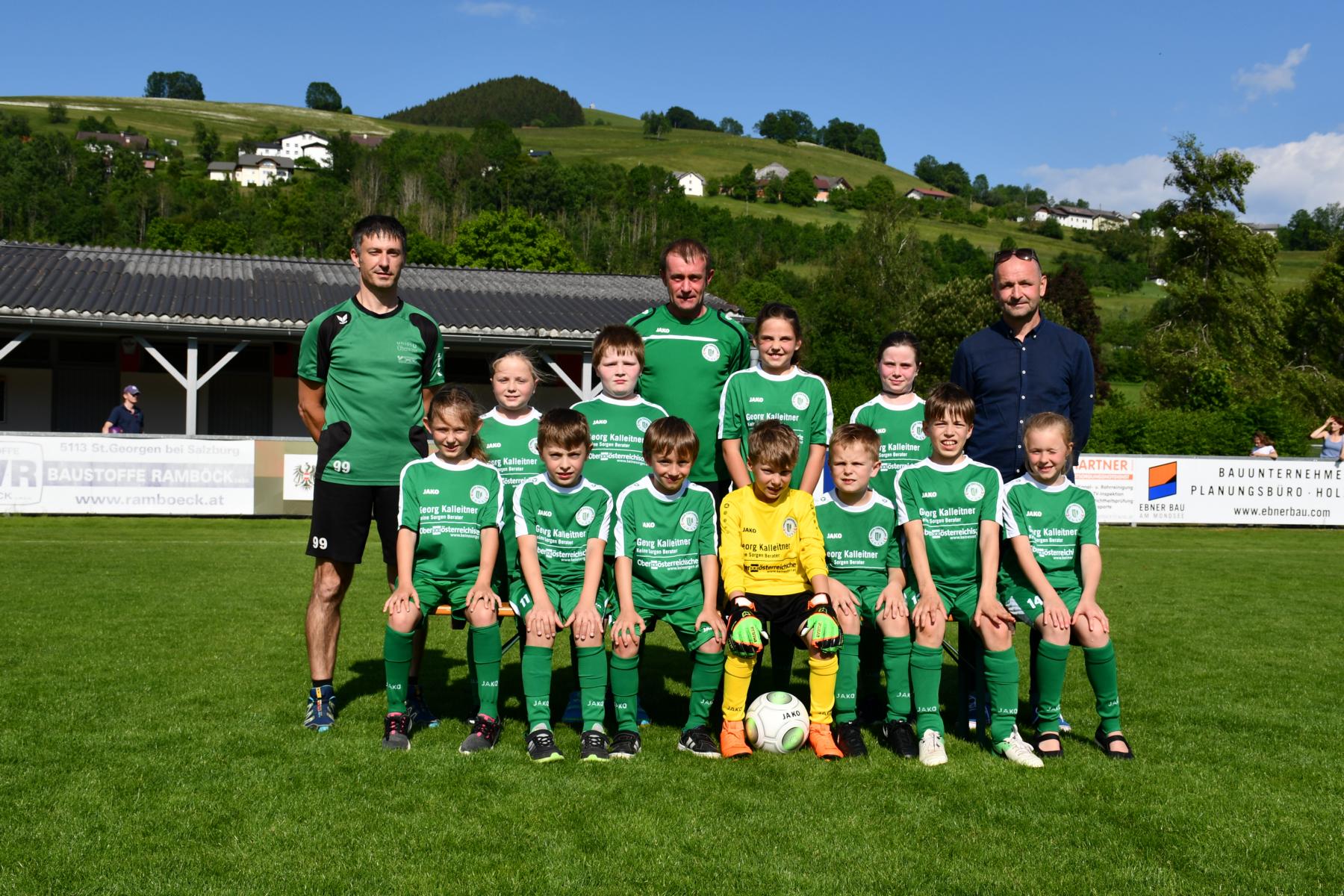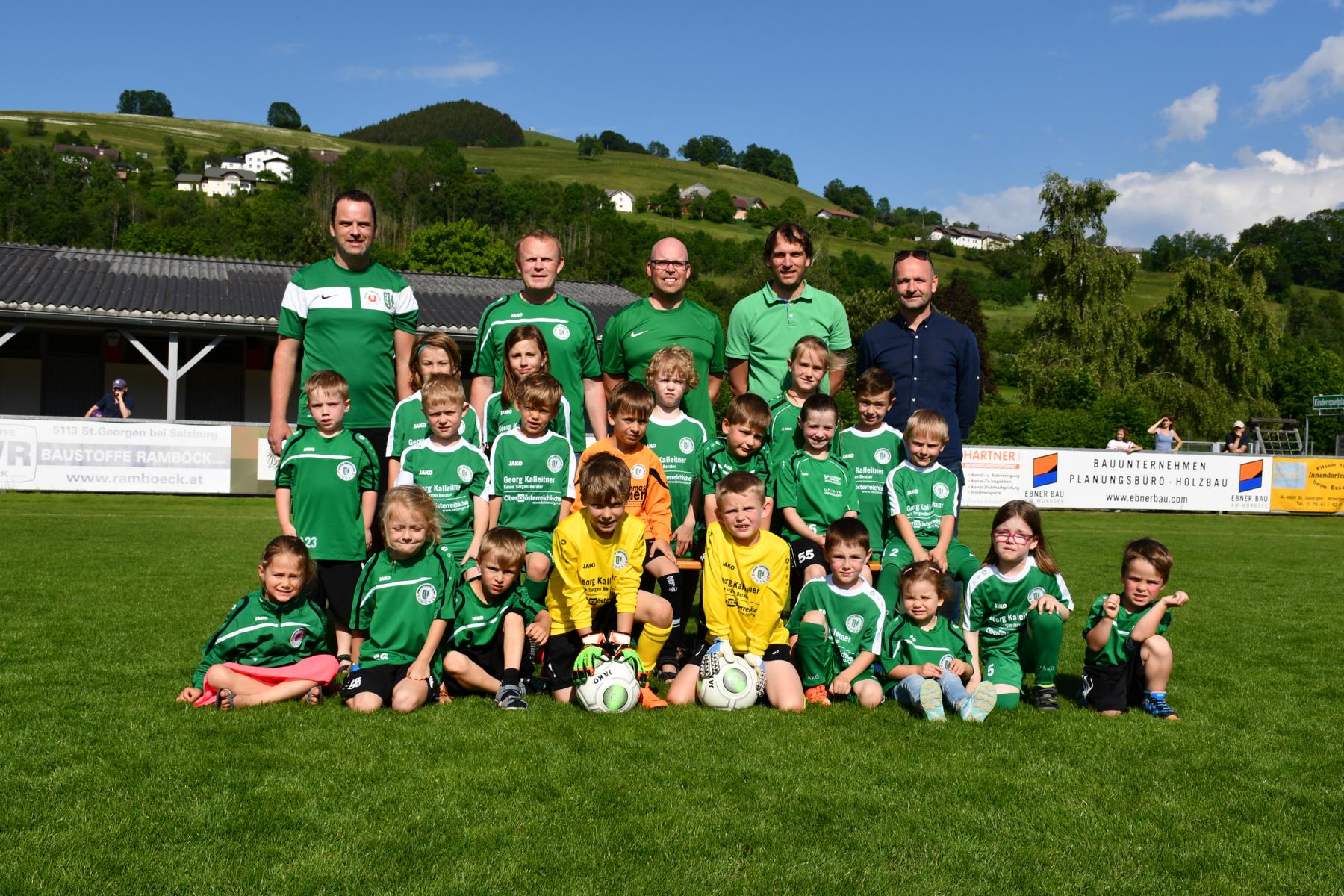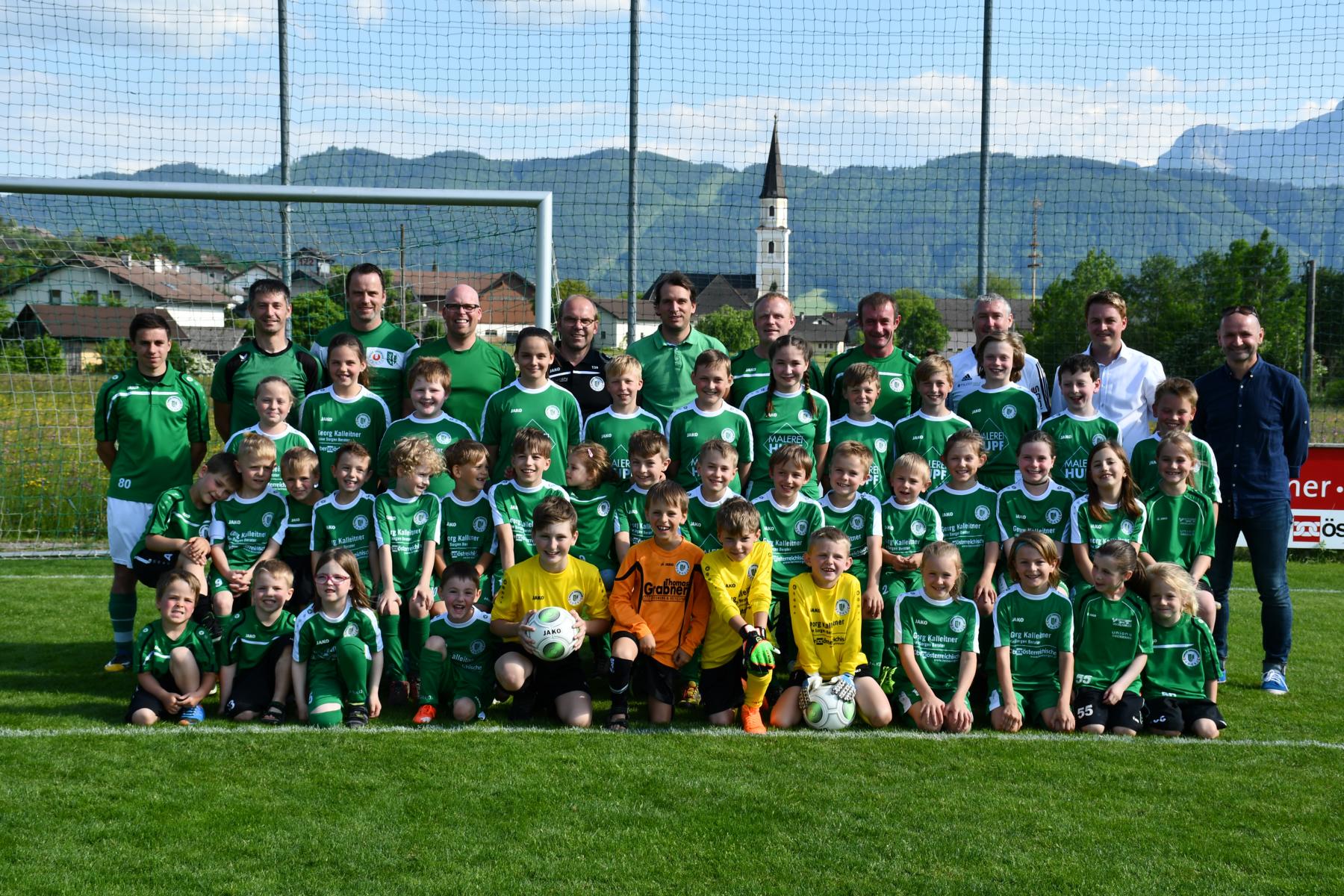 Am Pfingstmontag, beim Spitzenspiel zwischen Union Oberwang gegen Steyrermühl, durften die Mannschaften dann ihre neue Kleidung präsentieren und mit den "Großen" auf das Spielfeld einlaufen.