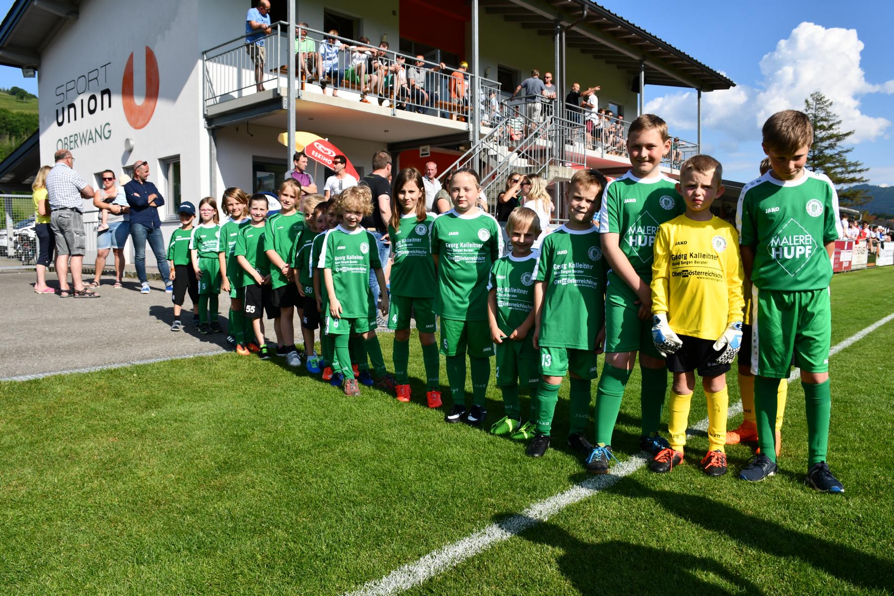 Am Pfingstmontag, beim Spitzenspiel zwischen Union Oberwang gegen Steyrermühl, durften die Mannschaften dann ihre neue Kleidung präsentieren und mit den "Großen" auf das Spielfeld einlaufen.