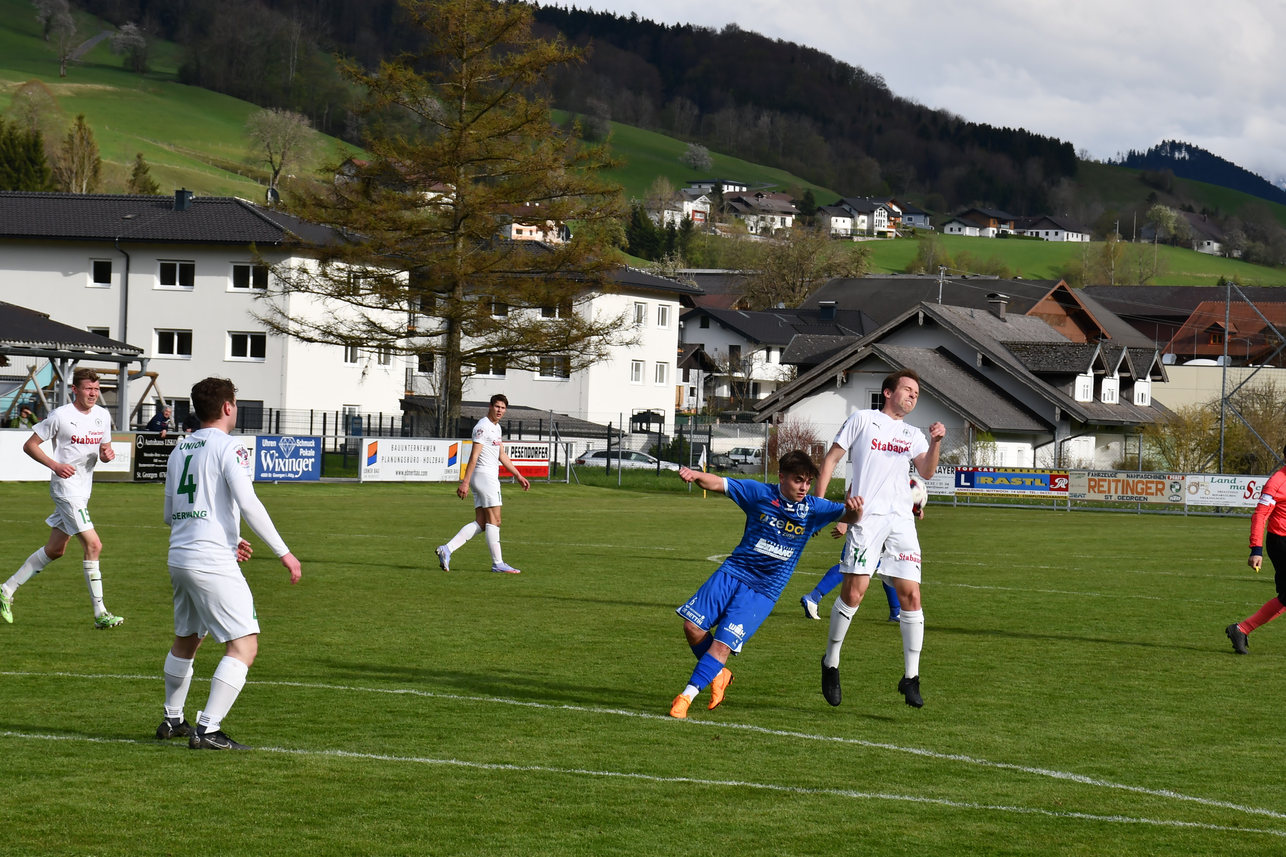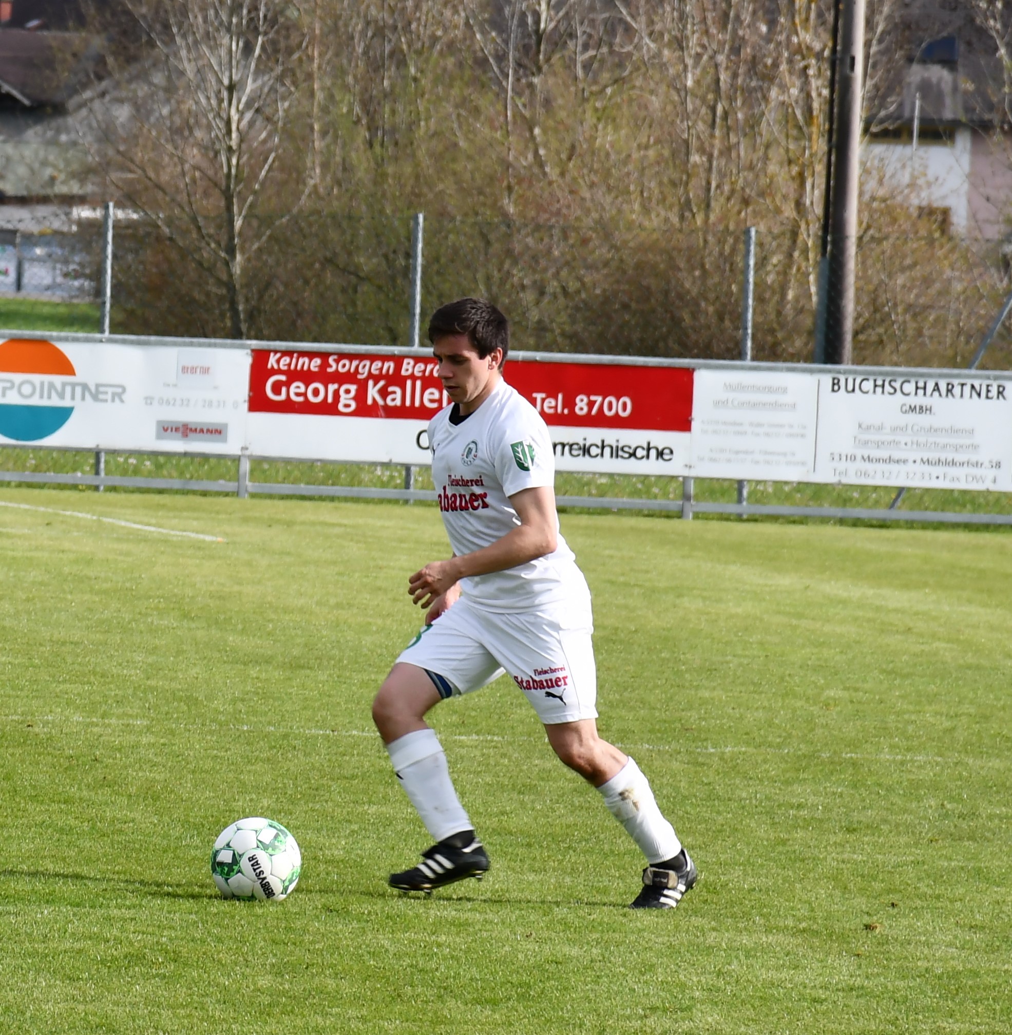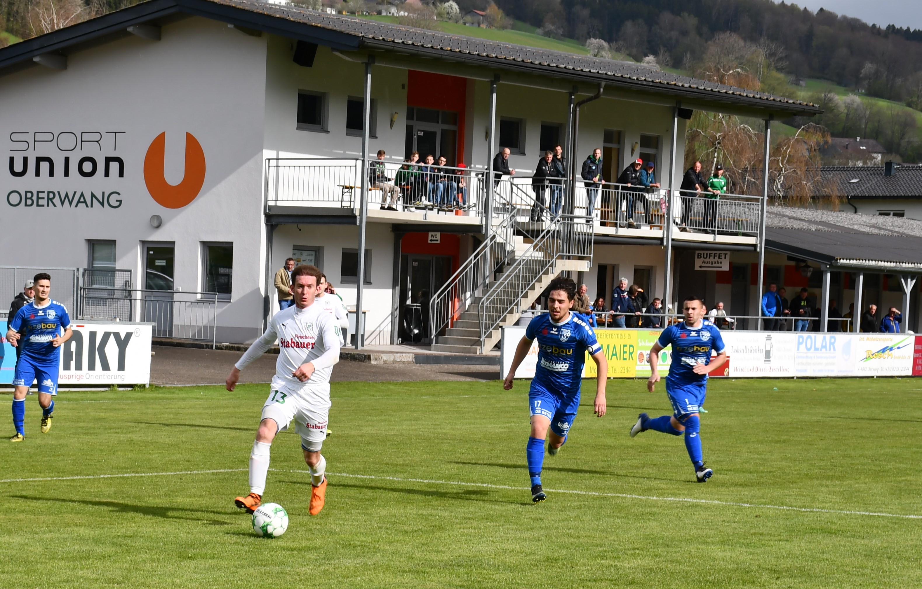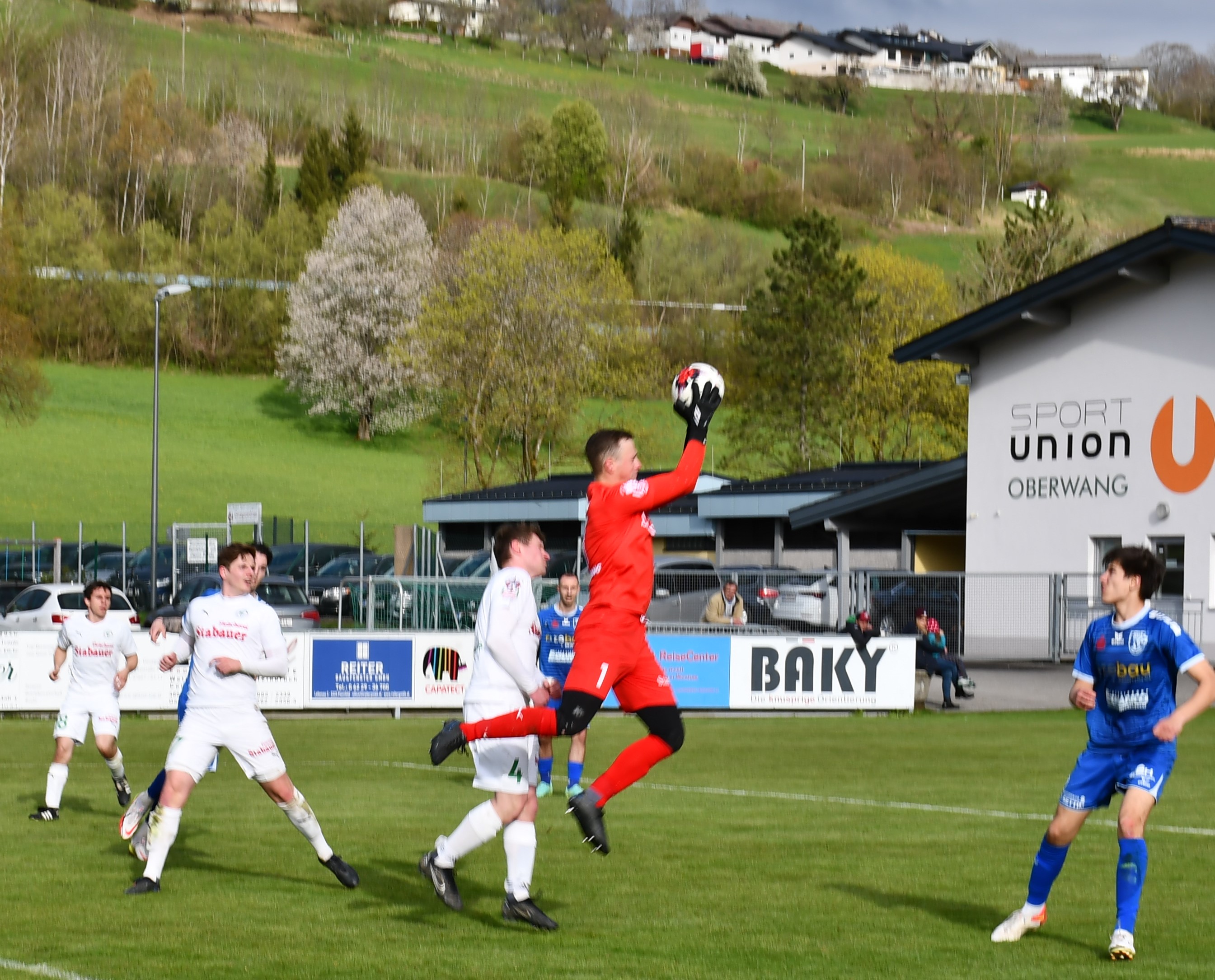 Wie ernst sie dieses Spiel angehen zeigen die Oberwanger ab der ersten Minute. Wenige Sekunden sind auf der Uhr, als Markus Lametschwandtner den ersten Torabschluss sucht, Tormann Kollersberger muss zum ersten Mal parieren. In der 15. Minute feuert Simon Loindl aus spitzem Winkel aufs Ischler Tor, der Torwart kann den Ball nur nach oben abklatschen lassen und ermöglicht so Sandro Sperr den Nachschuss, den er zum 1:0 versenkt. Bad Ischl ist jetzt gefordert und bekommt wenig später einen Freistoß in guter Position. Amer Mekan führt aus, der gut angetragene Schuss geht knapp rechts daneben. (17.) Beim anschließenden Abstoß leiten die Oberwanger den hohen Ball schön weiter auf Robert Speer, der durchläuft und noch auf Simon Loindl querlegt. Dieser muss den Ball nur noch ins leere Tor einschieben und sorgt so für das schnelle 2:0 für die Oberwanger. (18.) Die Heimmannschaft will hier schnell alles klar machen. Der nächste Angriff läuft über Markus Lametschwandtner, der es aus spitzem Winkel selbst probiert, aber zunächst vom Tormann und dann im zweiten Anlauf vom Verteidiger geblockt wird. (21.) Eine Minute später kann Sandro Sperr auf 3:0 stellen, er trifft mit einem traumhaften Schuss vom 16er. Oberwang präsentiert sich in dieser Phase bärenstark und gnadenlos in der Chancenauswertung. Für den nächsten Treffer sorgt dann der Kapitän Robert Speer, der sich im Strafraum den Ball noch einmal auf links legt und dem Gästetormann keine Chance lässt – 4:0. (27.) So mancher Zuschauer hat zu diesem Zeitpunkt das Ergebnis schon auf die volle Spieldauer hochgerechnet, es scheint alles möglich heute. Aber die Oberwanger zeigen sich danach gnädig, Sandro Sperr lässt eine hundertprozentige Chance aufs leere Tor liegen. (30.) In der 39. Minute zieht wieder Markus Lametschwandtner über rechts auf, er setzt den Ball aber knapp am langen Eck vorbei. Nach einer bemerkenswerten ersten Halbzeit führen die Oberwanger klar mit 4:0.