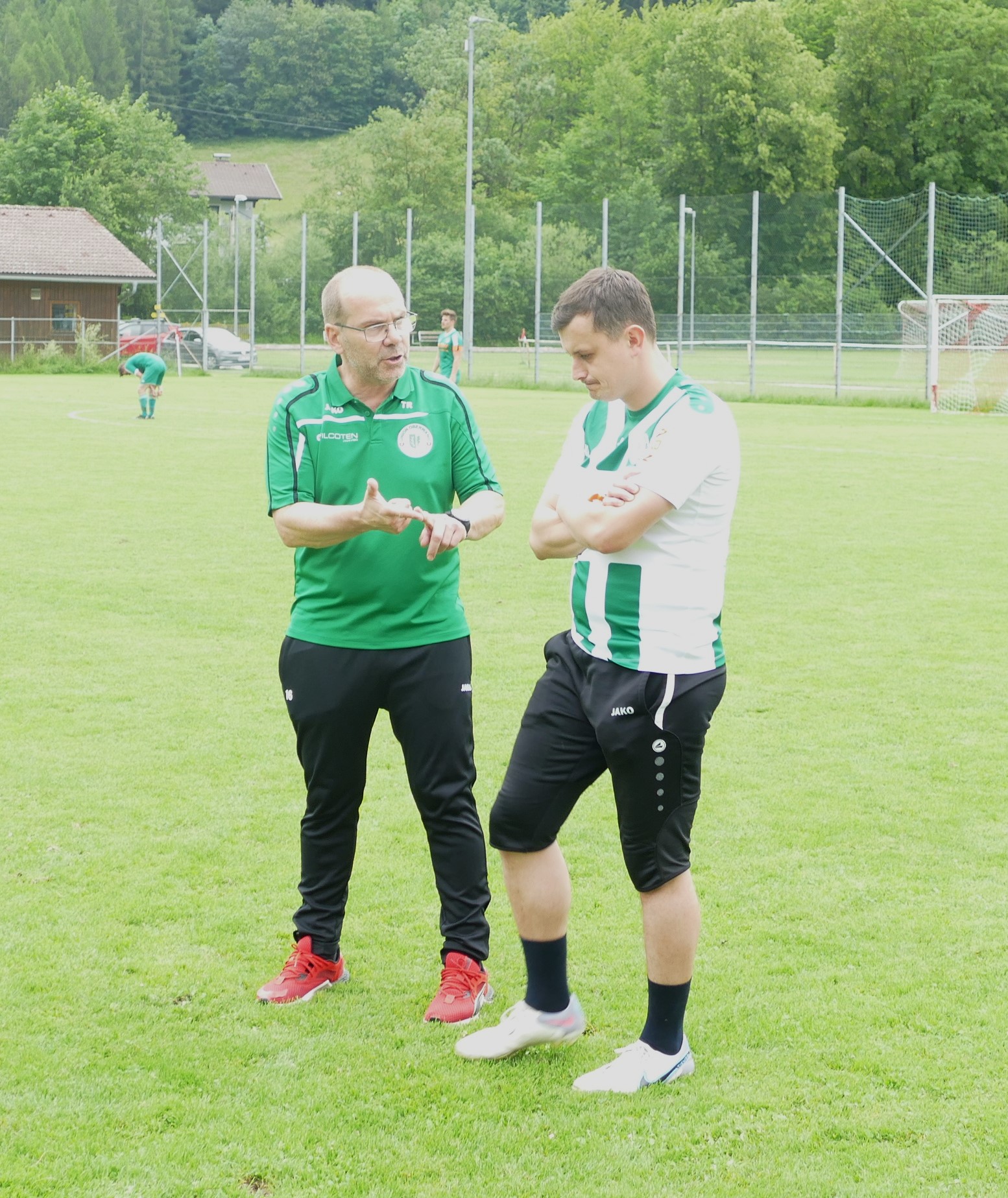 Auch in der zweiten Hälfte geht es in dieser Tonart weiter. In der 47. Minute probiert es Kevin Lurger mit einem Schuss, der aber knapp am rechten Pfosten vorbei geht. Dann folgt der Aufreger der Partie. Mathias Schmidt sieht in der 60. Minute die Rote Karte aufgrund einer strittigen Tätlichkeit an Fevzi Yildirim. Die Oberwanger sind weiterhin ohne eine einzige Torchance und jetzt auch noch in Unterzahl. Aber dass man auch ohne eine Torchance Tore erzielen kann beweist dann die 66. Minute. Ausgerechnet Tristan Nagel, der Kapitän der Scharnsteiner, der mit dem heutigen Spiel seine Fußballschuhe an den Nagel hängt, erzielt mit dem Kopf per Eigentor das 1:0 für Oberwang. Julian Soriat hatte den Ball bei einem Freistoß in den Strafraum geschlagen und der Verteidiger köpfelt unglücklich ein. Die Oberwanger sind plötzlich in Führung und legen kurz darauf nach. Wieder gibt es einen Freistoß und dieses Mal ist Kapitän Josef Heisler zur Stelle und trifft aus kurzer Distanz zum 2:0. (70.) Die Hausherren geben sich in Überzahl aber natürlich noch nicht geschlagen. In der 76. Minute hat Christoph Moser eine Doppelchance, er schießt im ersten Versuch Julian Soriat an und den zweiten Versuch kann Tormann Christoph Soriat parieren. Ab der 80. Minute zieht in Scharnstein ein Gewitter auf, das auch einiges an Hagel mit sich bringt. Der Schiedsrichter lässt jedoch weiterspielen. In der 88. Minute hat Michael Heiml im Konter den Matchball auf dem Fuß, schießt aber am Tor vorbei. Scharnstein kommt dann noch in der 92. Minute durch ein Tor von Fevzi Yildirim nach einer Ecke auf 1:2 heran, danach ist die Partie aber zu Ende. Die Oberwanger feiern einen 2:1 Sieg.