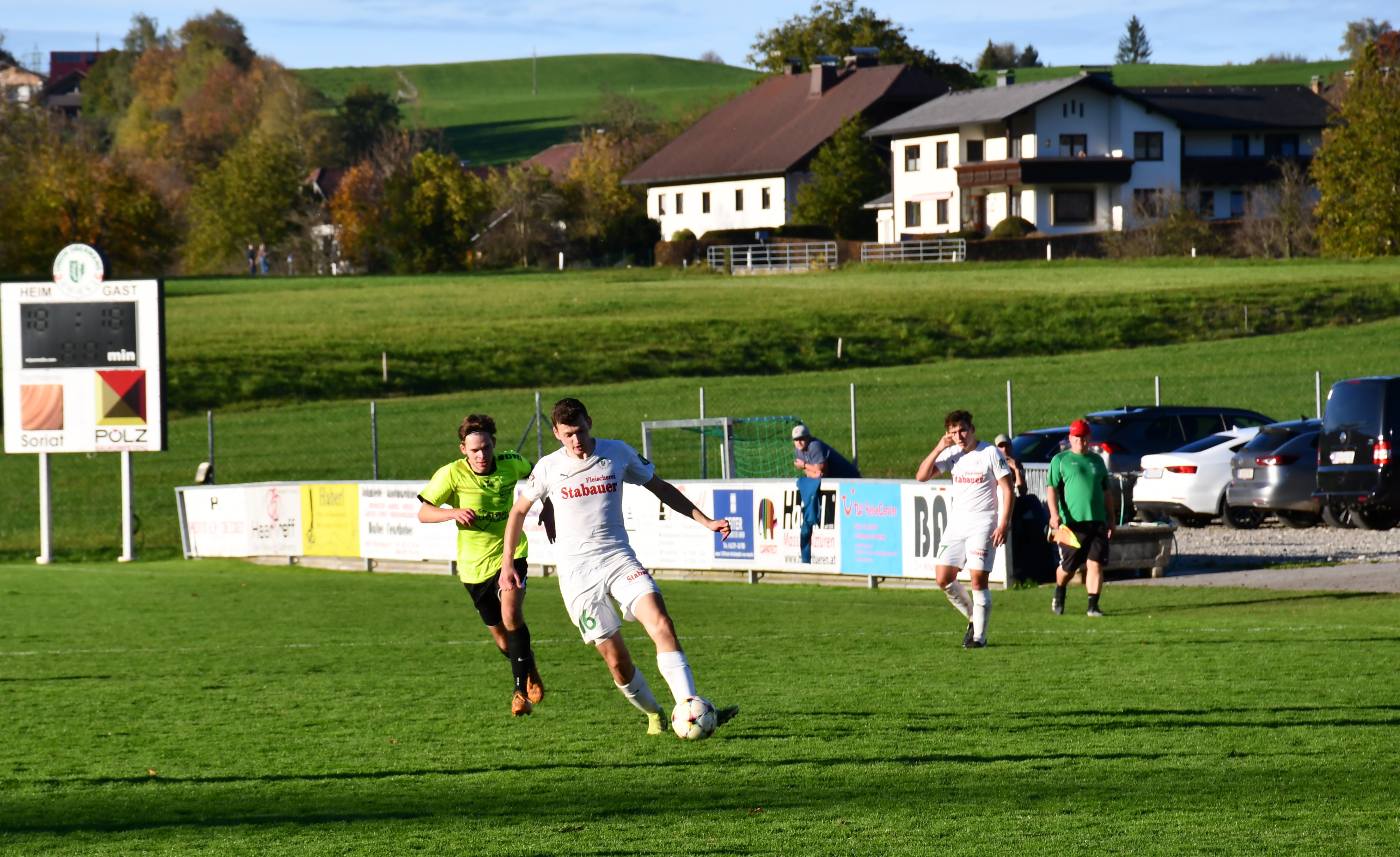 Von diesen offensiven Qualitäten sind die Gäste zunächst aber weit entfernt, sie kommen kaum gefährlich vors Oberwanger Tor. Aber auch die Oberwanger tun sich schwer, es entwickelt sich zunächst ein zähes Spiel. Dann helfen die Regauer auch etwas mit. Christoph Spiessberger sieht bereits in der 21. Minute wegen Kritik innerhalb kürzester Zeit zwei Mal Gelb und fliegt somit mit Gelb/Rot vom Platz. Das spielt den Oberwangern natürlich in die Karten, die in der 29. Minute das erste Mal nahe am Torerfolg dran sind. Bei einem gut angetragenen Schuss von Simon Loindl wackelt aber nur die Latte. Regau schließt ein Mal aus guter Position zu schwach ab und in der 37. Minute hat Tormann David Röthleitner etwas Glück, dass ein Ball nur auf dem Tornetz landet. Ansonsten ist von den Gästen aber wenig zu sehen. Oberwang versucht jetzt natürlich noch vor der Pause die Überzahl zu nützen. In der 39. Minute folgt dann die nächste Schlüsselszene und wieder stellen sich die Gäste dabei nicht gerade geschickt an. Christoph König will im Strafraum an den Ball gehen und wird von Stjepan Ujakovic völlig unnötig umgegrätscht, folgerichtig gibt es Elfmeter. Markus Soriat tritt an und verwandelt platziert zum 1:0 für Oberwang. Dabei bleibt es dann bis zur Pause.