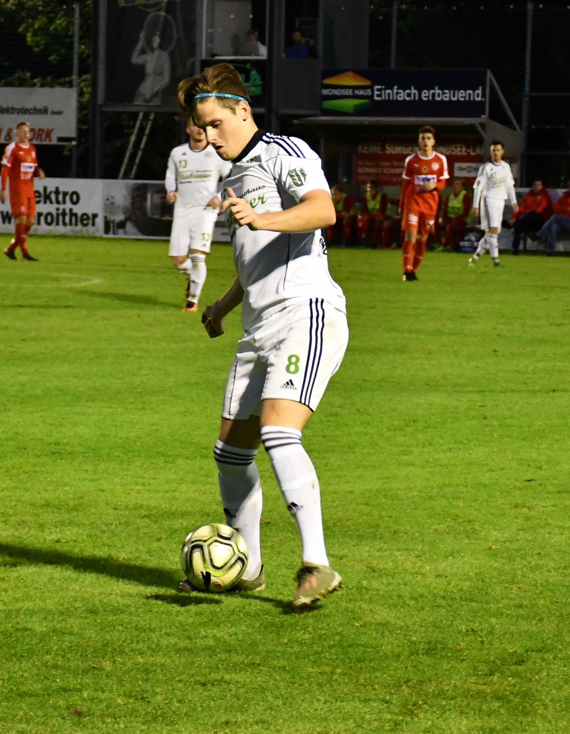 Sechs Minuten sind in Mondsee gespielt, ehe die Oberwanger zum ersten Mal gefährlich im Strafraum auftauchen. Daniel Lettner wird von Simon Loindl bedient, scheitert aber an Tormann Kajba. In der 14. Minute hat Simon Loindl selbst den Treffer auf dem Fuß, aber wieder kann Maurice Kajba seinen Kasten sauber halten. Das Spiel geht nur in eine Richtung, die Oberwanger spielen weiter munter nach vorne und werden in der 23. Minute belohnt. Nach einem hohen Ball über die Abwehr behält Daniel Lettner die Ruhe und trifft ins linke Eck – 1:0. Drei Minuten später kann Fabian Meindl nach einer Maßflanke von Simon Loindl per Kopf nachlegen und erhöht auf 2:0 für Oberwang. Die Gäste liefern eine souveräne Vorstellung ab, bleiben defensiv ganz sicher und können sich offensiv immer wieder schön durchkombinieren. So auch in der 29. Minute. Wieder geht es über Simon Loindl über die linke Seite, sein Zuspiel findet zwar Robert Speer im Zentrum, aber der will noch einmal ablegen statt zu schießen und findet keinen Mitspieler. Dann versucht es Josef Heisler mal aus der Distanz, der Mondseer Tormann klärt den Ball mit einer Flugeinlage zur Ecke. Die Oberwanger versuchen den Gegner früh am Spielaufbau zu hindern, was immer wieder mit einem Ballgewinn in der gegnerischen Hälfte belohnt wird. So ein Ballgewinn führt auch zum 3:0 in der 35. Minute durch Robert Speer, der den Ball in guter Position erobert und mit einem satten Schuss trifft. Nur eine Minute später hätte sich die gleiche Szene nach einem Abspielfehler der Mondseer beinahe wiederholt, aber dieses Mal lässt Robert Speer die Chance aus. In der 38. Minute wäre Daniel Lettner mit einem Gustostückerl beinahe der nächste Treffer geglückt, sein Lupfer über den herauseilenden Torwart landet aber auf dem Tornetz. Man kann als Oberwanger Zuschauer nicht viel am Spiel der Gäste aussetzen, lediglich die Chancenauswertung stellt sich noch als verbesserungswürdig heraus. Robert Speer schrammt in der 41. Minute richtig knapp an seinem zweiten Treffer vorbei, die Innenstange verhindert den Torerfolg. Nach 42 Minuten servieren die Mondseer mit einem haarsträubenden Abspielfehler fast den nächsten Treffer auf dem Silbertablett, aber Tormann Kajba kann mit einer Parade gegen Simon Loindl den Patzer noch ausbügeln. Ein Tor fällt aber dann doch noch vor der Pause. Während die vermeintlich einfacheren Chancen ungenützt geblieben sind schafft es Daniel Lettner aus spitzem Winkel den Ball ins lange Eck zu schlenzen – ein Traumtreffer zum 4:0 Pausenstand. (44.)
