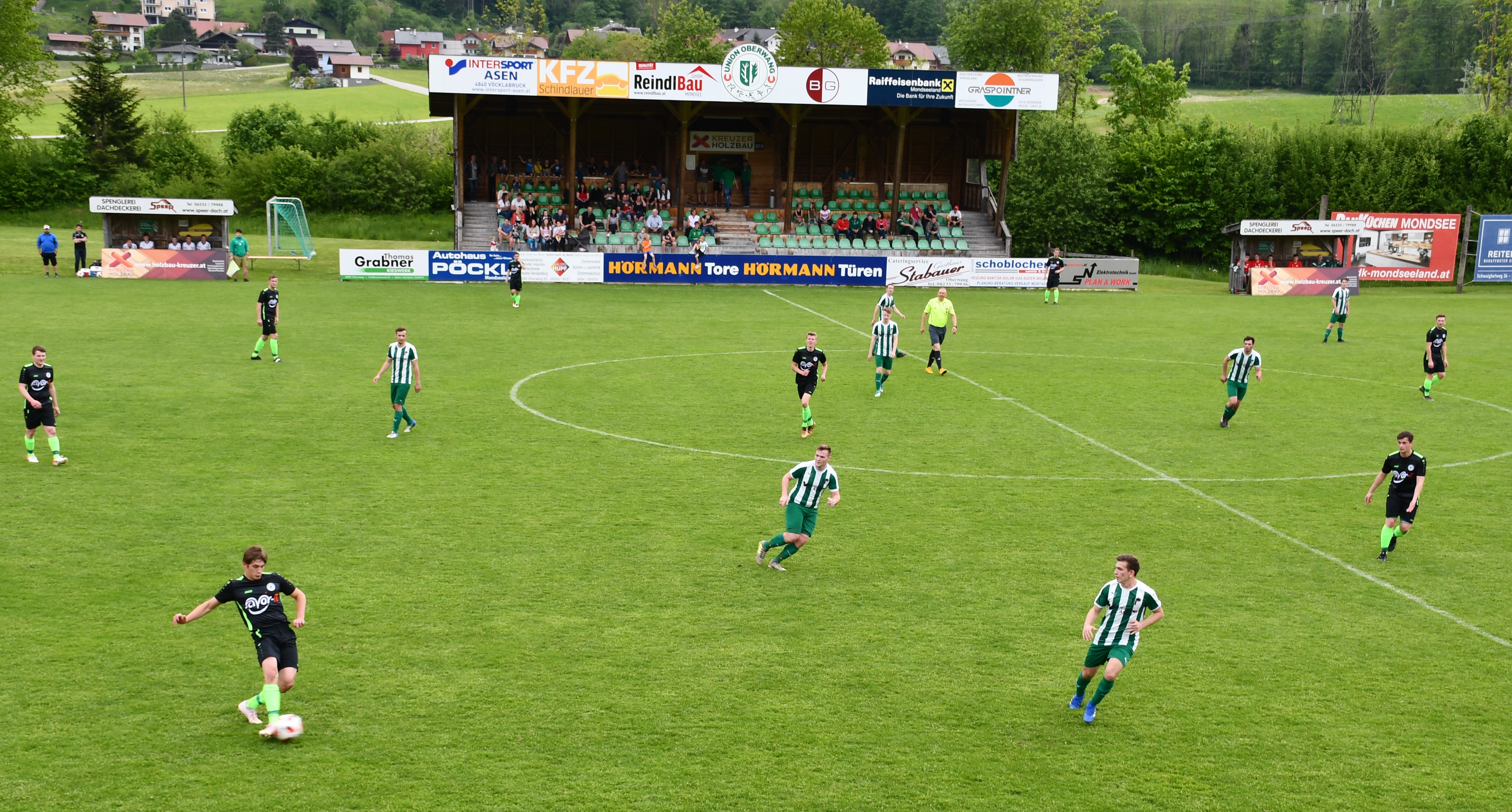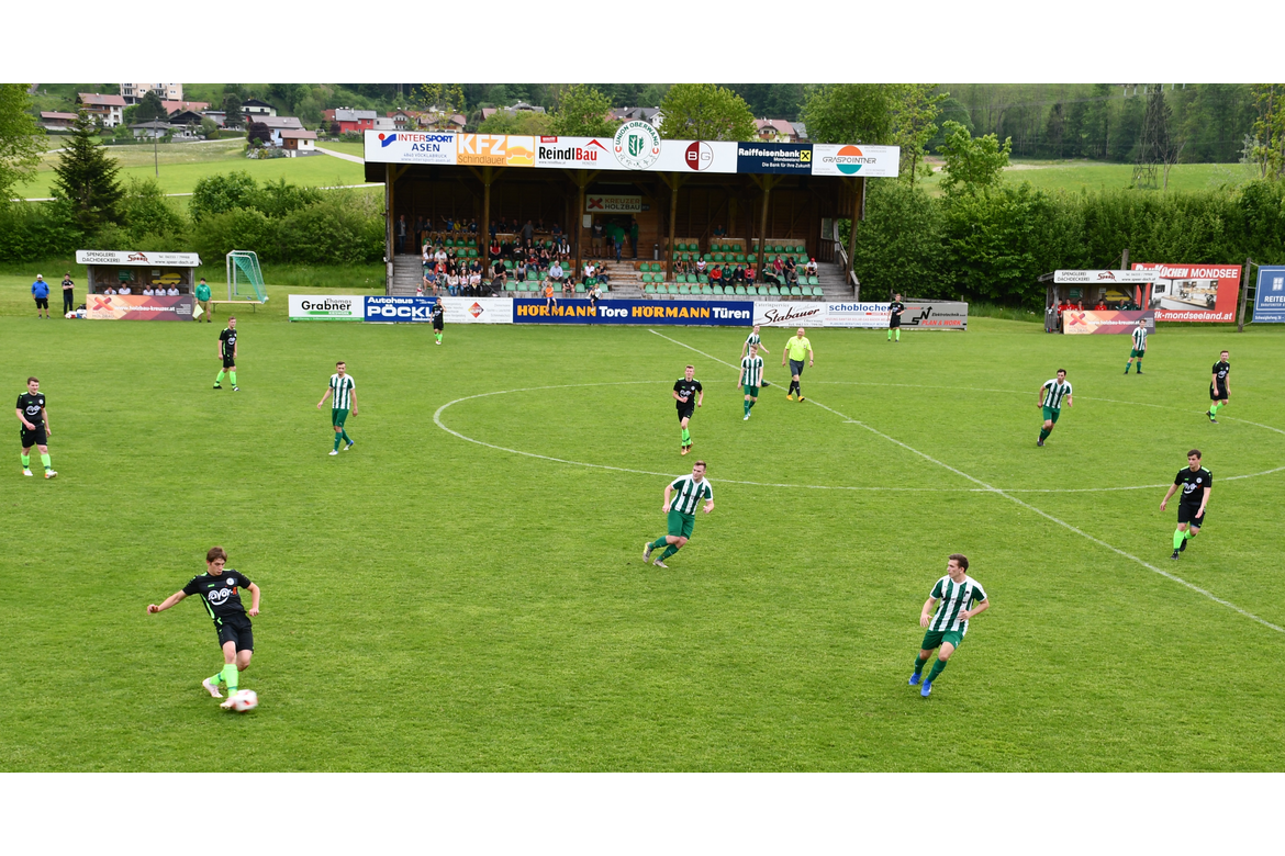 In der zweiten Halbzeit merkt man aber nicht wirklich, dass Lenzing in Überzahl spielt. Ein Kopfball von Bernhard Kneissl nach einem Eckball geht über das Tor (55.), ansonsten können die dezimierten Oberwanger den Gegner gut vom Tor weghalten. In der 59. Minute gibt es einen Freistoß aus seitlicher Position für Oberwang. Peter Lametschwandtner flankt zur Mitte und Robert Speer steigt hoch und köpfelt zur 1:0 Führung ein. Eine Erlösung in einem Spiel, das schon sehr stark nach 0:0 gerochen hat. Die Oberwanger nehmen den Schwung mit, schon mit der nächsten Aktion erzielt Andreas Hofauer das vermeintliche 2:0, aber das Tor wird wegen Abseits aberkannt. Trotzdem können die Oberwanger jetzt befreit aufspielen, die Aktionen wirken flüssiger und sie kommen auch immer wieder vors Lenzinger Tor. So auch in der 73. Minute, als Robert Speer den Ball an Torwart Meissner vobeispitzelt und von diesem gefoult wird. Der Gefoulte tritt selbst zum Elfmeter an und verwandelt sicher zum 2:0. Danach hat man nicht mehr das Gefühl, das Lenzing noch einmal in die Partie zurückkommen könnte. Lediglich in der 81. Minute muss Julian Soriat noch einen Schuss von Markus Bauer auf der Linie klären. Danach passiert nichts mehr, Oberwang gewinnt mit 2:0.