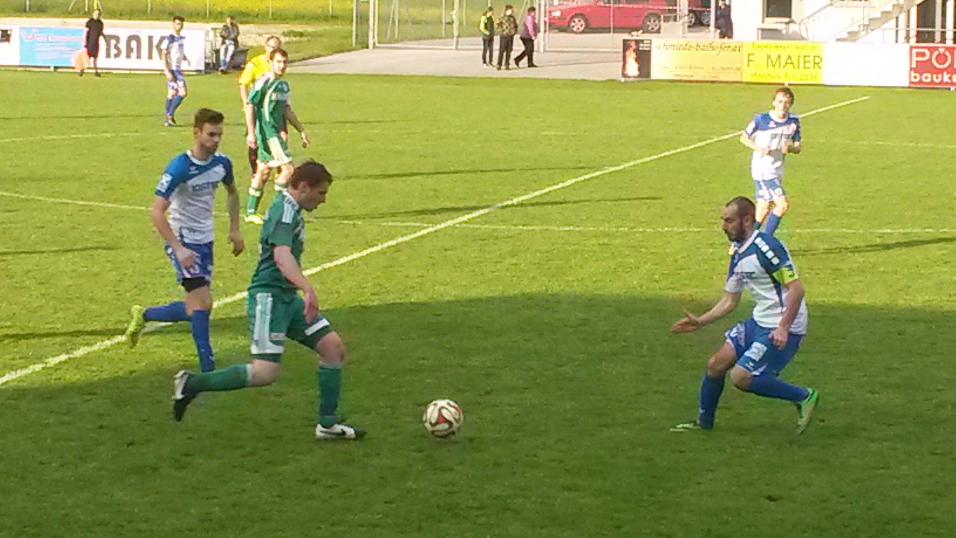 Wer sich bei diesem Abstiegskracher zwei Mannschaften mit defensiver Einstellung erwartet hat, der wird gleich einmal eines besseren belehrt. Beide Teams kämpfen von Beginn an mit offenem Visier. Zuerst kommt St. Wolfgang in Person von Lukas Österreicher zu einer Doppelchance, doch der Stürmer trifft einmal den Ball nicht richtig und schießt beim zweiten Mal drüber. Oberwang lässt sich nicht lange bitten und kommt ebenfalls zu einer guten Möglichkeit. Mario Lettner legt quer zu Bernhard Asen, doch der Mittelfeldspieler scheitert mit einem zu zentralen Schuss an Tormann Philipp Österreicher. Nach 24 Minuten ist wieder St. Wolfgang im Vorwärtsgang. Oberwangs Tormann Alexander Breitenthaler ist rechtzeitig zur Stelle und rettet vor dem durchbrechenden Christoph Feichtinger. Eine halbe Stunde ist gespielt, die Zuschauer sehen ein flottes und zunächst ausgeglichenes Spiel von beiden Mannschaften. Dann übernimmt Oberwang immer mehr die Kontrolle über das Spiel und drückt auf den Führungstreffer. Den Anfang macht Markus Putz, der in der 37. Minute aus spitzem Winkel das Tor knapp verfehlt, auch der reinrutschende Robert Speer kommt um Haaresbreite nicht mehr ran. In der 40. Minute nimmt sich Robert Speer einen hohen Ball gut mit, seinen Schuss kann der Tormann aber noch zur Ecke klären. Die Oberwanger spielen jetzt die Wolfganger schwindlig, doch mit dem Tore schießen klappt es zunächst nicht. Kurz vor der Pause spielt Rene Putz ideal flach zur Mitte zu Markus Putz, doch der schießt aus aussichtsreicher Position drüber. Weil auch Markus Lametschwandtner die Räume in der Wolfganger Verteidigung nicht nützen kann und am Tor vorbeischießt, geht es mit einem 0:0 in die Pause. Zum Haare raufen für die Oberwanger, trotz vier Großchancen innerhalb von sieben Minuten können sie keine Führung herausschießen.