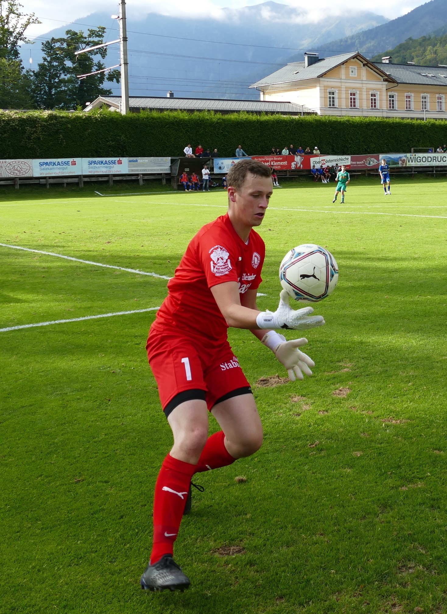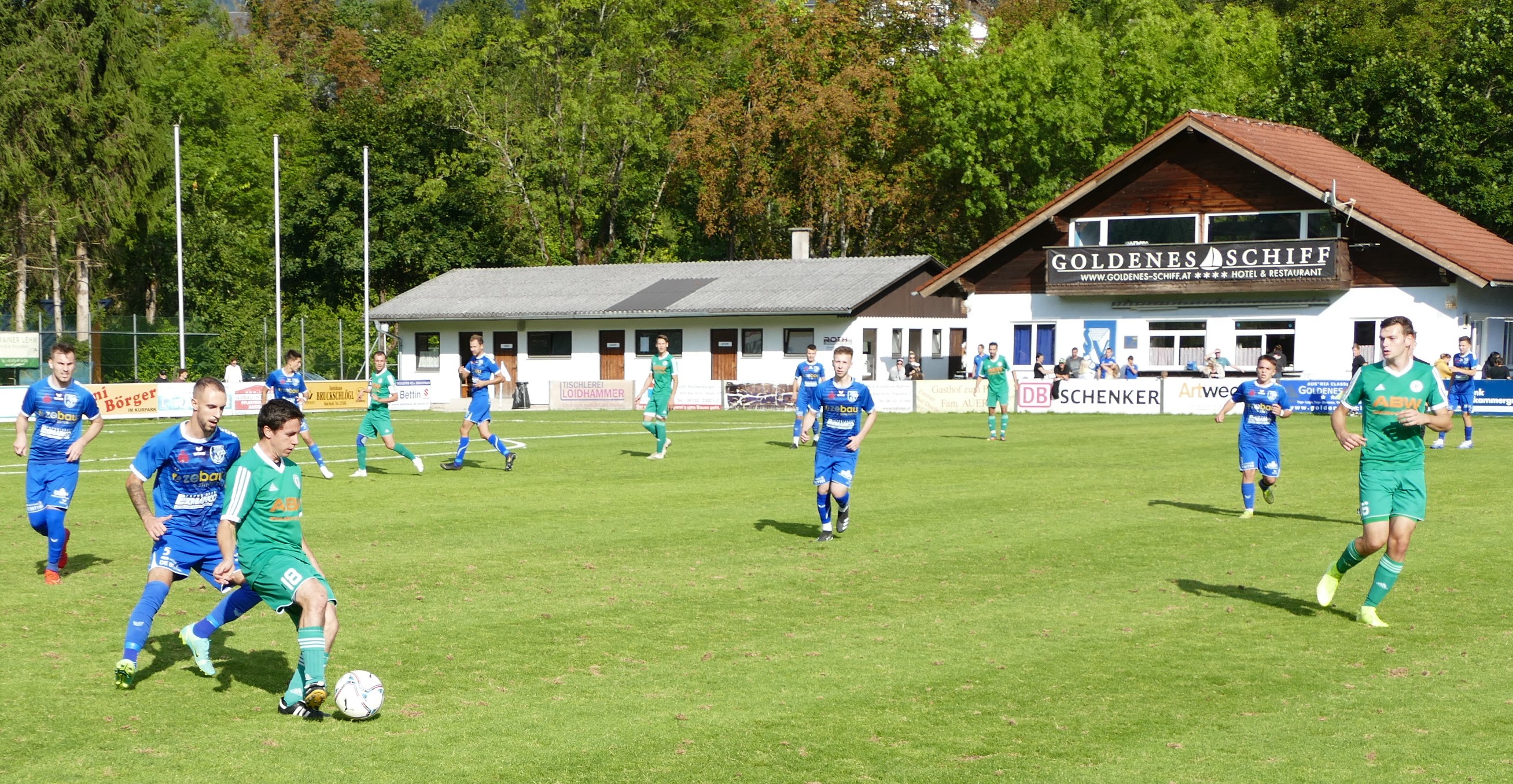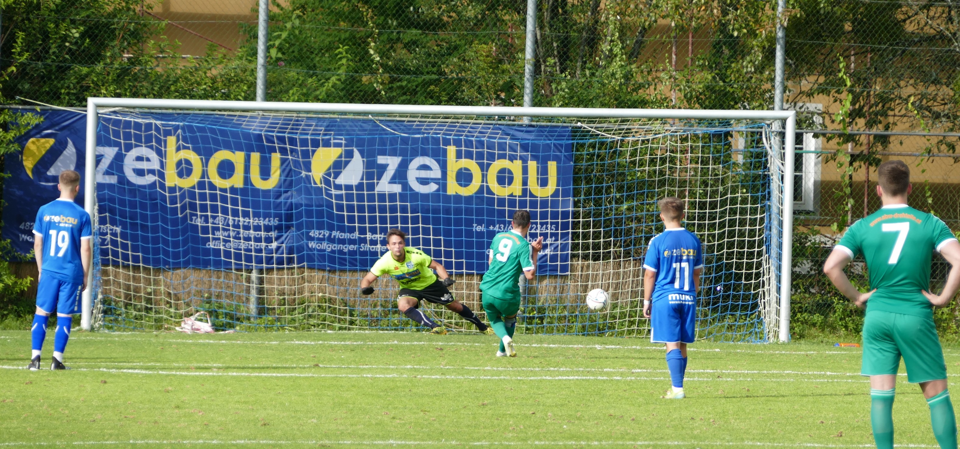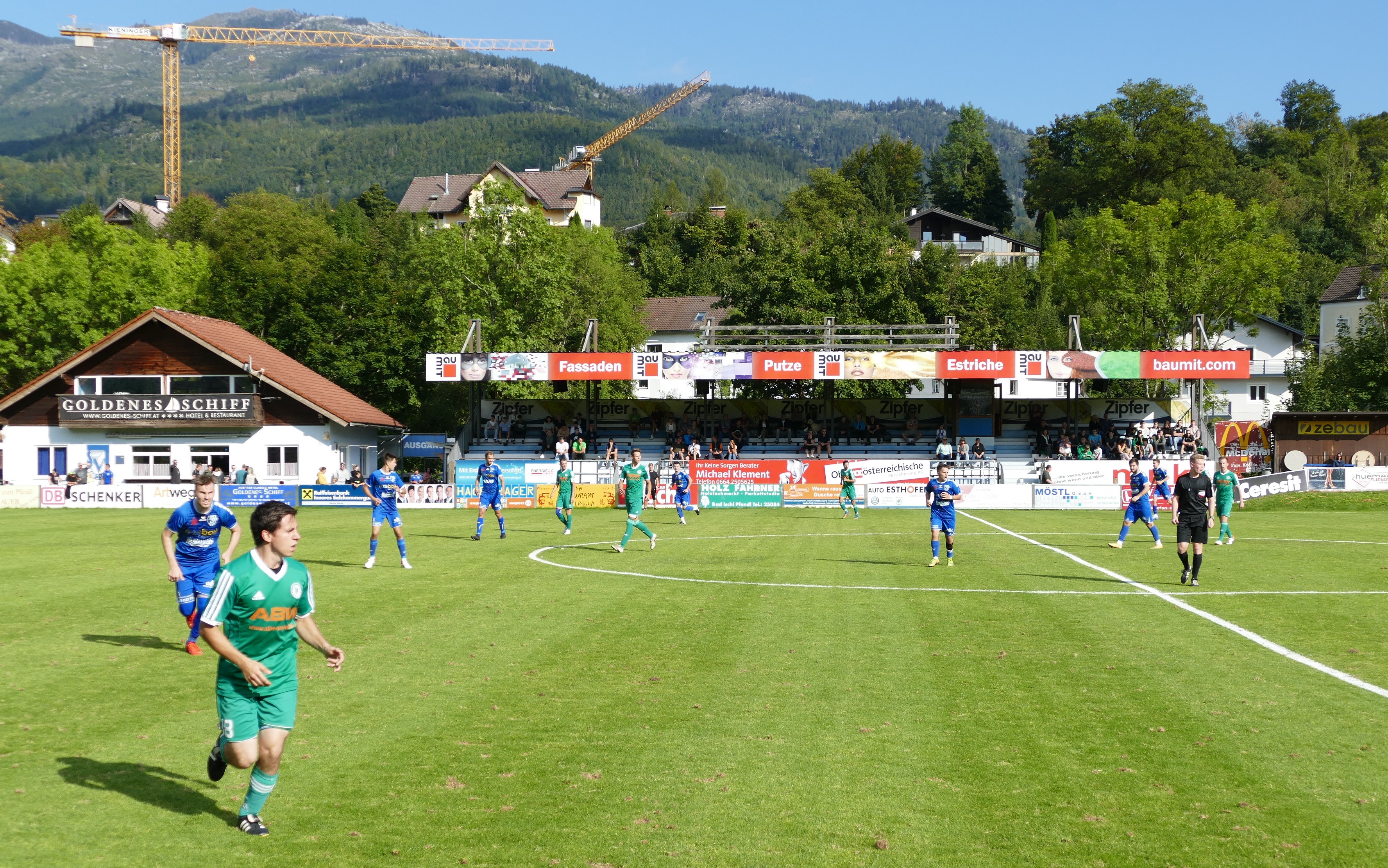 Bei spätsommerlichen Temperaturen in Bad Ischl passiert zunächst auf beiden Seiten wenig, ein Heber von Christoph König über das Tor ist die einzige Torannäherung (3.) Es dauert bis zur 21. Minute, als der Ischler Tormann Stefan Nöhmer einen Ball außerhalb des Strafraums nicht bändigen kann, Christoph König dazwischen geht und vom Torhüter gelegt wird. Den dafür verhängten Elfmeter verwandelt Robert Speer sicher zum 1:0 für Oberwang. Die Heimmannschaft ist nun gefordert, mehr wie ein Schuss von Besart Ahemti über das Tor schaut aber zunächst nicht heraus. (29.) Kurz vor der Pause hat Robert Speer noch eine gute Schusschance, setzt den Abschluss aber links neben das Tor. (43.) Überschattet wird die erste Hälfte von den verletzungsbedingten Auswechslungen von Adel Khalili bei den Oberwangern und Karlo Samardzic bei Bad Ischl.