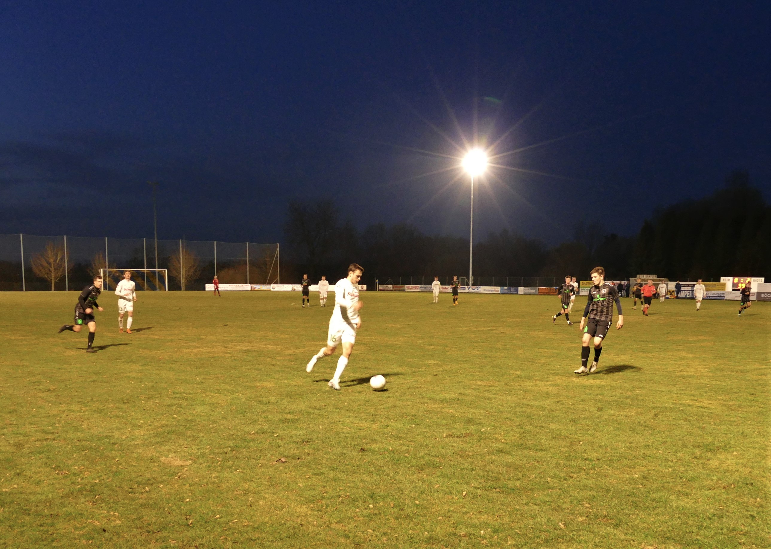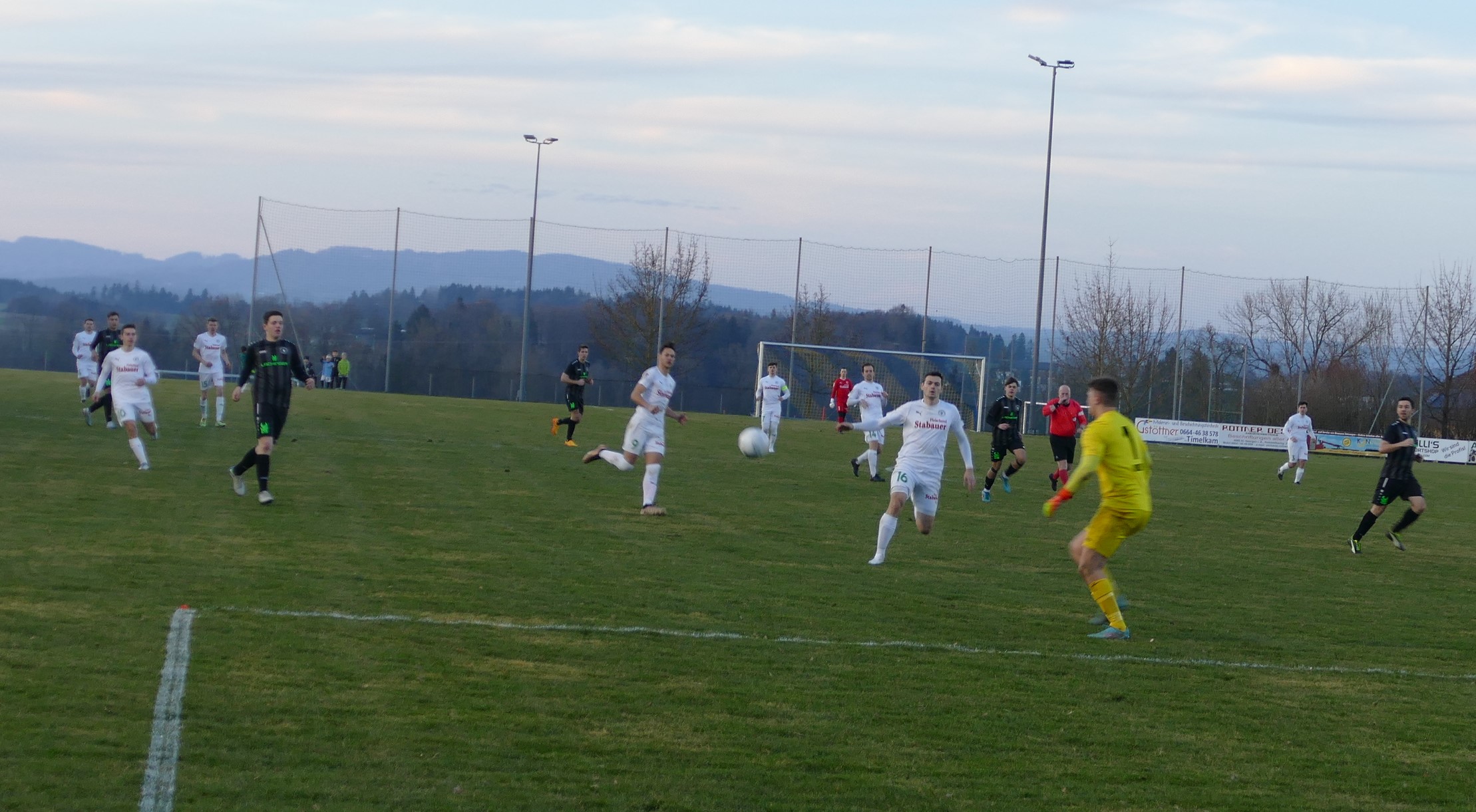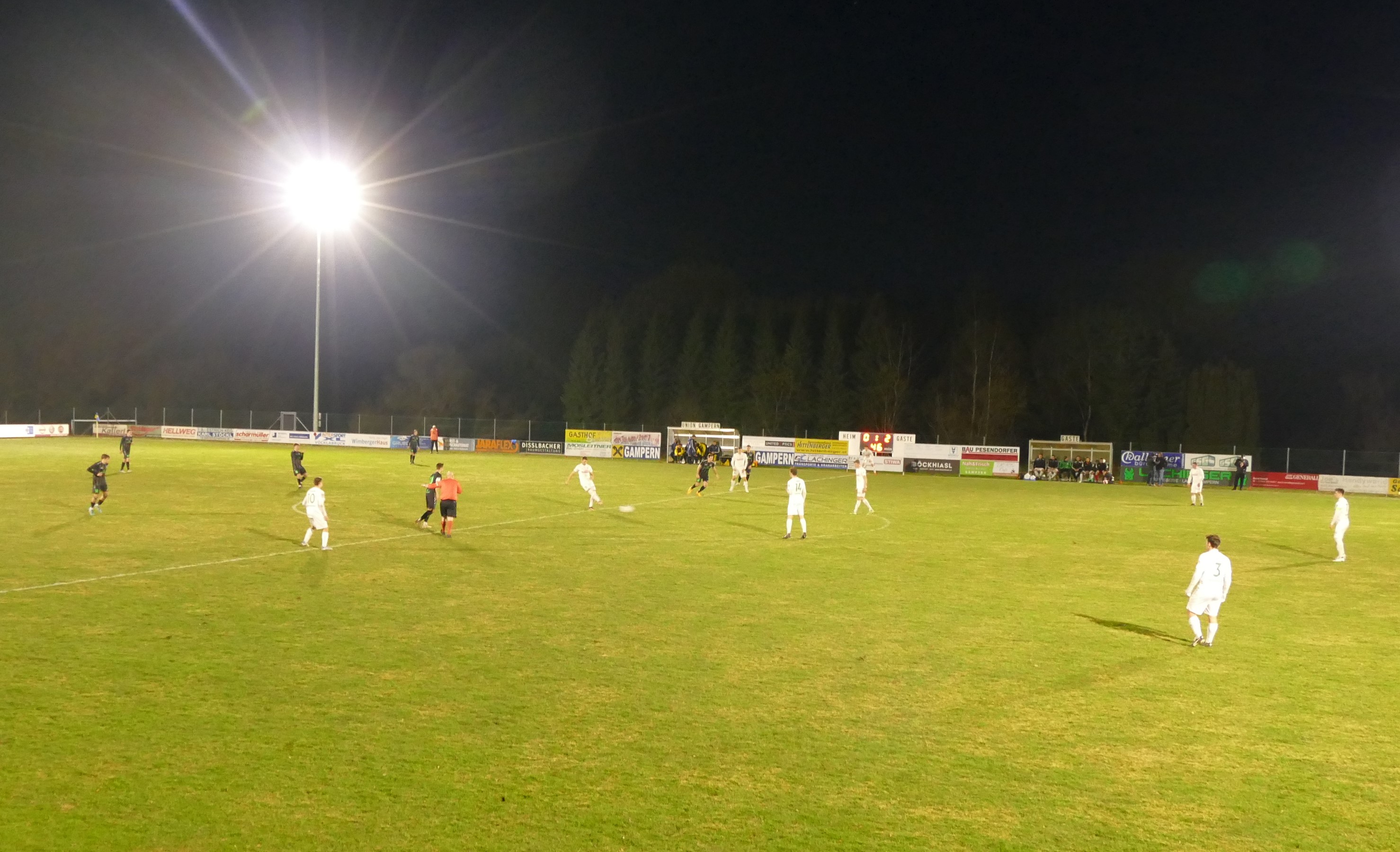 Ersterer steht auch in der Startelf und sollte gleich in der 3. Minute eine wichtige Aktion haben. Nach einem hohen Ball von Tormann David Röthleitner ist Peter Lametschwandtner frei durch und bezwingt Gamperns Torwart Dominik Moshammer, der zwar noch den Arm hochbekommt, aber den Einschlag nicht mehr verhindern kann. Die Blitzführung zum 1:0 für Oberwang. Gerade einmal drei Minuten später folgt die Antwort von Gampern. Moritz Stockinger spielt einen scharfen Querpass zur Mitte und Daniel Egger schießt den Ball aus kurzer Distanz an die Latte. Glück für die Oberwanger in diesem Fall, dass der Ball von der Latte nur auf die Linie und nicht in das Tor gesprungen ist. Danach haben aber die Gäste alles im Griff. Christoph König hat in der 10. Minute die Chance auf 2:0 zu erhöhen, aber der Torwart hält seinen Schuss mit einer Fußparade. Nach der aufregenden Anfangsphase flaut die Partie dann etwas ab. In der 26. Minute folgt wieder ein echtes Highlight: Nach einem hohen Zuspiel von links kommt Markus Lametschwandtner an den Ball und haut diesen volley ins linke Kreuzeck – ein Traumtor zum 2:0. Die Oberwanger spielen weiter nach vorne und bestimmen das Spiel. Ein Freistoß von Markus Soriat geht neben das Tor.(35.) Kurz vor der Pause hat Markus Lametschwandtner noch eine Doppelchance, aber er bringt den Ball weder mit dem Fuß, noch mit dem Kopf im Tor unter. (45.) Somit bleibt es bei der 2:0 Pausenführung für Oberwang.
