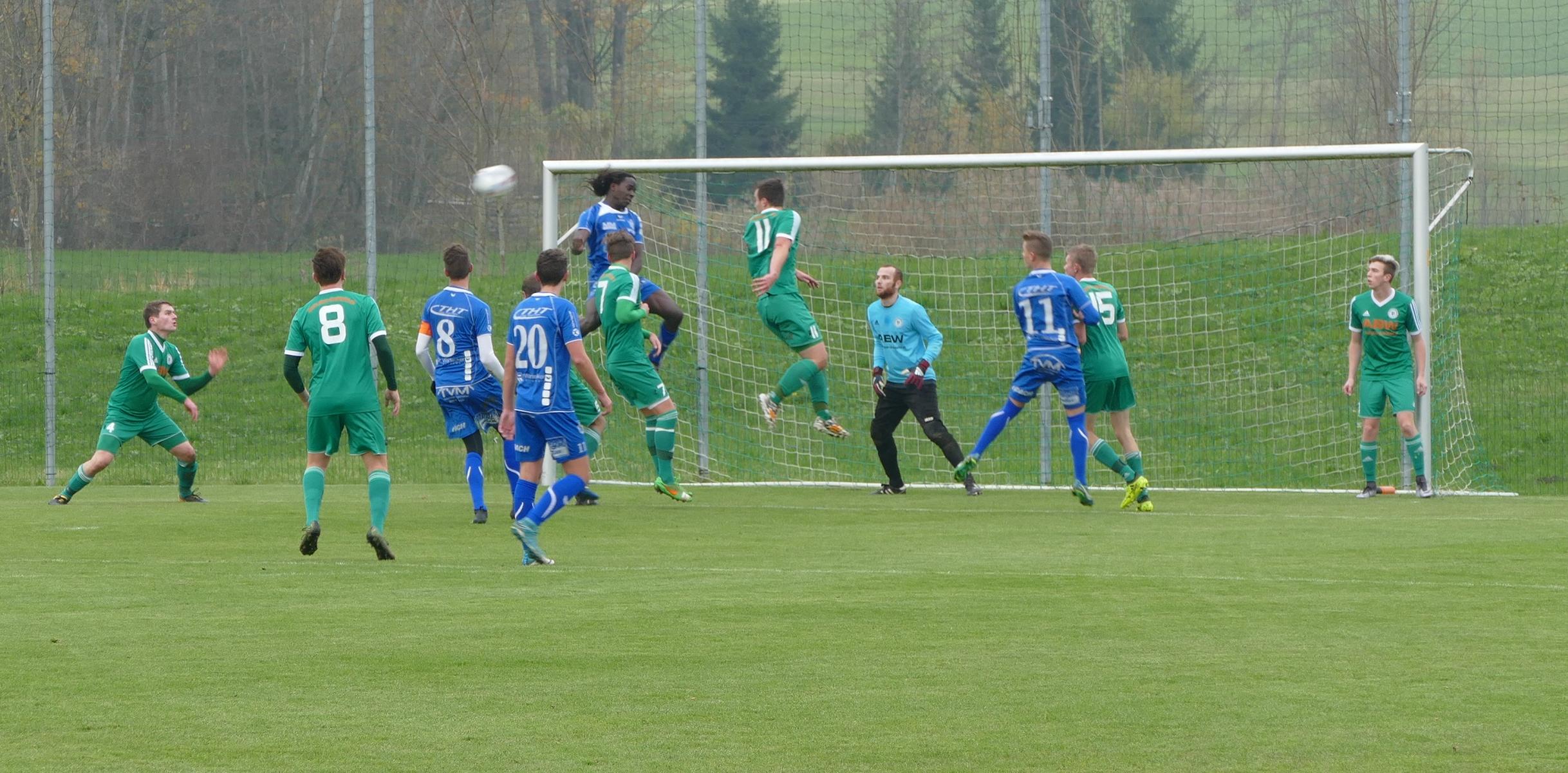 Die Oberwanger haben die letzte Niederlage scheinbar sehr gut verdaut, sie sind von Anfang an gut in der Partie. Bereits in der vierten Minute flankt Florian Trinker auf Robert Speer, der aus der Drehung abzieht und das lange Eck nur knapp verfehlt. Zwei Minuten später sind wieder die beiden Spieler Protagonisten eines Oberwanger Angriffs. Diesmal bedient Robert Speer Florian Trinker in der Mitte, der behauptet den Ball und schließt unhaltbar für Tormann Cubrelji zum 1:0 ab. Das frühe Tor gibt zusätzliche Sicherheit im Spiel, Oberwang hat alles im Griff. Die Gäste aus Gmunden geben in der 9. Minute den ersten Schuss ab, Marco Schiffer schießt aus guter Position klar drüber. In der 11. Minute verpasst Florian Trinker seinen zweiten Treffer nur knapp. Bernhard Asen spielt einen hohen Ball genau in den Lauf, aber Tormann Cubrelji klärt mit einer guten Parade den Schuss. Oberwang schaltet nach einer starken Anfangsphase einen Gang zurück. Zwar ist man offensiv in der ersten Hälfte nicht mehr so präsent, aber aufgrund der gewohnt sicheren Defensive hat man kein Problem, den Vorsprung bis zur Pause zu verwalten.