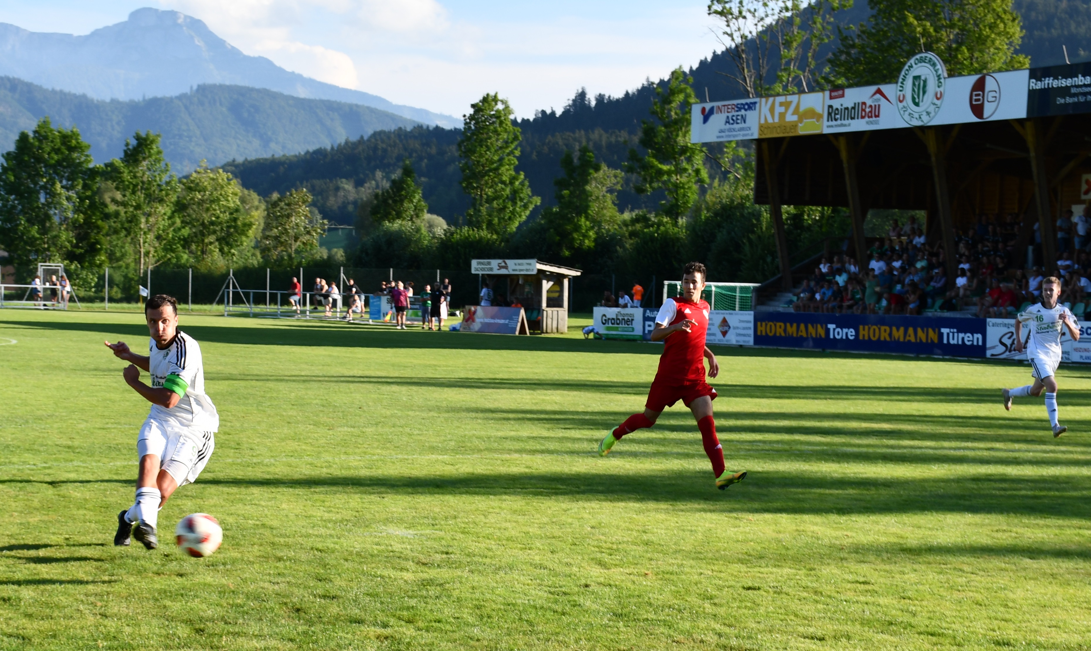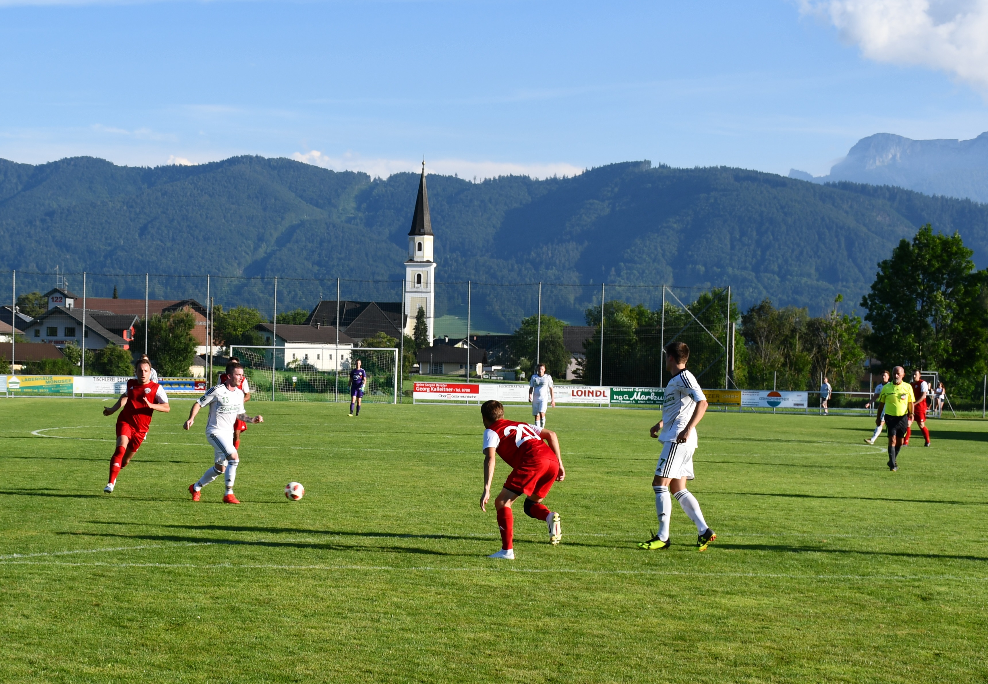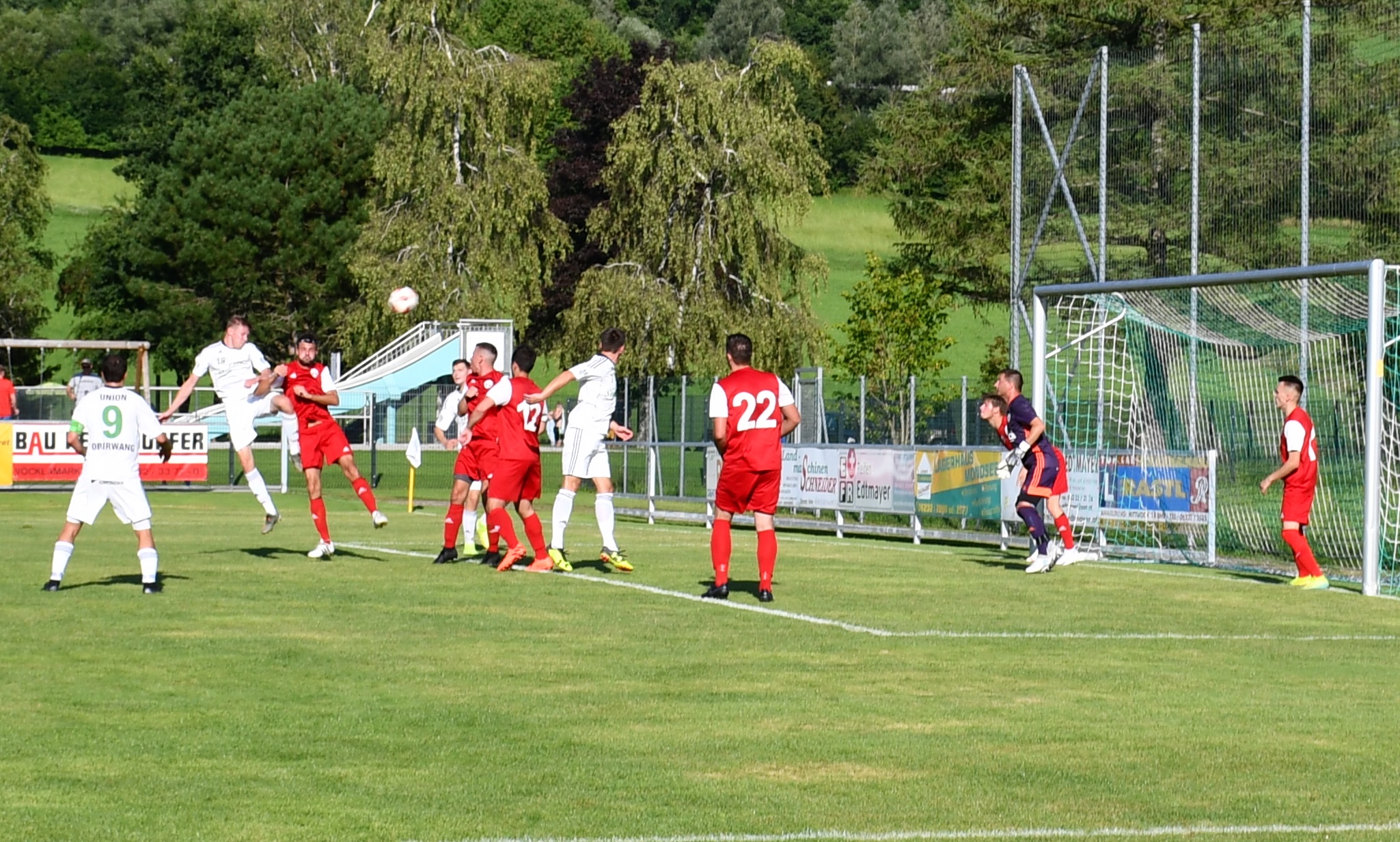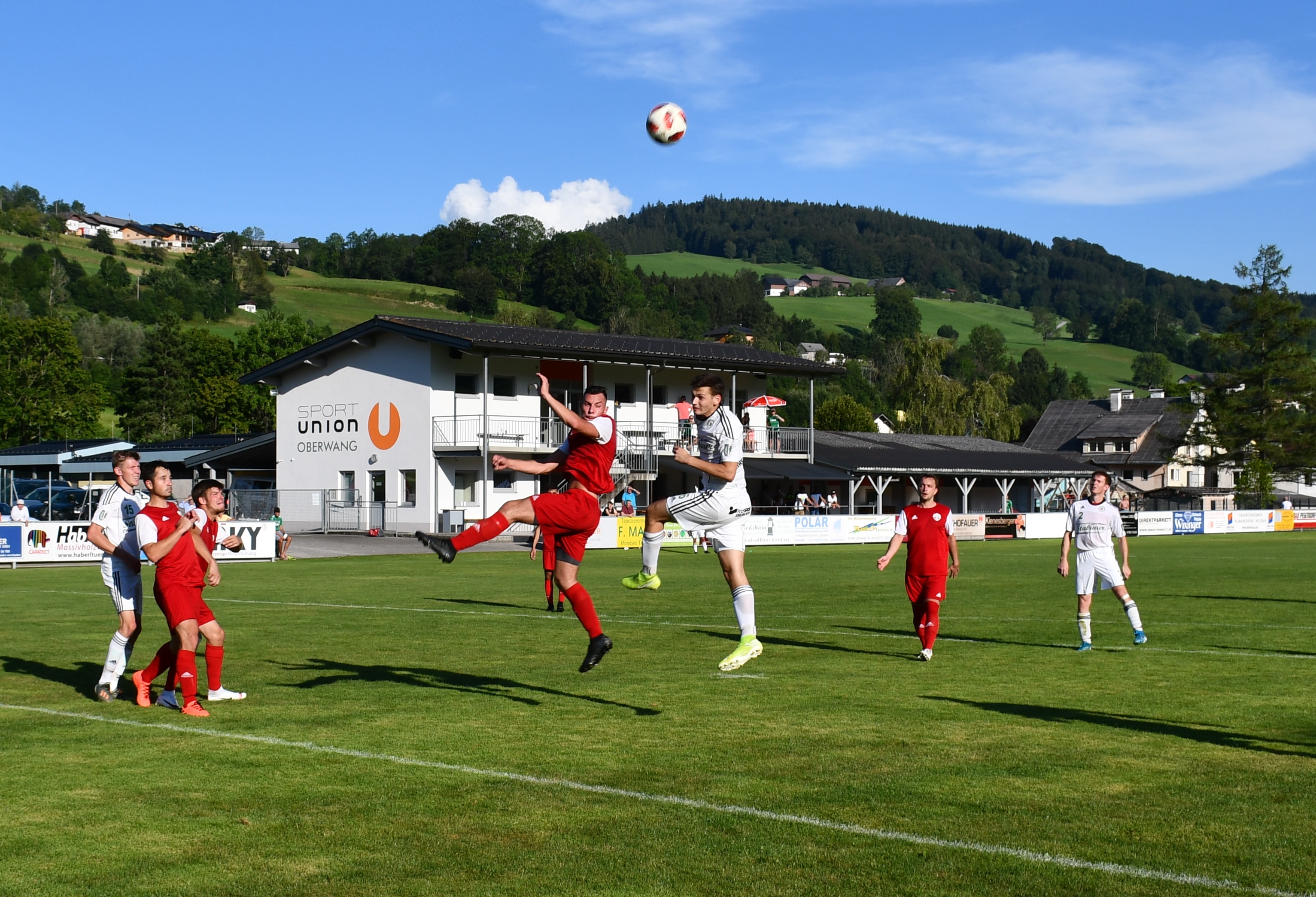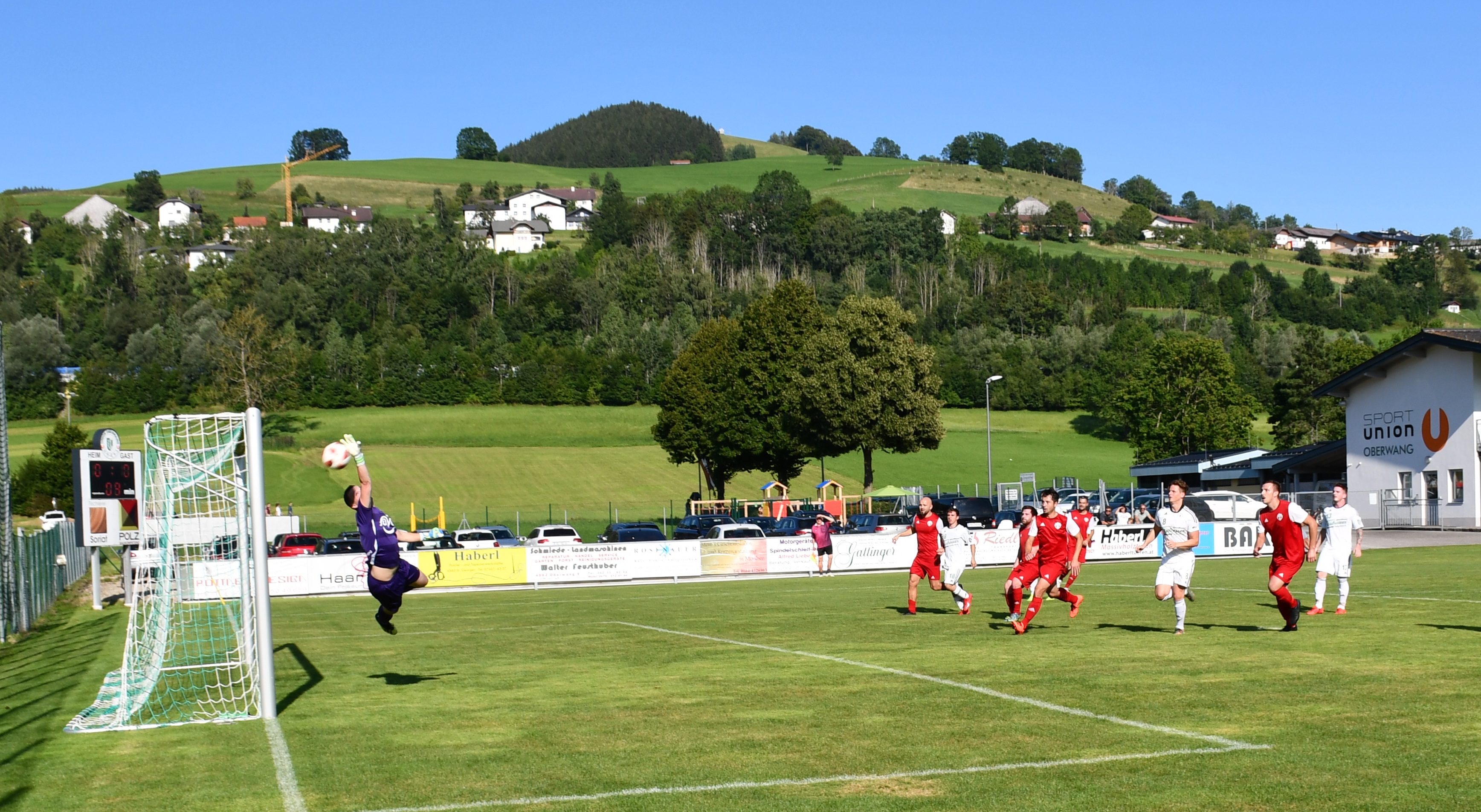 Im ersten Spiel der Oberwanger unter Trainer Stefan Riedl brauchen beide Mannschaften etwas, um ins Spiel zu kommen. Pinsdorf nutzt in Minute 11 einen Freistoß aus guter Position, um in Person von Kapitän Viktor Hoffmann auf 1:0 zu stellen. Der Ball geht über die Mauer genau ins Eck, nichts zu halten für David Röthleitner im Oberwanger Tor. Danach ist das Spiel eher ausgeglichen mit Halbchancen auf beiden Seiten. In der 31. Minute folgt eine Szene, die dem Spiel eine entscheidende Richtung geben sollte. Der Pinsdorfer Adnan Agic sieht nach einem Foulspiel an Markus Lametschwandtner Gelb/Rot, damit müssen die Gäste 60 Minuten in Unterzahl spielen. Nach 33 Minuten versucht sich Emirhan Acar mit einem Weitschuss, der Ball geht aber über das Tor. Auf der Gegenseite kommt Mathias Schmidt nach einer Ecke zum Kopfball, setzt diesen aber knapp daneben. (37.) In der 40. Minute fällt der verdiente Ausgleich für die Oberwanger. Daniel Lettner steckt ideal durch auf Robert Speer und der bezwingt Pinsdorfs Keeper Feichtinger zum 1:1. Mit diesem Ergebnis geht es auch in die Kabine.