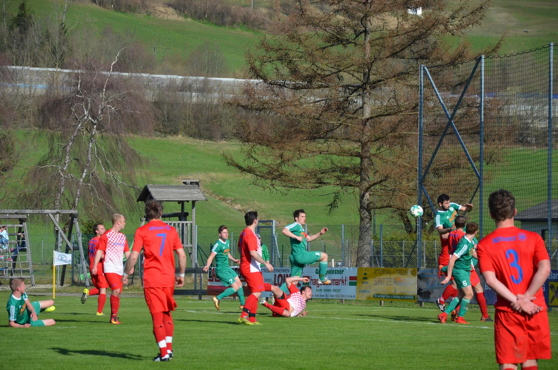 Oberwang kommt schnell auf Betriebstemperatur und findet in der 10. Minute die erste Torchance vor. Nach einem Eckball von Mario Lettner kommt Mathias Schmidt zum Abschluss, doch sein Schuss geht rechts daneben. Auch Richard Pek schaltet sich immer wieder in die Angriffsaktionen ein. In Minute 13 legt er für Marco Szalay ab, dessen Treffer wird jedoch wegen Abseits nicht anerkannt. Die Oberwanger zeigen sich spielfreudig und setzen sich in der Ebenseer Hälfte fest. Von Ebensee ist in der ersten Halbzeit wenig zu sehen, Oberwang diktiert das Geschehen, aber der Treffer fehlt noch. In der 22. Minute sind sie ganz knapp dran, aber Josef Speer scheitert mit seinem wuchtigen Kopfball nach Eckball am gut parierenden Gästekeeper Huemer. Die Führung für Oberwang ist gefühlt nur mehr eine Frage der Zeit. Richard Pek taucht in der 29. Minute alleine vorm Tor auf, aber der Torwart kommt schnell heraus und kann retten. Letztlich helfen die Gäste etwas mit, damit endlich der erste Treffer gelingt, denn in der 31. Minute gibt es Elfmeter nach einem Foul im Ebenseer Strafraum. Diese Gelegenheit lässt sich Mario Lettner nicht entgehen und verwandelt souverän flach ins Eck zum 1:0 für Oberwang. Kurze Zeit später wäre Bernhard Asen beinahe das Tor des Jahres geglückt. Er zieht mit dem rechten Außenrist aus der Distanz ab und verfehlt mit einem angedrehten Schuss nur knapp das Tor. Oberwang liegt zur Pause hochverdient mit 1:0 in Führung.