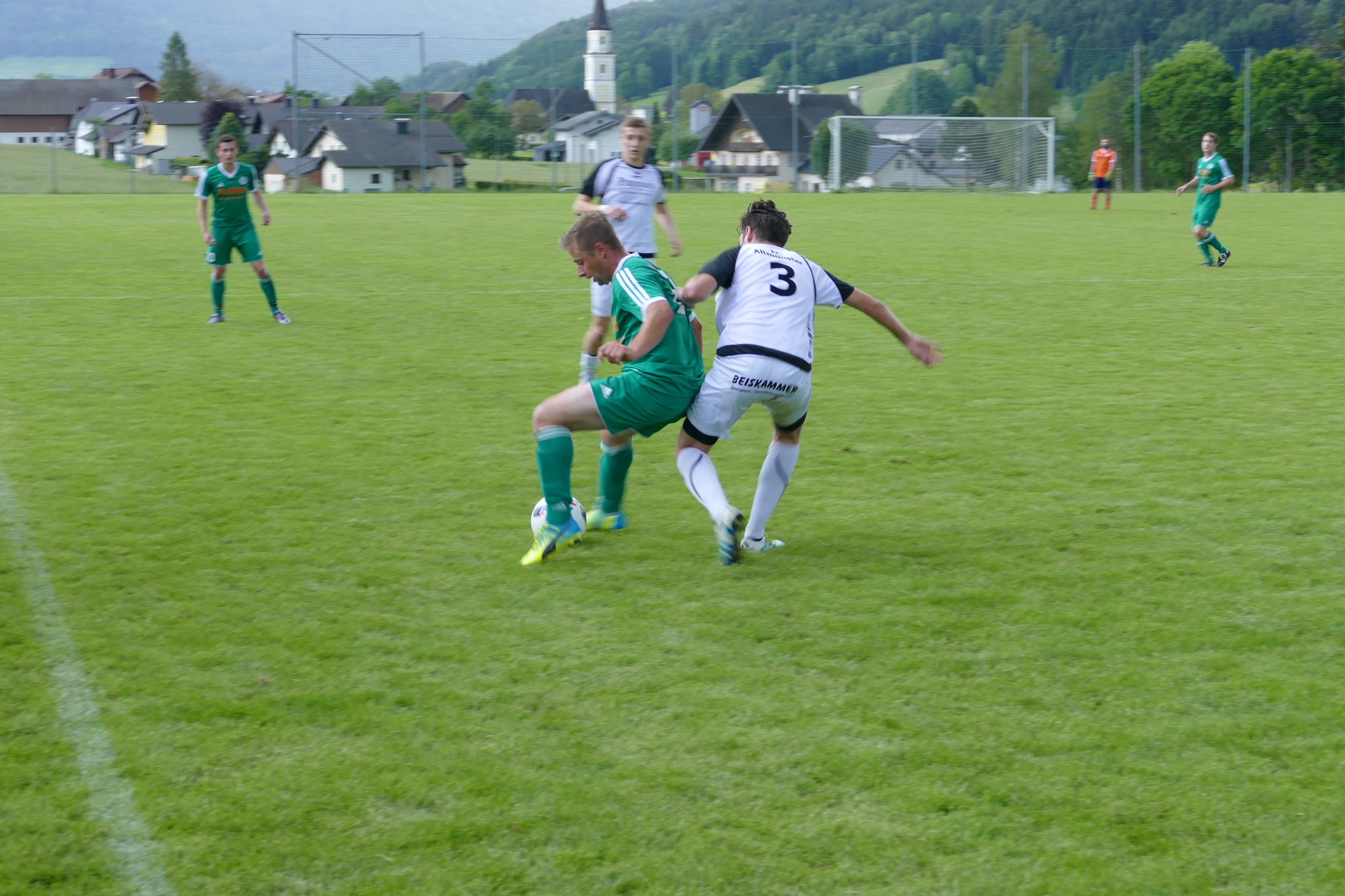 Es sieht also gut aus mit dem ersten Sieg seit 26. März für die Oberwanger, doch die zweite Halbzeit hat noch einiges zu bieten. Bereits in der 50. Minute gibt es Elfmeter für Altmünster, nach einem Foul der Oberwanger im Strafraum. Miklos Peter Zrinyi verlädt Alexander Breitenthaler beim Elfmeter und stellt auf 1:2. Oberwang wird nach dem Gegentreffer sofort aktiv. Robert Speer bekommt den Ball gut per Lochpass serviert, doch Torwart Spiessberger rettet bei seinem Schuss mit einer Fußabwehr. Im direkten Gegenzug spielen die Altmünsterer schnell über die rechte Seite, Dominik Mühlbacher steht beim Querpass richtig und erzielt den 2:2 Ausgleich in der 53. Minute. Genau wie den Oberwangern in der ersten Hälfte gelingt ihnen ein Doppelschlag innerhalb von drei Minuten. Die Oberwanger geben die Führung aus der Hand, doch trotzdem rappelt sich die Mannschaft wieder auf. Wir schreiben die 63. Minute. Johannes Scheiblauer flankt von rechts in den Rückraum, dort zieht Rene Putz einfach mal volley ab und erzielt so ein Traumtor zur neuerlichen Führung. Auch in der nächsten Aktion hat Rene Putz seine Beine im Spiel. Altmünsters Verteidigung verschätzt sich bei einem hohen Ball, Rene Putz nutzt die Gelegenheit und spielt auf für den mitgelaufenen Andreas Hofauer, der auf 4:2 für Oberwang stellt. Wieder waren nur vier Minuten seit dem letzten Treffer vergangen. Altmünster verkürzt in der Schlussphase noch einmal durch einen Zrinyi-Freistoß auf 3:4 (78.), doch letztlich bringt Oberwang den Sieg über die Zeit.