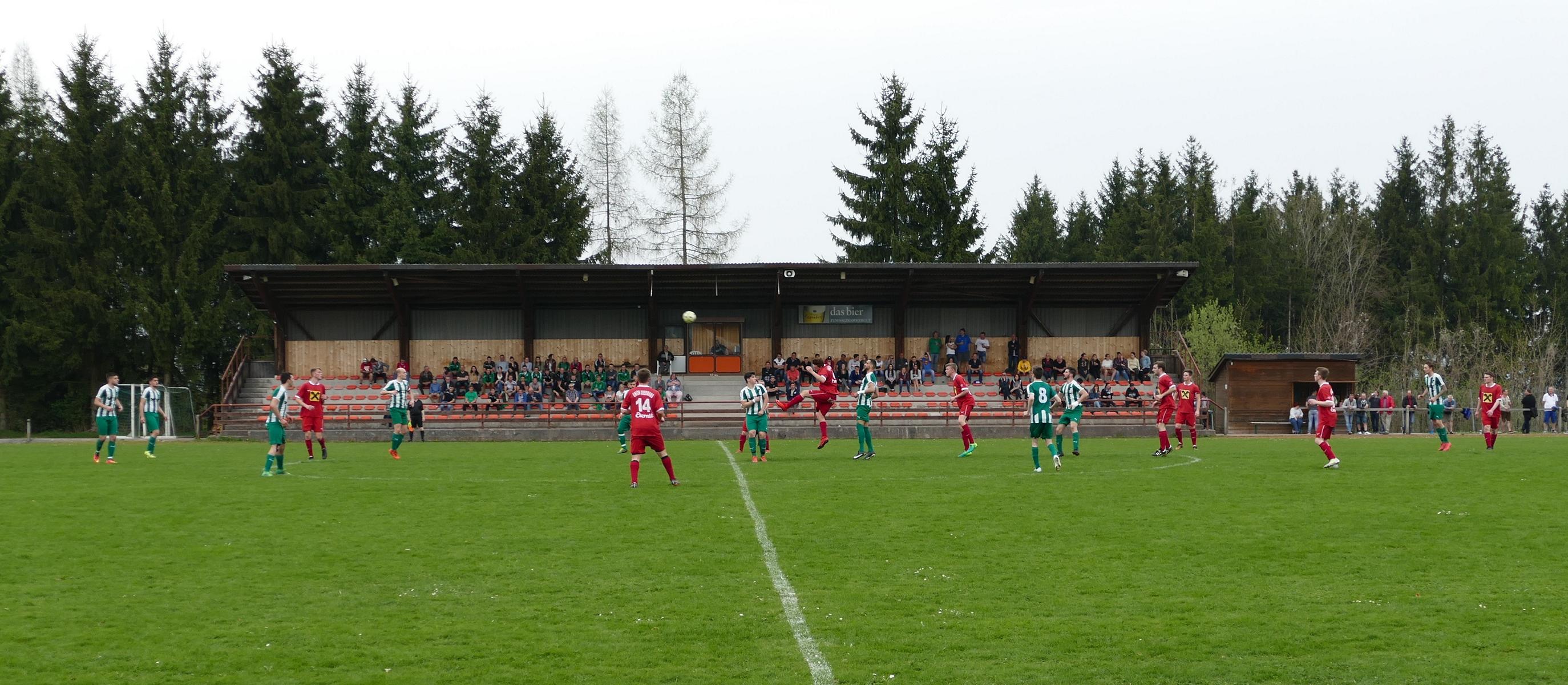 Die Oberwanger, die diesmal in ungewohntem Rot spielen, tun sich bei schwierigen Platzverhältnissen in Lenzing zu Beginn schwer. Lenzings Keeper Thomas Mayrhofer hat etwas Mühe mit einem Aufsitzer von Bernhard Asen, der es aus der Distanz probiert hat. (15.) Ansonsten fällt es den Oberwangern schwer, auf dem holprigen Platz Torchancen herauszuspielen. In der 33. Minute findet Andreas Hofauer mit seinem Pass Mathias Schmidt im Rückraum, aber dessen Abschluss fällt etwas zu schwach aus. Passend zum Spiel fällt schließlich die Führung für Oberwang in Minute 37: Tormann Mayrhofer patzt bei einer Ecke und kann einen Kopfball nicht festhalten. Florian Trinker ist zur Stelle und staubt zum 1:0 ab. Oberwang bleibt ungefährdet in der Verteidigung und nützt in der Offensive die Fehler von Lenzing aus. Kurz vor der Pause segelt der Lenzinger Torwart erneut bei einer Freistoßflanke ins Leere, diesmal bleibt der Fehler aber unbestraft. Zur Pause führt Oberwang knapp, aber verdient mit 1:0.