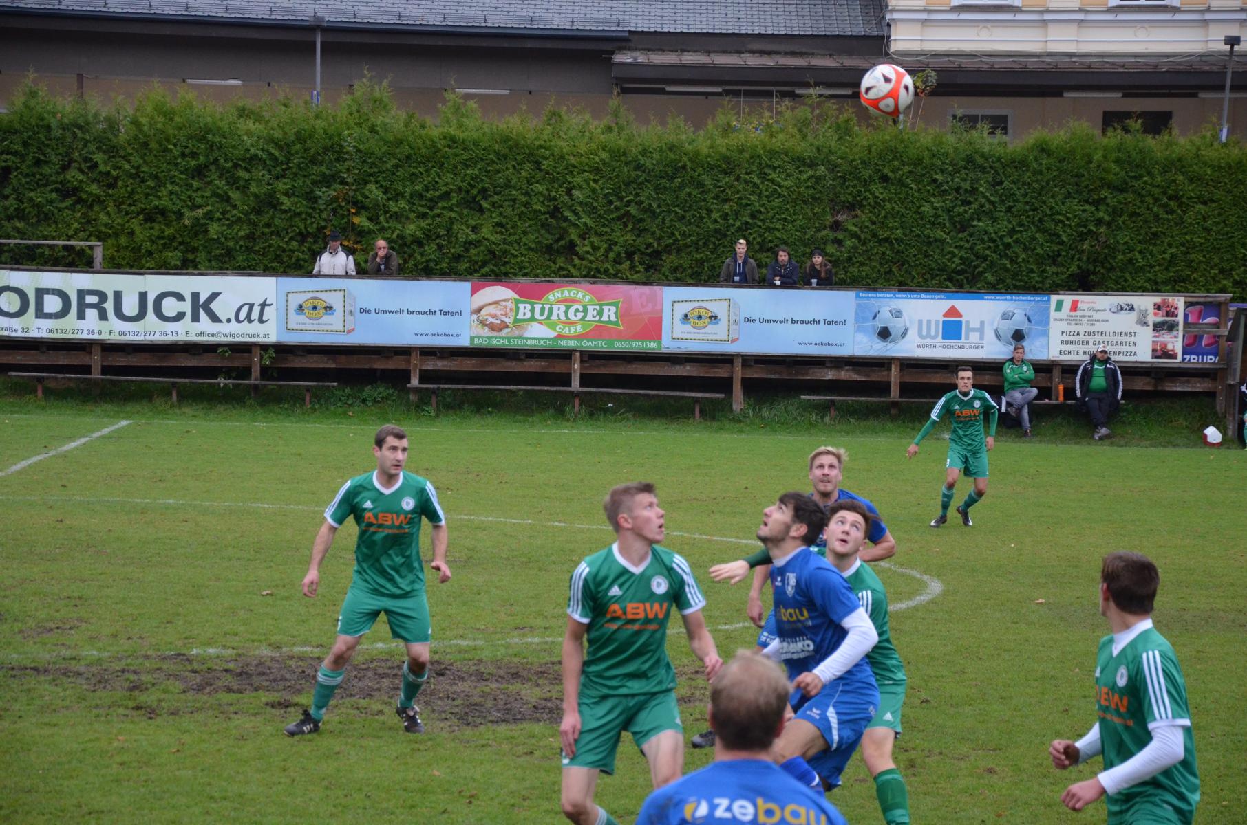 Trotz schwieriger Platzverhältnisse entwickelt sich in der Anfangsphase ein munteres Spiel in Bad Ischl. Wenige Sekunden sind erst gespielt und schon findet die Heimmannschaft die erste Torchance vor. Nach einem Lochpass ist Josip Gavric frei durch, aber Oberwangs Tormann Marco Plank ist bei seinem Schuss auf dem Posten. Auf Seiten von Oberwang gibt Andreas Hofauer den ersten Torschuss ab, der allerdings übers Tor geht. (2.) Nach einer Viertelstunde flaut die Partie etwas ab, beide Mannschaften tun sich schwer, spielerische Akzente zu setzen. Viele Torchancen gibt es nicht, Bad Ischl ist die etwas gefährlichere Mannschaft. In der 30. Minute trifft Uwe Leitner das Außennetz, eine Minute später rutscht Josip Gavric knapp an einer Flanke vorbei. Nach 38 Spielminuten ist es wieder Josip Gavric, der eine Torchance vorfindet. Torhüter Marco Plank kommt aus seinem Tor heraus und hat Glück, dass Gavric in dieser Situation den Kopfball neben das leere Tor setzt. In der nächsten Aktion macht sich wieder die Oberwanger Defensive das Leben selbst schwer. Nach einem Rückpass der Oberwanger Verteidigung verliert Marco Plank den Ball auf dem unebenen Boden, Emirhan Acar nimmt das Geschenk an und schiebt zum 1:0 für Bad Ischl 1b ein. (39.) Ein unglücklicher Rückstand für die Oberwanger, die etwas brauchen, um eine Ausgleichschance vorzufinden. In der 44. Minute zieht Florian Trinker von der Strafraumgrenze ab, Tormann Severin Heuberger kann seinen Schuss parieren. In der Schlussminute der ersten Halbzeit gibt es noch einmal Freistoß von der Strafraumgrenze der Oberwanger. Emirhan Acar probiert es mit einem Direktschuss, aber Marco Plank lässt sich nicht überraschen und pariert zur Ecke, die nichts einbringt. Damit liegt Oberwang zur Pause mit 0:1 zurück.