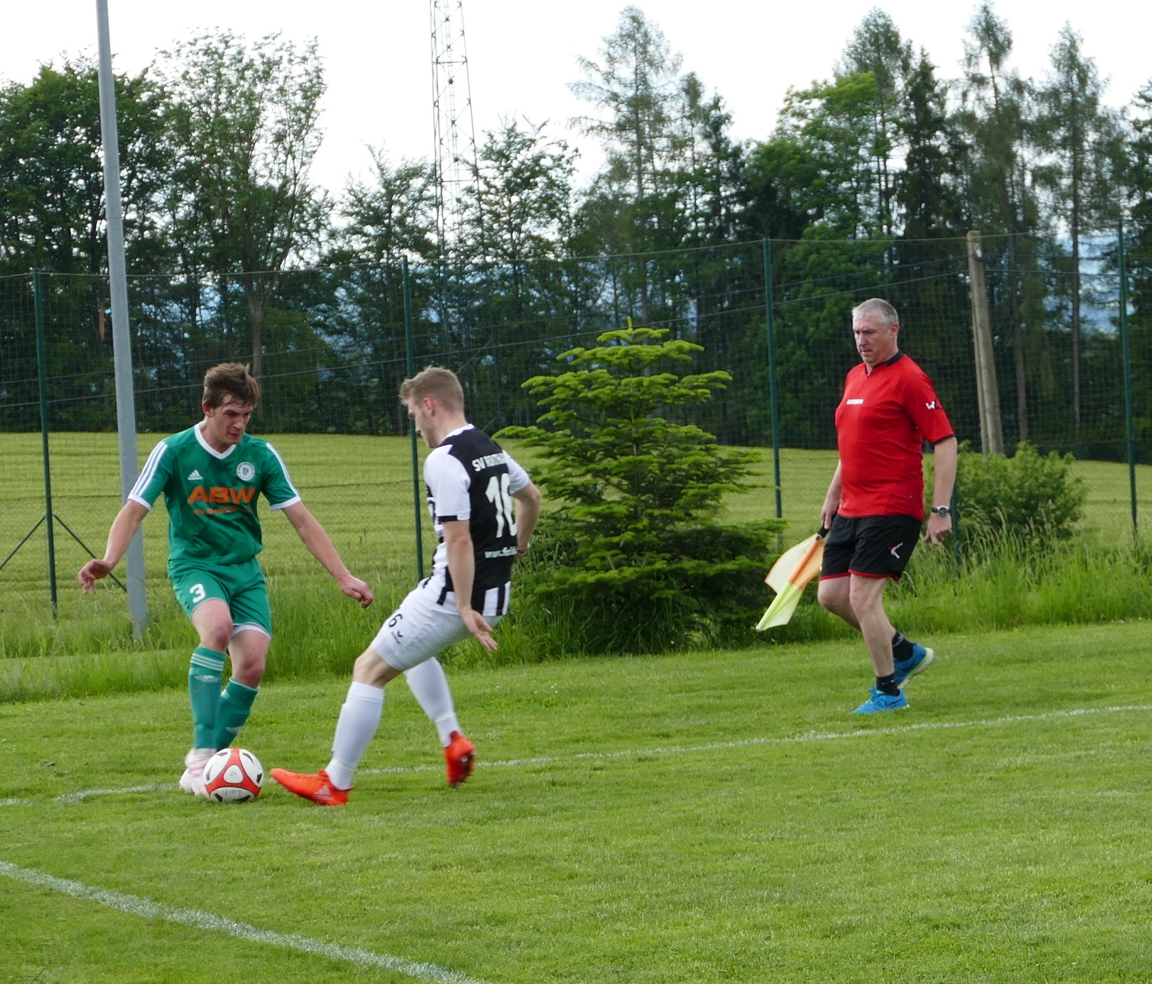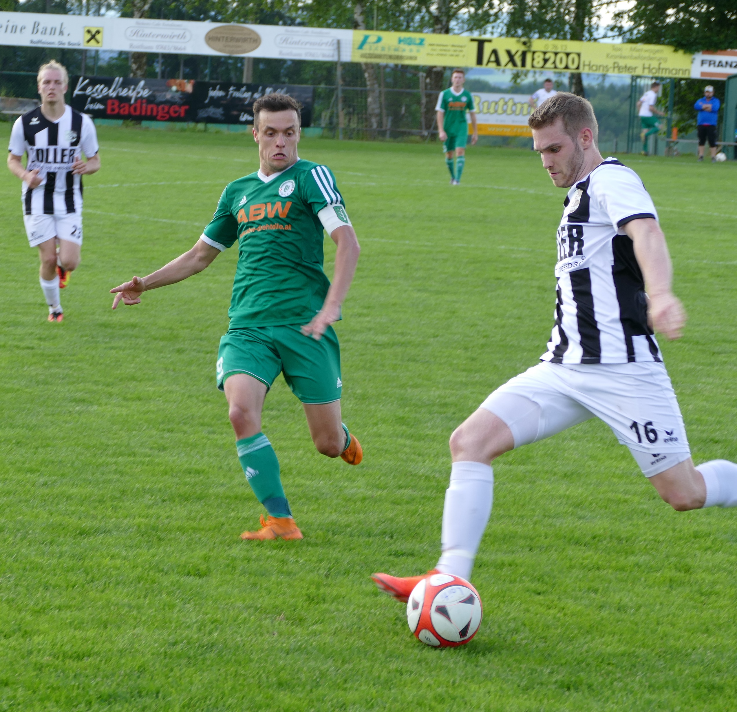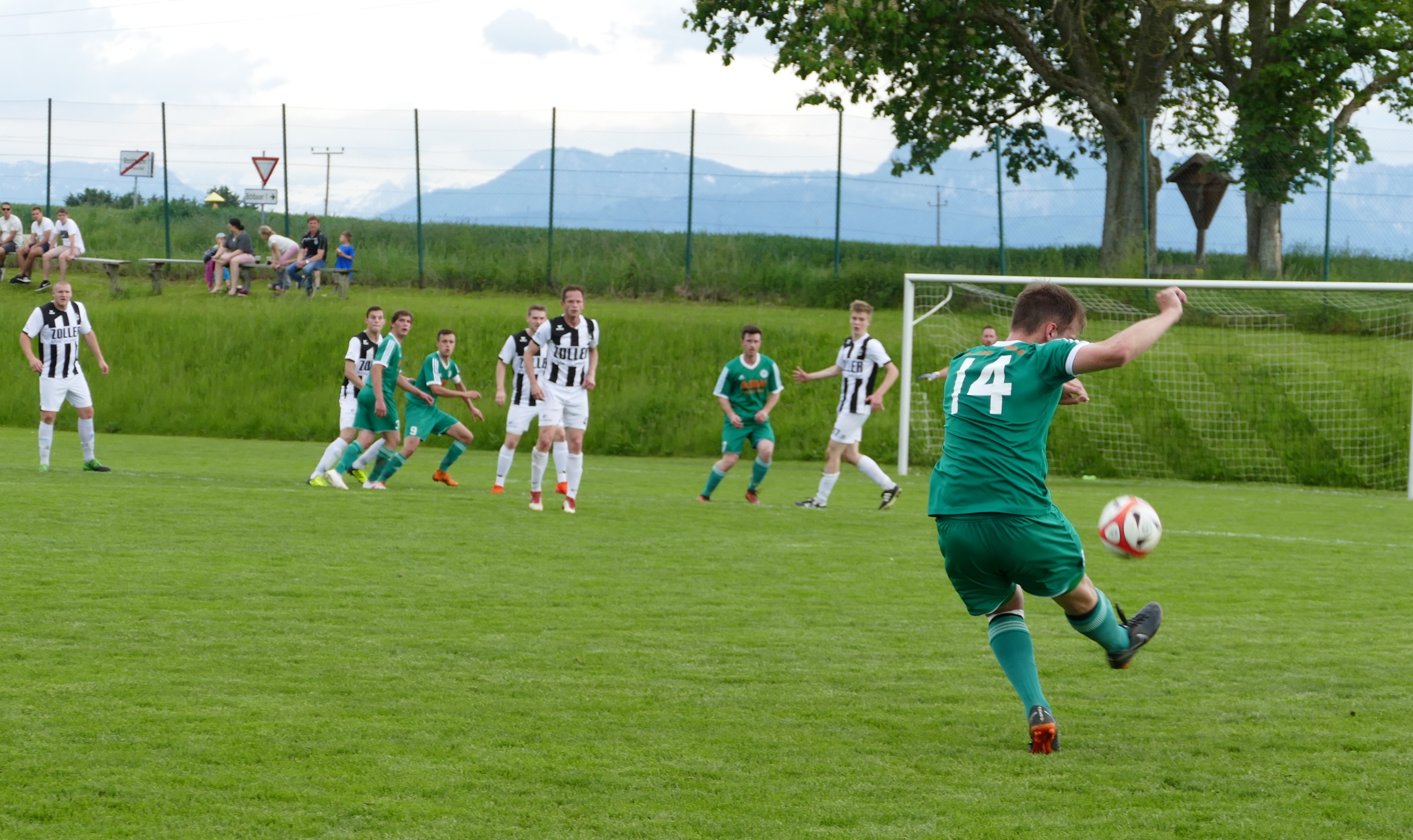 Zunächst sieht es aber nicht danach aus, als könnten die Oberwanger ihre Aufgabe erledigen. Gabor Sagi trifft den Ball aus der Distanz perfekt und hämmert den Ball zum 1:0 unter die Latte. Die Oberwanger liegen bereits nach vier Minuten zurück und brauchen etwas, um den Treffer zu verdauen. Es ist ein schnelles Spiel von Beginn an, aber Torchancen sind vorerst selten. In der 26. Minute bringt Peter Lametschwandtner eine Flanke zur Mitte, aber den Kopfball von Andreas Hofauer kann Roithams Tormann Messics parieren. Oberwang hat mehr Spielanteile, Roitham verlegt sich aufs Kontern und wird dadurch ebenso ab und zu gefährlich. In der 32. Minute versucht es Philip Wöss nach einem Eckball mit einem Weitschuss, der Ball geht knapp links daneben. Zum Ende der ersten Hälfte übernimmt Oberwang wieder das Kommando. Nach 39 Minuten flankt Simon Loindl auf Markus Lametschwandtner, der setzt den Ball per Kopf knapp neben das Tor. Kurz vor der Pause fällt der nicht unverdiente Ausgleich. Julian Soriat zieht aus der Ferne ab, der Ball schlüpft Tormann Messics durch die Finger – 1:1 zur Pause.