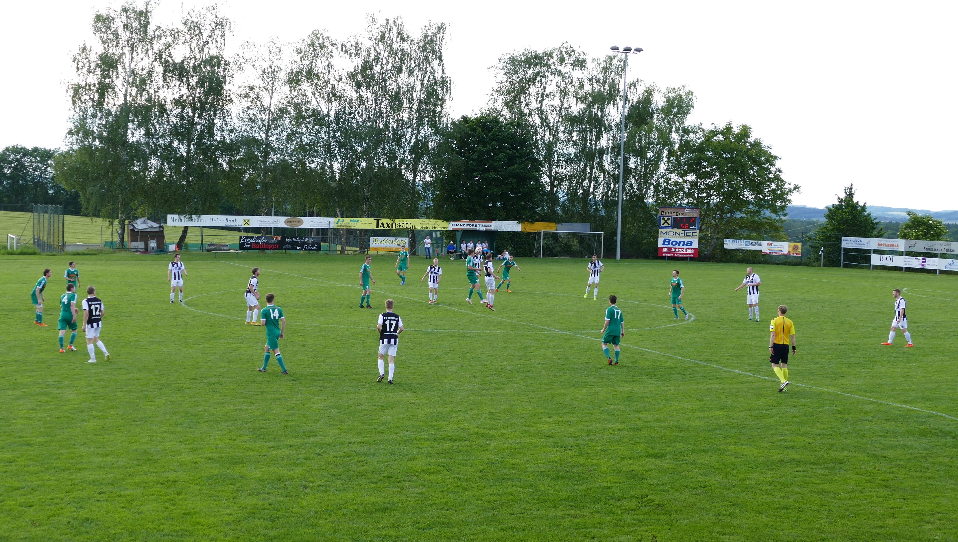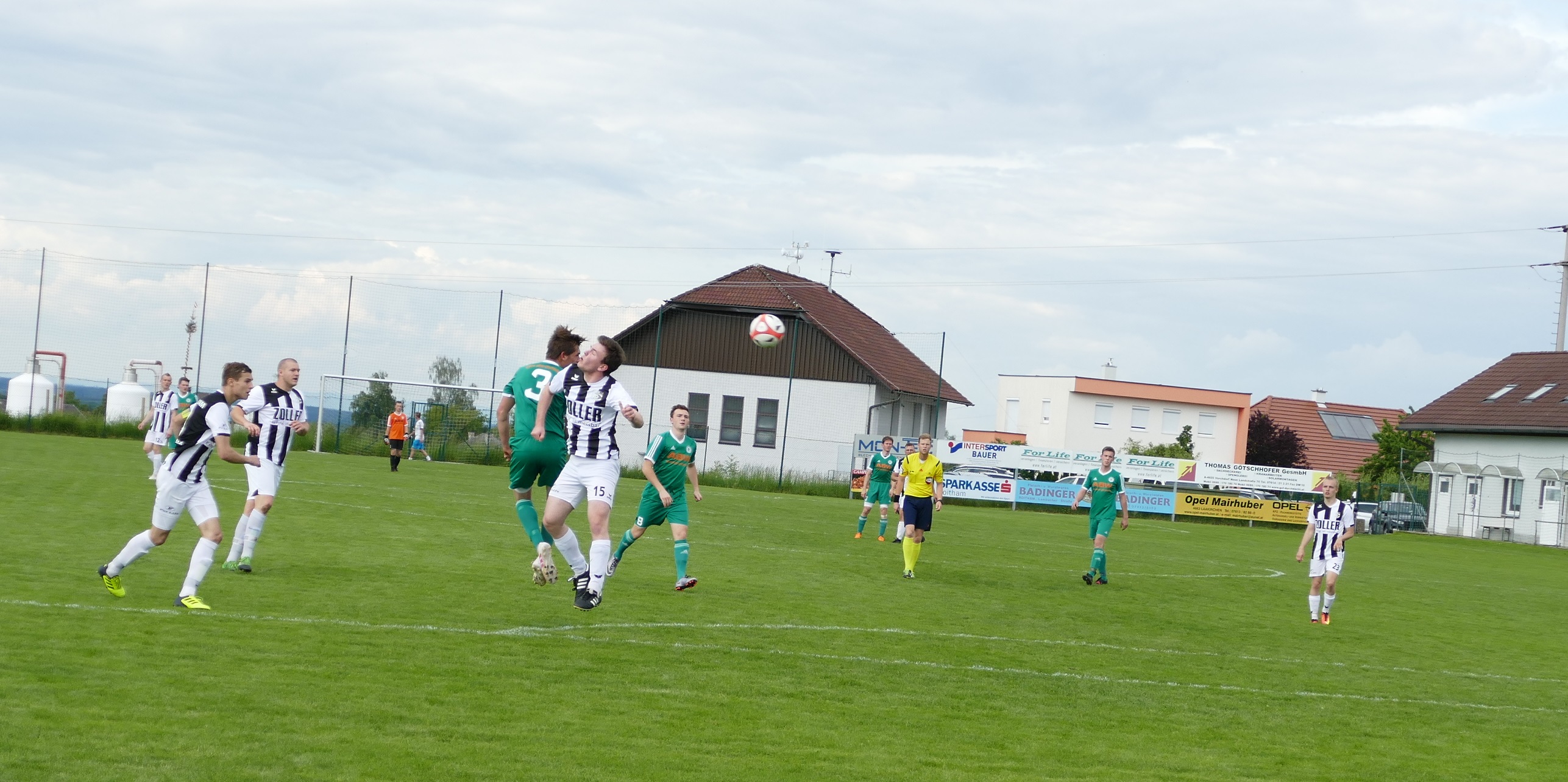 Zunächst sieht es aber nicht danach aus, als könnten die Oberwanger ihre Aufgabe erledigen. Gabor Sagi trifft den Ball aus der Distanz perfekt und hämmert den Ball zum 1:0 unter die Latte. Die Oberwanger liegen bereits nach vier Minuten zurück und brauchen etwas, um den Treffer zu verdauen. Es ist ein schnelles Spiel von Beginn an, aber Torchancen sind vorerst selten. In der 26. Minute bringt Peter Lametschwandtner eine Flanke zur Mitte, aber den Kopfball von Andreas Hofauer kann Roithams Tormann Messics parieren. Oberwang hat mehr Spielanteile, Roitham verlegt sich aufs Kontern und wird dadurch ebenso ab und zu gefährlich. In der 32. Minute versucht es Philip Wöss nach einem Eckball mit einem Weitschuss, der Ball geht knapp links daneben. Zum Ende der ersten Hälfte übernimmt Oberwang wieder das Kommando. Nach 39 Minuten flankt Simon Loindl auf Markus Lametschwandtner, der setzt den Ball per Kopf knapp neben das Tor. Kurz vor der Pause fällt der nicht unverdiente Ausgleich. Julian Soriat zieht aus der Ferne ab, der Ball schlüpft Tormann Messics durch die Finger – 1:1 zur Pause.