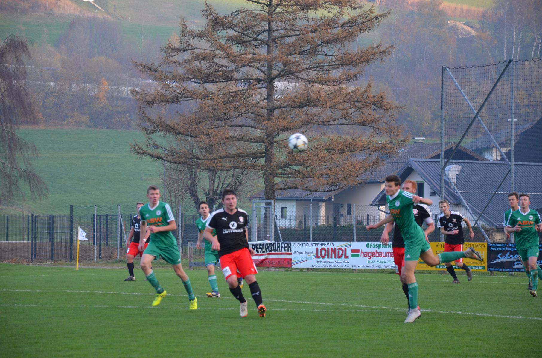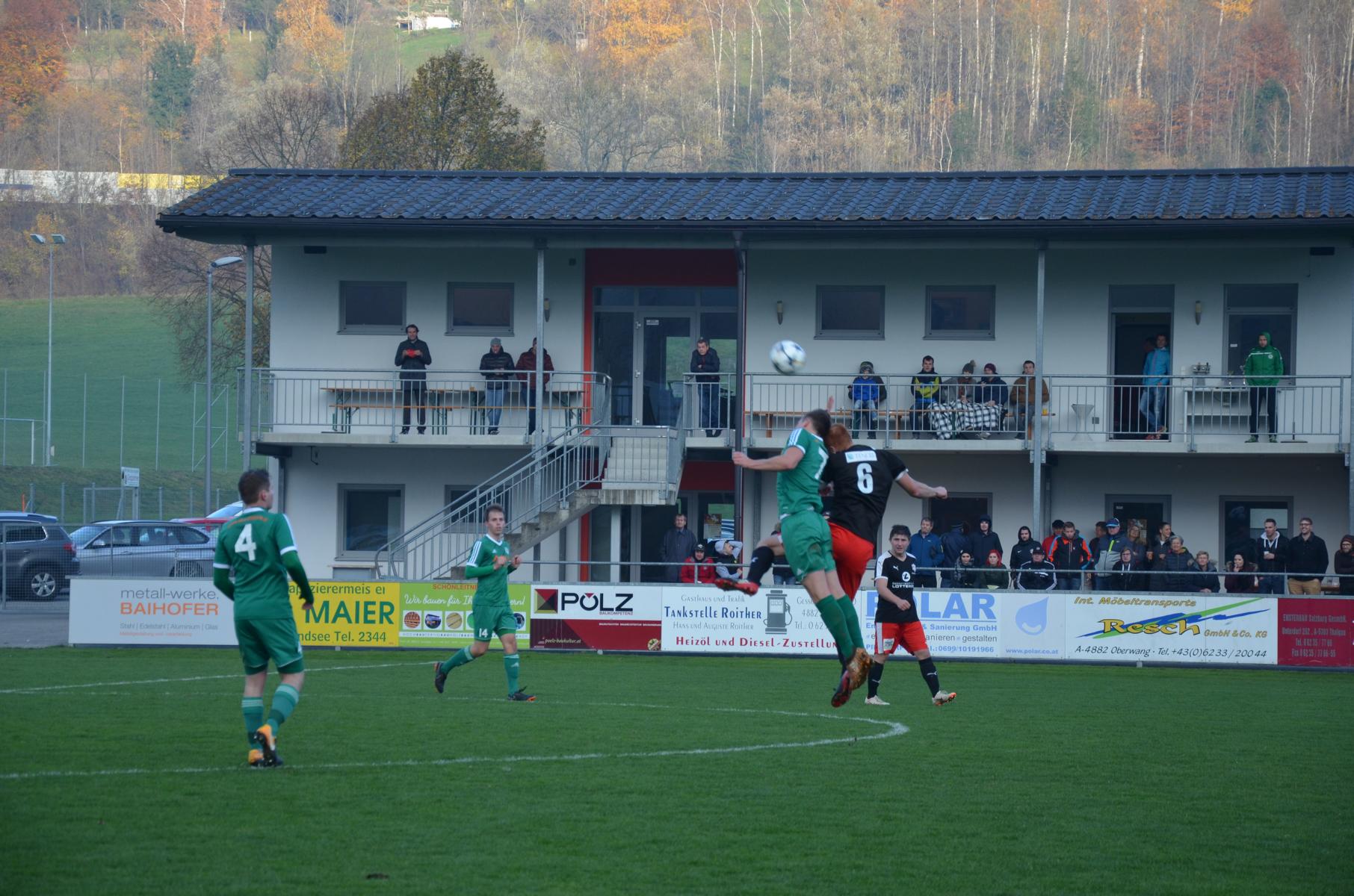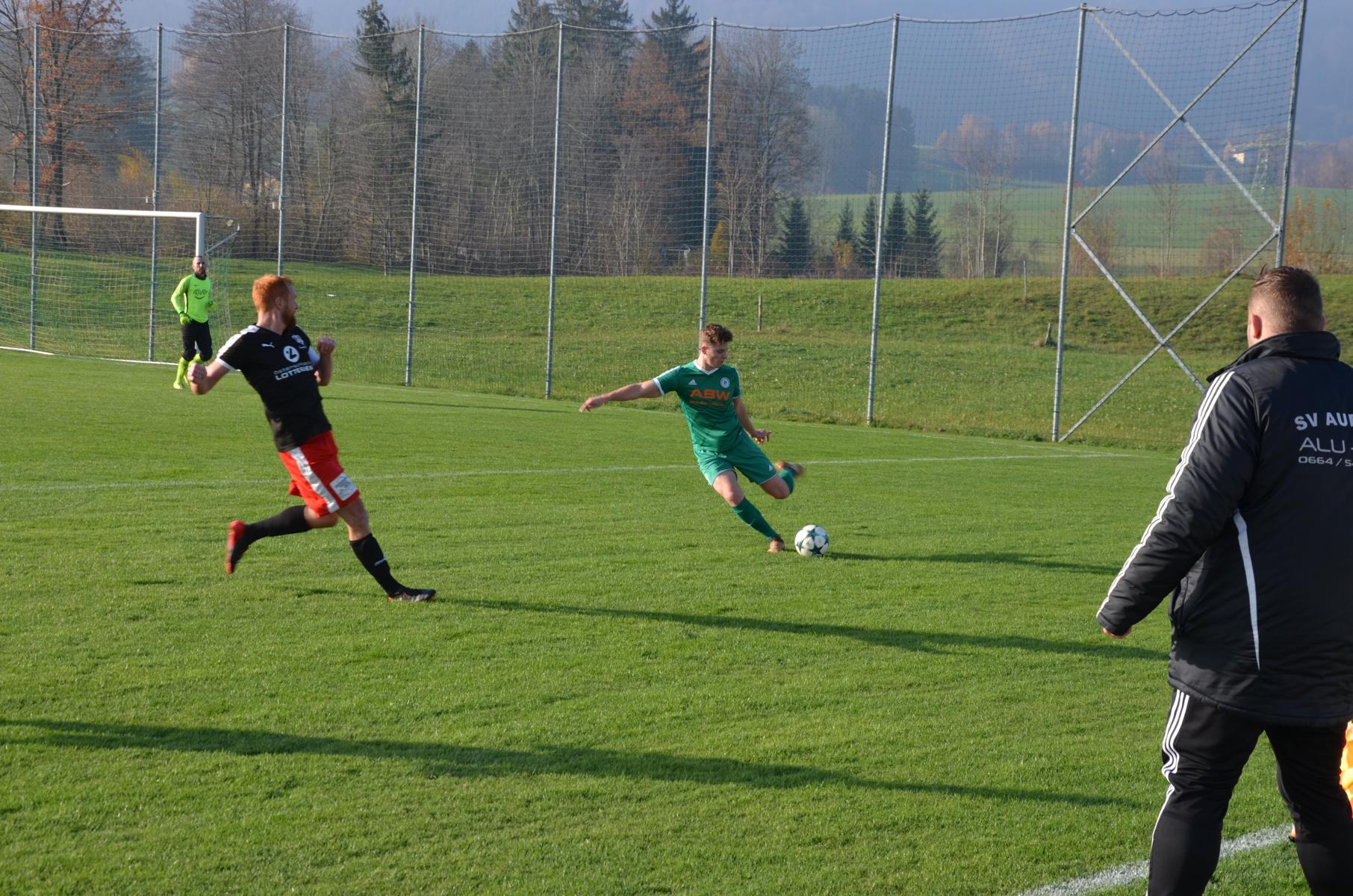 Die erste nennenswerte Torgelegenheit verzeichnen die Gäste aus Aurach. Philipp Huemer kommt aus guter Position zum Schuss, aber Marco Plank hat mit dem zu zentralen Schuss kein Problem. (15.) Besser machen es die Oberwanger drei Minuten später. Markus Soriat schickt Marco Szalay mit einem Steilpass und der bezwingt Aurachs Tormann Manuel Schindler. (Siehe Video) Die Oberwanger legen mit dem 1:0 vor, aber die in dieser Saison nicht immer überzeugenden Auracher sind heute auf Augenhöhe mit dem Gastgeber. In der 28. Minute probiert es erneut Philipp Huemer mit einem Schuss, Marco Plank lenkt ihn noch mit den Fingerspitzen zur Ecke ab. Beim anschließenden Eckball gibt es ein Getümmel im Strafraum, in dem David Übleis zum 1:1 abstaubt. Nach 36 Minuten gibt es einen Freistoß für Oberwang. Peter Lametschwandtner bringt den Ball in den Strafraum, aber Torhüter Schindler lenkt den Schuss von Mathias Schmidt aus kurzer Distanz über die Latte. (Siehe Video) Die Oberwanger verpassen die Führung und so dreht Aurach das Spiel. In der 42. Minute trifft Philipp Huemer aus abseitsverdächtiger Position zum 2:1 und sorgt so für die Gästeführung zur Pause. (Siehe Video)