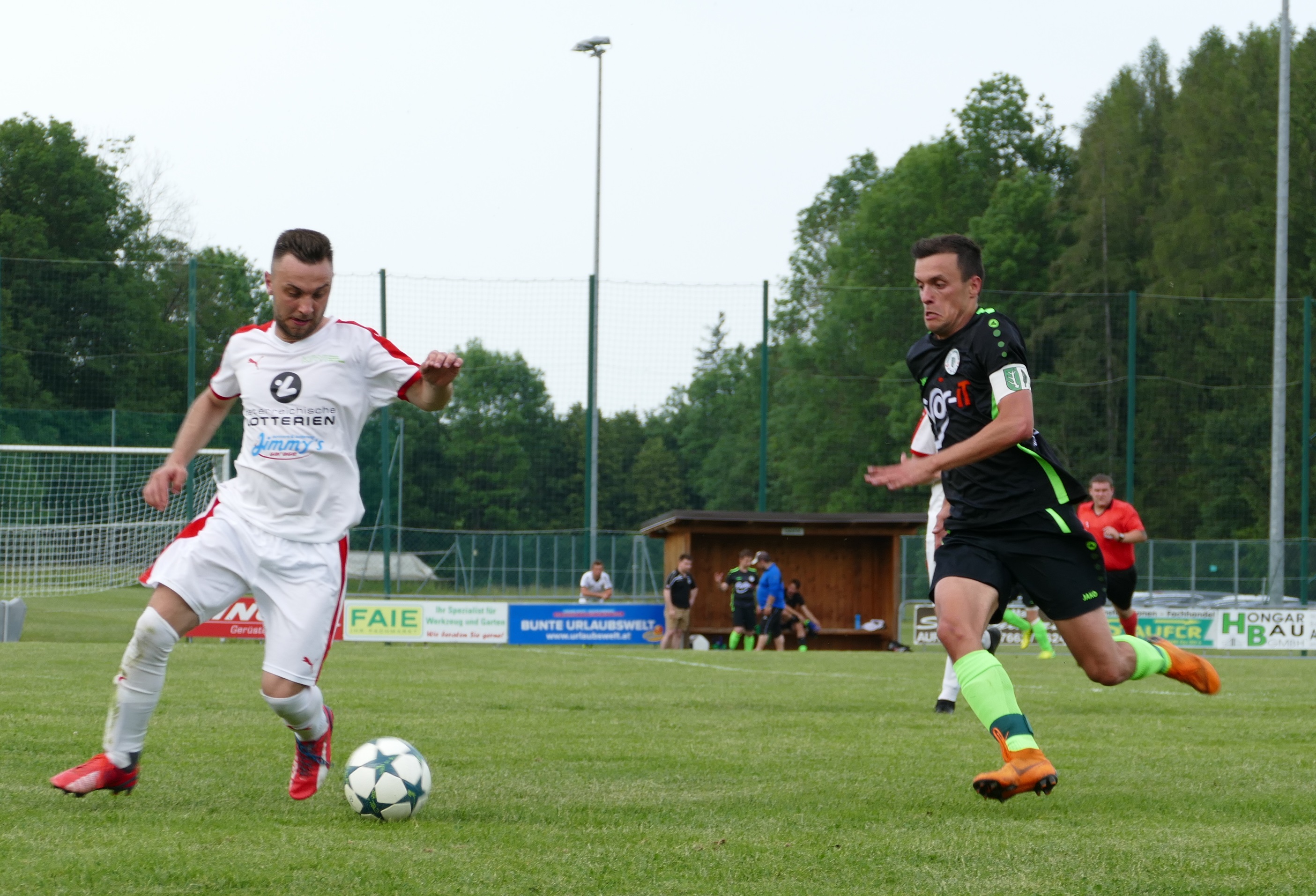 Bei hohen Temperaturen in Aurach sehen die Zuschauer von Beginn an ein zähes Spiel. Beide Mannschaften tun sich schwer, Torchancen herauszuspielen. Auf Seiten von Oberwang hat Robert Speer eine Halbchance, er setzt in der 23. Minute einen Schuss klar neben das Tor. Bei Aurach geht bis zur 43. Minute nach vorne gar nichts, ehe Markus Soriat einen Schuss von Lukas Trieb unglücklich abfälscht und somit Aurach zur überraschenden 1:0 Führung verhilft.