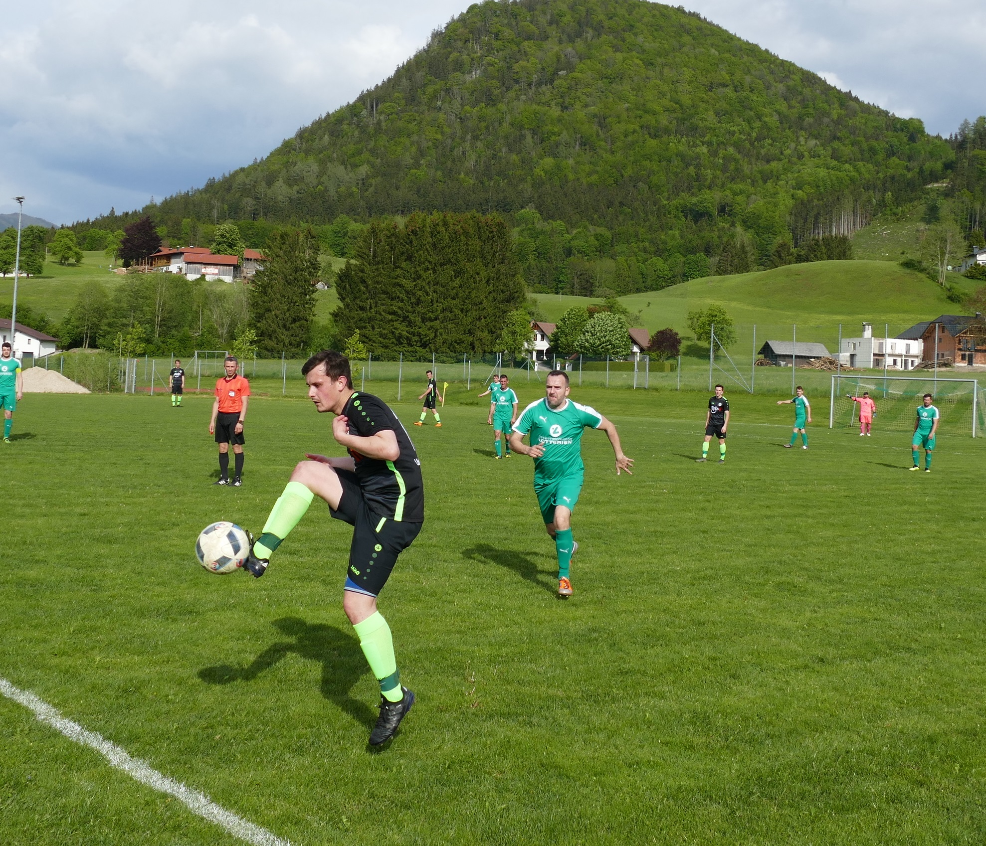 Die Gäste starten gut in die Partie und finden bereits in der 2. Minute die erste gute Tormöglichkeit vor. Beim Kopfball von Robert Speer macht sich Grünau-Tormann Ivkovic lang und kann den Ball über die Latte lenken. Danach haben die Oberwanger ein paar Halbchancen, insgesamt brauchen aber beide Mannschaften etwas, um so richtig auf Betriebstemperatur zu kommen. Grünau kann erstmals in der 21. Minute so etwas wie Torgefahr erzeugen, nach einem Gestocher im Strafraum können die Oberwanger schließlich den Ball klären. Ansonsten spielen aber nur die Gäste. In der 26. Minute nimmt Mathias Schmidt im Strafraum eine halbhohe Flanke volley und hämmert den Ball zum 1:0 unter die Latte. Die Oberwanger können ihre Überlegenheit nun auch in Tore ummünzen und wollen danach gleich nachlegen. Ein weiter Freistoß von Mario Lettner fällt auf die Latte (29.) und ein Schuss aufs lange Eck von Robert Speer wird gerade noch zur Ecke abgefälscht. (39.) Glück für Grünau in dieser Phase, Oberwang zu Ende der ersten Halbzeit gut im Spiel. Kurz vor der Pause gibt es dann doch noch einen Treffer zu bejubeln. Robert Speer legt auf für Peter Lametschwandtner und der erhöht mit seinem ersten Saisontreffer auf 2:0 für Oberwang.