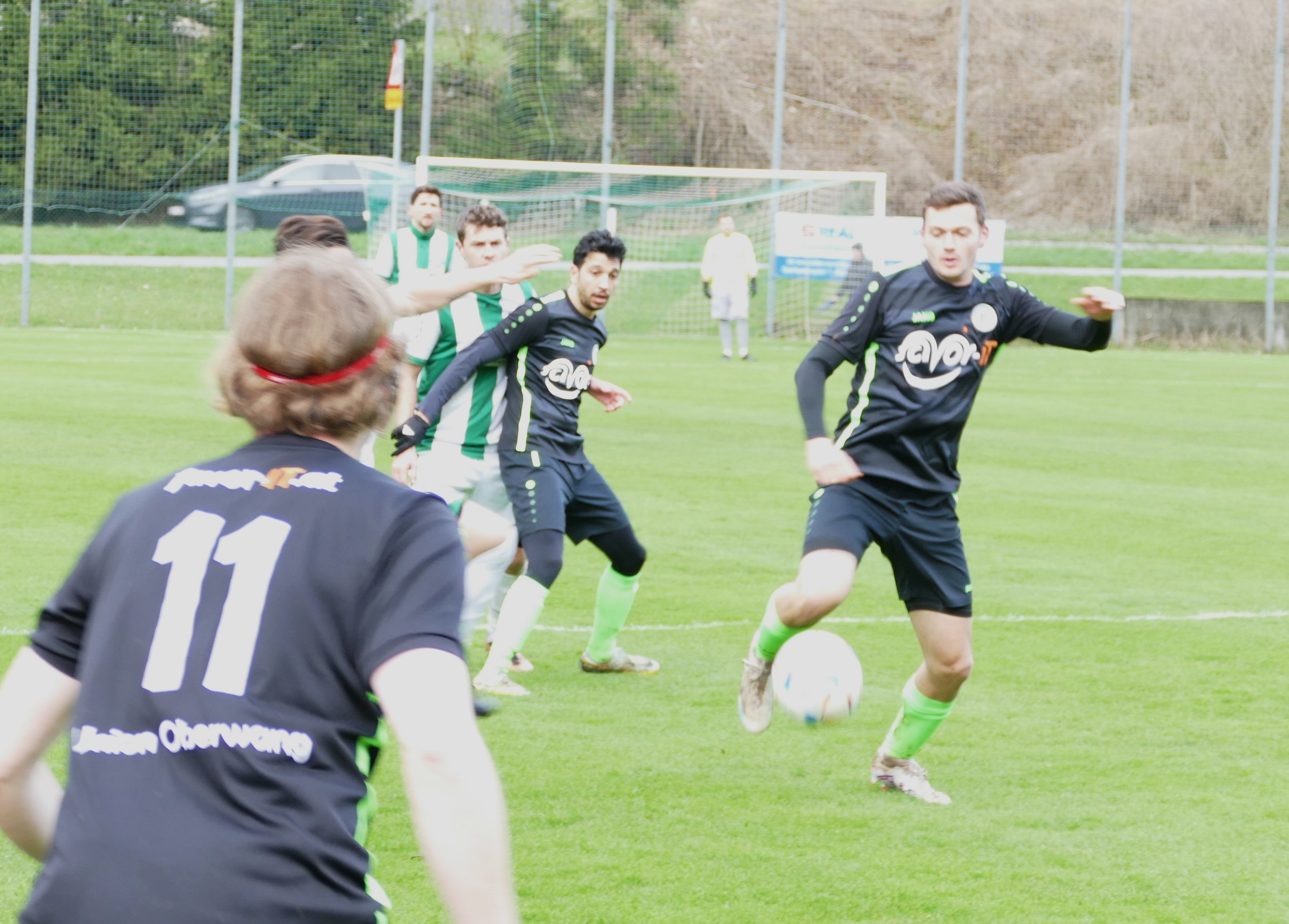 Während das Reservespiel abgesagt werden musste, konnte das Kampfmannschaftsspiel trotz schlechter Wetterprognose durchgeführt werden. Die Gäste aus Oberwang sind zu Beginn die bessere Mannschaft. In der 9. Minute gibt es eine Dreifachchance nach einem Eckball, aber letztendlich kann die Verteidigung von St. Wolfgang inklusive Tormann Mathias Hörack klären. Dann dauert es etwas, bis es wieder einmal eine gefährliche Torannäherung gibt. Nach 24 Minuten trifft Simon Loindl mit seinem Abschluss die Stange, aber Mathias Schmidt nimmt den Abpraller volley und hämmert ihn zum 1:0 unter die Latte. Mit der Führung im Rücken spielen die Oberwanger weiter nach vorne. In der 34. Minute kommt Christoph König zum Abschluss, setzt den Ball aber links daneben. Bereits vor dem Halbzeitpfiff muss Oberwangs Trainer Marcus Esser die ersten Wechsel vornehmen, für die angeschlagenen Adel Khalili und Jonas Wonnebauer kommen Tim Lametschwandtner und Markus Höllnsteiner. Kurz vor der Pause ist es noch einmal Christoph König, der bei einer Flanke zwar vor dem gegnerischen Tormann an den Ball kommt, diesen aber nicht auf das Tor bringt. (43.) St. Wolfgang kommt vor der Pause zu keiner einzigen Großchance, somit geht es mit der 1:0 Führung für Oberwang in die Kabine.