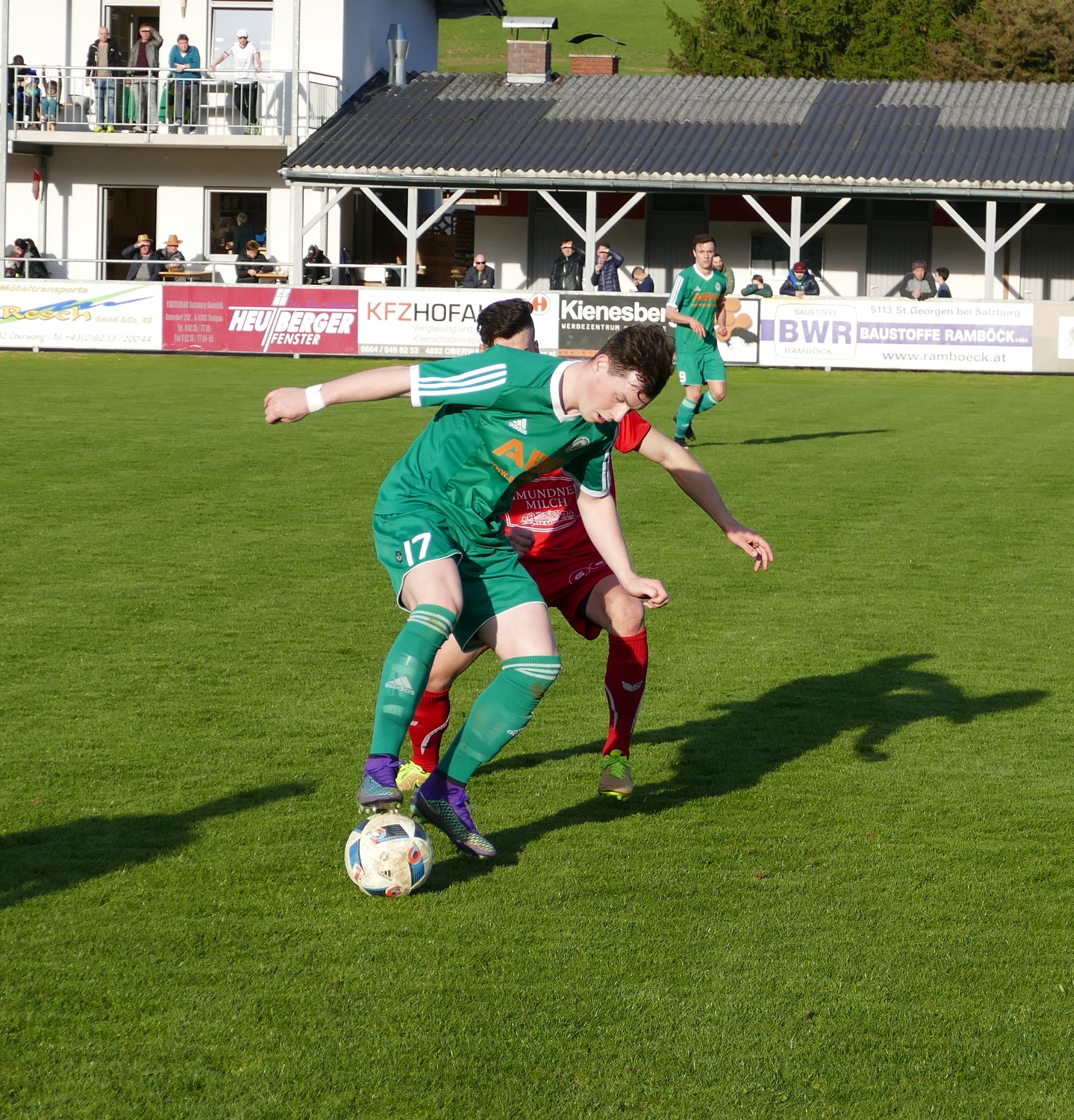 Zur Pause steht es also noch 0:0, aber bis zur 75. Minute wie beim Österreich-Match wollen die Oberwanger nicht auf ihren ersten Treffer warten. Wir schreiben die 46. Minute, wieder einmal führt ein Angriff der Heimmannschaft über Markus Lametschwandtner. Er versucht mit seiner Flanke einen Mitspieler im Strafraum zu finden, doch die Flanke reißt ab und zum zweiten Mal geht der Ball an die Latte. Doppeltes Pech für die Oberwanger, doch sie lassen nicht locker. In der 47. Minute holt sich Stefan Wienerroither das Leder, richtet sich den Ball auf halblinker Position her und trifft mit einem schönen Schuss ins lange Eck – das hochverdiente 1:0 für Oberwang. Trotz des Rückstands bleiben die Gmundner den Rest der Partie mehr oder weniger harmlos, ein ruhiger Tag für Oberwangs Torhüter Christoph Soriat. Oberwang verwaltet den Vorsprung geschickt gegen die Gmundner, die in der Schlussphase noch mit ein paar härteren Fouls auffallen, aber insgesamt heute keine Chance gegen den Tabellenführer hatten.