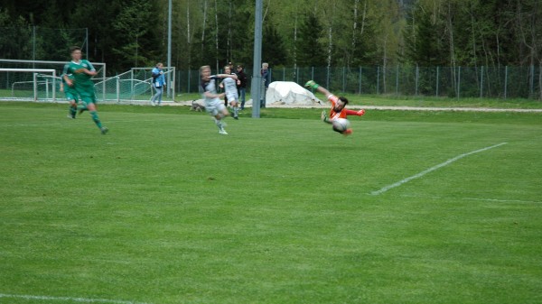 Bei regnerischen und etwas windigen Verhältnissen tun sich beide Mannschaften schwer, um ins Spiel zu kommen. In der 16. Minute hat Ebensee die erste Möglichkeit, ein Freistoß aus guter Position. Alexander Eisl überrascht mit einem gefinkelten Freistoß Oberwangs Tormann Alexander Breitenthaler und bringt Ebensee mit 1:0 in Führung. Der Torschütze ist es auch, der die nächste Großchance für die Hausherren hat, doch diesmal kann Breitenthaler parieren. Die Oberwanger brauchen eine halbe Stunde, um erstmals beim Ebenseer Tor anzuklopfen. Emanuel Lacher erobert von der Ebenseer Verteidigung den Ball, doch sein Schuss streicht über das Kreuzeck. Kurz vor der Pause hat Oberwang die größte Chance zum Ausgleich. Josef Heisler tankt sich bis in den Strafraum der Ebenseer, seinen Schuss kann Tormann Kerschbaum nur nach vorne prallen lassen, doch der Nachschuss von Robert Speer wird im letzten Moment abgeblockt. Ebensee rettet die knappe Führung in die Pause.