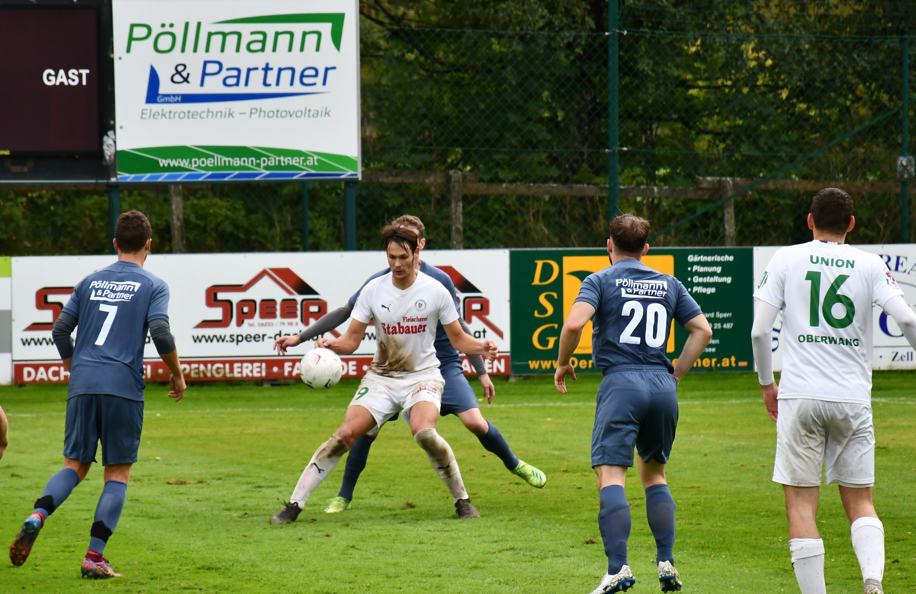 Die Gäste aus Oberwang haben die erste Chance im Spiel. Niklas Sperr wird im Strafraum unfreiwillig von Zell am Moos bedient, scheitert mit seinem Schuss aber an Zell-Keeper Robert Niederbruckner. (9.) In der 13. Minute hat Zell am Moos die Topchance auf die Führung, aber Lukas Gierbl schießt nach einer Ecke aus guter Position über das Tor. Danach übernehmen aber wieder die Gäste das Kommando. Josef Heisler setzt nach einem Eckball das Leder per Kopf neben das Tor. (16.) Nur eine Minute später hat Lukas Gierbl Glück, dass er nach einem Querpass den Ball nicht in das eigene Tor befördert, da sein Schlussmann gerade noch eingreifen kann. Es ist die beste Phase der Oberwanger in der Partie, sie drücken auf den Führungstreffer. In der 21. Minute läuft Simon Loindl alleine auf den Torwart zu und kann diesen auch ausspielen, aber danach kann die Verteidigung noch retten. In den restlichen 25 Minuten in Hälfte Eins passiert anschließend nicht mehr so viel, es geht torlos in die Kabine.