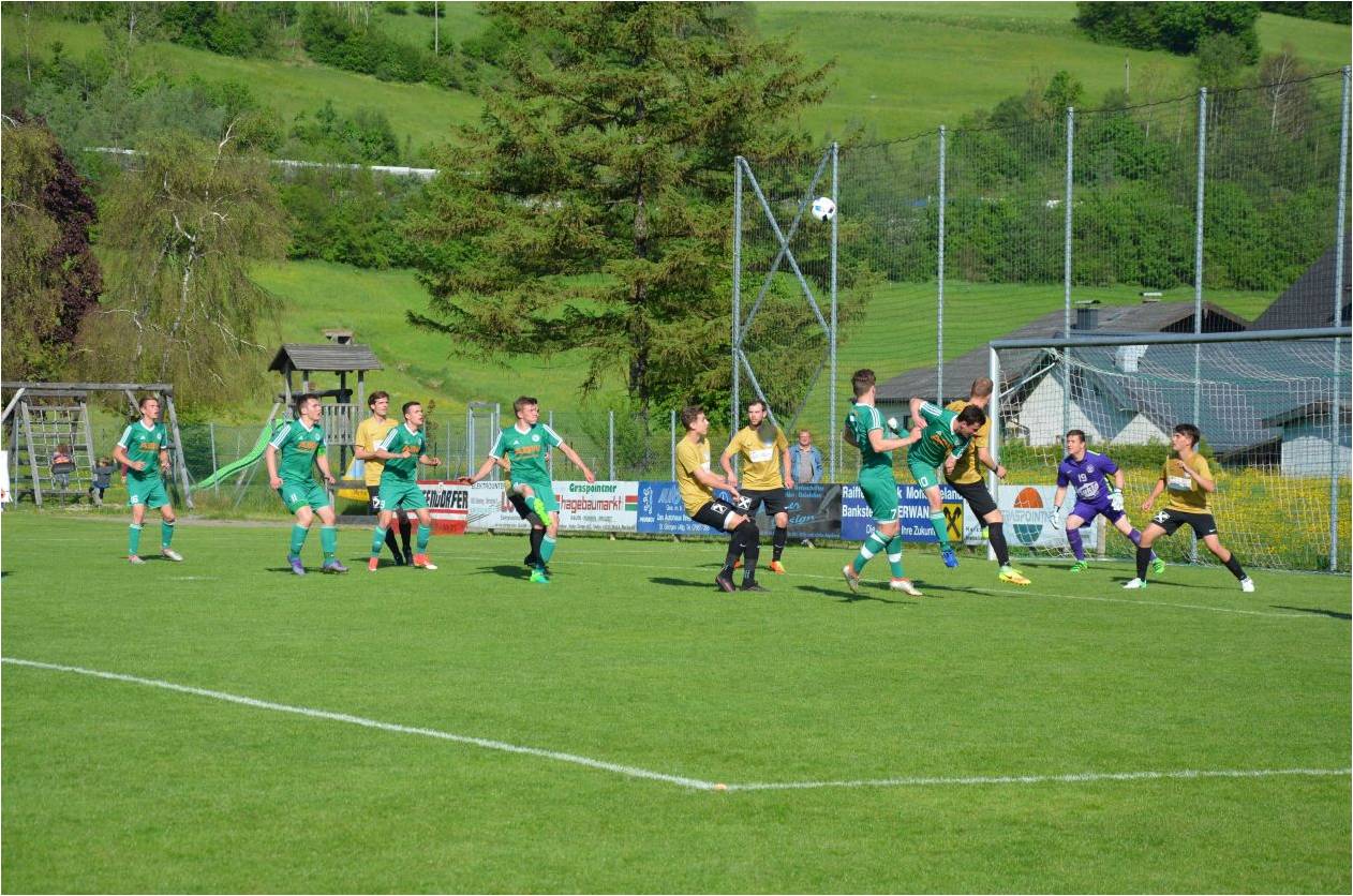 Der TSV Timelkam war von der ersten Minute an aktiver als die heimischen Kicker und so gingen sie bereits in Minute zwei durch Stefan Trauner mit einem unhaltbaren abgefälschten Schuss in Führung. Oberwang versuchte das schnelle Gegentor wegzustecken und selbst aktiv zu werden, nach zehn Minuten erzielte Matthias Schmidt den vermeintlichen Ausgleich, dieser wurde aber zu Recht wegen Abseits aberkannt. In der 12. Minute sollte dann der nächste Gegentreffer folgen, nach einem Freistoß für Oberwang, folgte der Konter der Gäste, den Furkan Eryilmaz abschloss. Philipp Juhasz erzielte in der 18. Minute mit einem Volleyschuss aus gut 30 Metern den 3. Treffer der Gäste. Die Oberwanger steckten aber nach den drei Tore Rückstand nicht auf, sondern versuchten sich selbst gute Chancen zu erspielen. Bereits in Minute 22 sollten die Oberwanger das erste Mal jubeln dürfen, nach einer hohen Hereingabe von Matthias Schmidt sprang der Ball an die Querlatte, diesen übernahm Florian Trinker mit einem Fallrückzieher zum Anschlusstreffer. Es sollte nicht der letzte Treffer sein in Halbzeit eins. In der 43. Minute wurde Robert Speer mit einem weiten Ball auf der linken Seite geschickt, den er sich gekonnt mitnahm und zu Matthias Schmidt passte der auf 2:3 verkürzte.