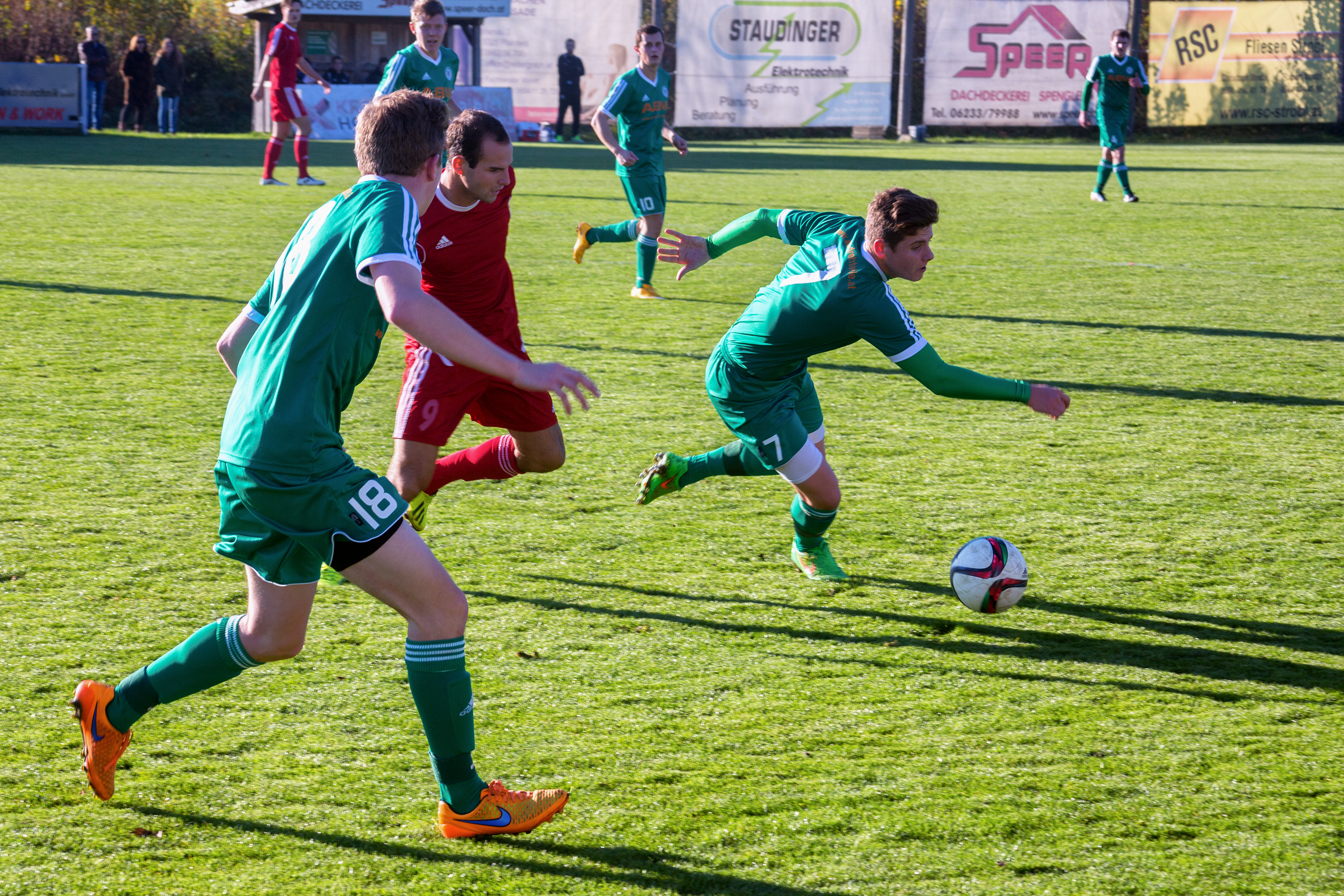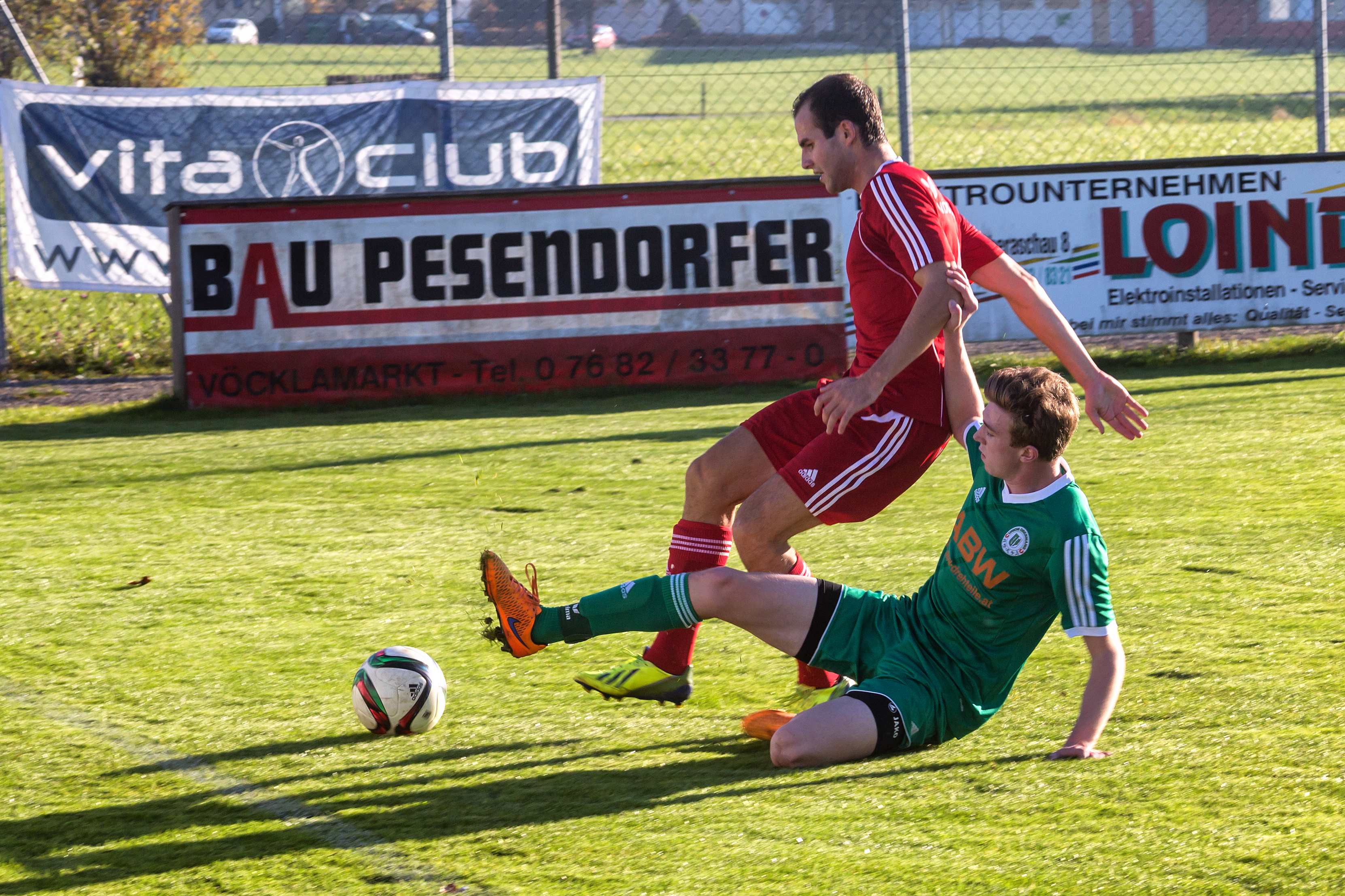 Oberwang muss nach drei Niederlagen in Folge unbedingt wieder punkten und geht energisch in die Partie. In der 15. Minute schlagen die Oberwanger einen hohen Ball nach vorne, die Verteidiger von Kammer sind sich mit Torwart Knaze uneinig und so kann Rene Putz dazwischen gehen und zum 1:0 abstauben. Was einmal geht, kann ja nochmal gehen denken sich die Oberwanger drei Minuten später. Wieder wird ein hoher Ball in den Strafraum gespielt, wieder sieht die Kammerer Hintermannschaft gar nicht gut aus. Emanuel Lacher muss nach einem Gestocher nur noch zum 2:0 einschieben. Soweit so gut, doch Kammer gibt sich nicht so einfach geschlagen. Schiedsrichter Wagner gibt in der 26. Minute einen fragwürdigen Freistoß für Kammer. David Feusthuber flankt zur Mitte und Markus Krocker trifft per Kopf zum 2:1. Nur eine Minute später steht wieder der Schiedsrichter im Mittelpunkt. Er übersieht ein Foul von Kammer im Mittelfeld und lässt weiterspielen. Mario Lettner muss kurz vorm Strafraum die Notbremse ziehen und sieht für sein Foul die rote Karte. Jedoch bleibt Oberwang auch in Unterzahl gefährlich. Die Heimmannschaft bekommt einen Freistoß in zentraler Position zugesprochen. Markus Lametschwandtner richtet sich den Ball her und hämmert ihn anschließend unhaltbar für Tormann Knaze ins rechte Eck. (33.) Mit dem 3:1 ist der Zwei-Tore Vorsprung wieder hergestellt. In der 45. Minute bekommt Kammer erneut einen strittigen Freistoß zugesprochen. Zum Leidwesen der Oberwanger mündet auch diese Standardsituation in ein Gegentor. Der Freistoß wird flach geschossen, der Ball geht durch die Abwehr, Tormann Breitenthaler kann nur abprallen lassen und ermöglicht so Jakob Krocker den 3:2 Anschlusstreffer vor der Pause.