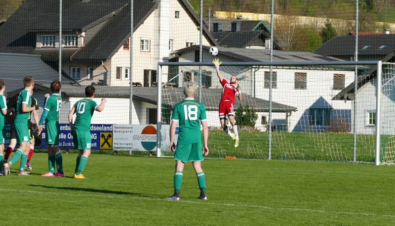 Es dauert nicht lange, da macht die Nr. 5 von Neukirchen auch schon auf sich aufmerksam. Marco Plank steht etwas weit vor seinem Tor, Zsök schießt aus der Distanz, doch Oberwangs Neo-Torhüter kann beim Zurücklaufen parieren. Es entwickelt sich ein schnelles und unterhaltsames Spiel. Markus Lametschwandtner hat auf dem rechten Flügel den Blick für Florian Trinker, bringt eine perfekte Flanke, doch der Volleyschuss von Trinker geht knapp am Tor vorbei. In der 25. Minute erneut ein Angriff über Markus Lametschwandtner, seinen Querpass verwertet Andreas Hofauer zum vermeintlichen 1:0 für Oberwang, doch der Treffer wird wegen Abseits aberkannt. Bei Oberwang geht fast alles über die rechte Seite, so auch eine Minute später. Der agile Markus Lametschwandtner zieht von rechts zur Mitte, aber den Schuss aufs kurze Eck pariert Torwart Bezdek. Nach einer halben Stunde probiert es Bernhard Asen mit einem Weitschuss, auch hier fehlt nicht allzu viel zum Torjubel. Nach 31 Minuten wieder Markus Lametschwandtner mit einem Abschluss, doch sein Schuss aus guter Position fällt zu schwach aus und ist leichte Beute für den Torwart. Neukirchen steht in der ersten Halbzeit unter Druck, doch die Oberwanger machen zu wenig aus ihren vielen Vorstößen und belohnen sich trotz vieler guter Spielzüge nicht.