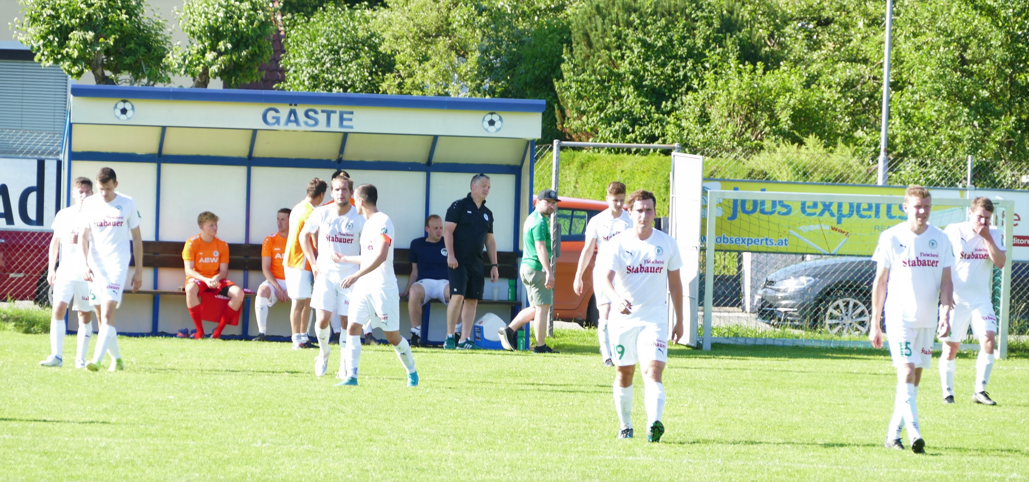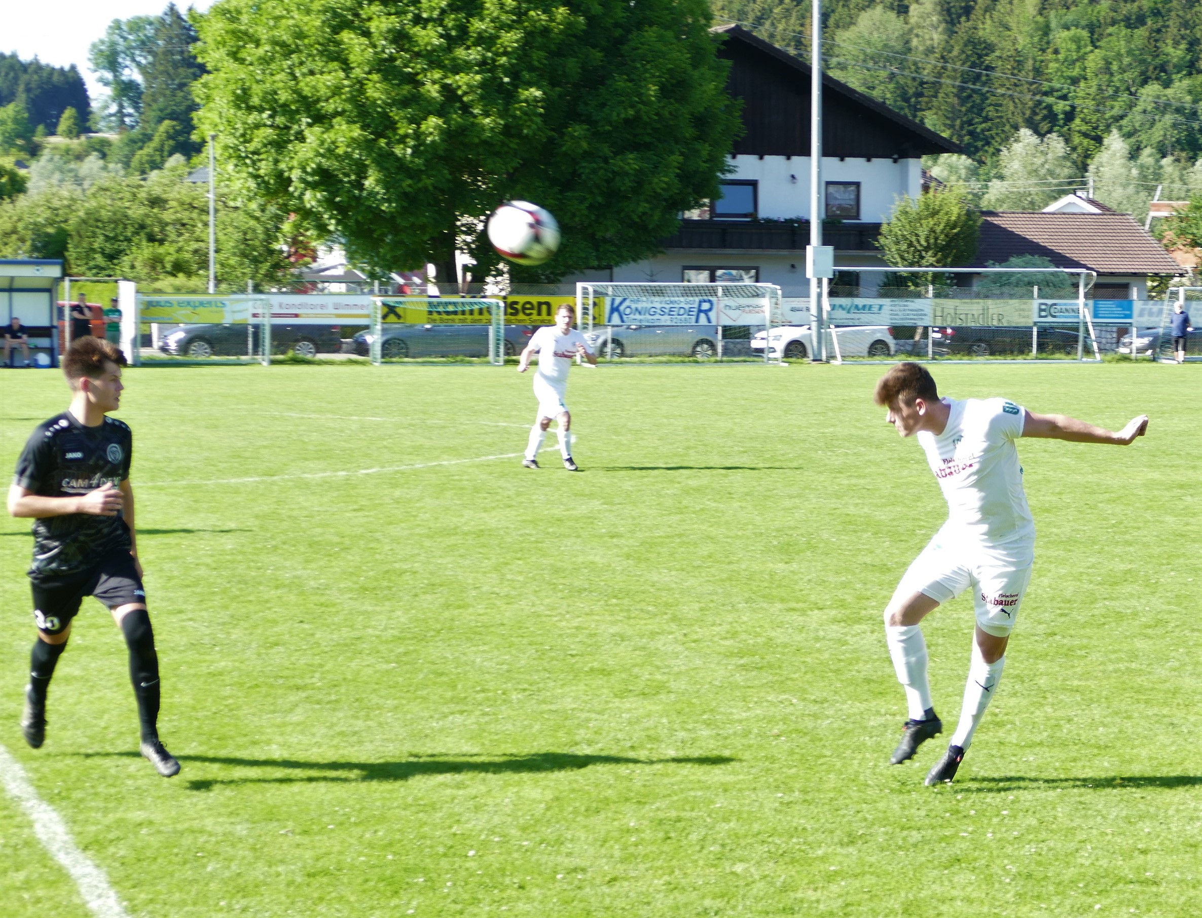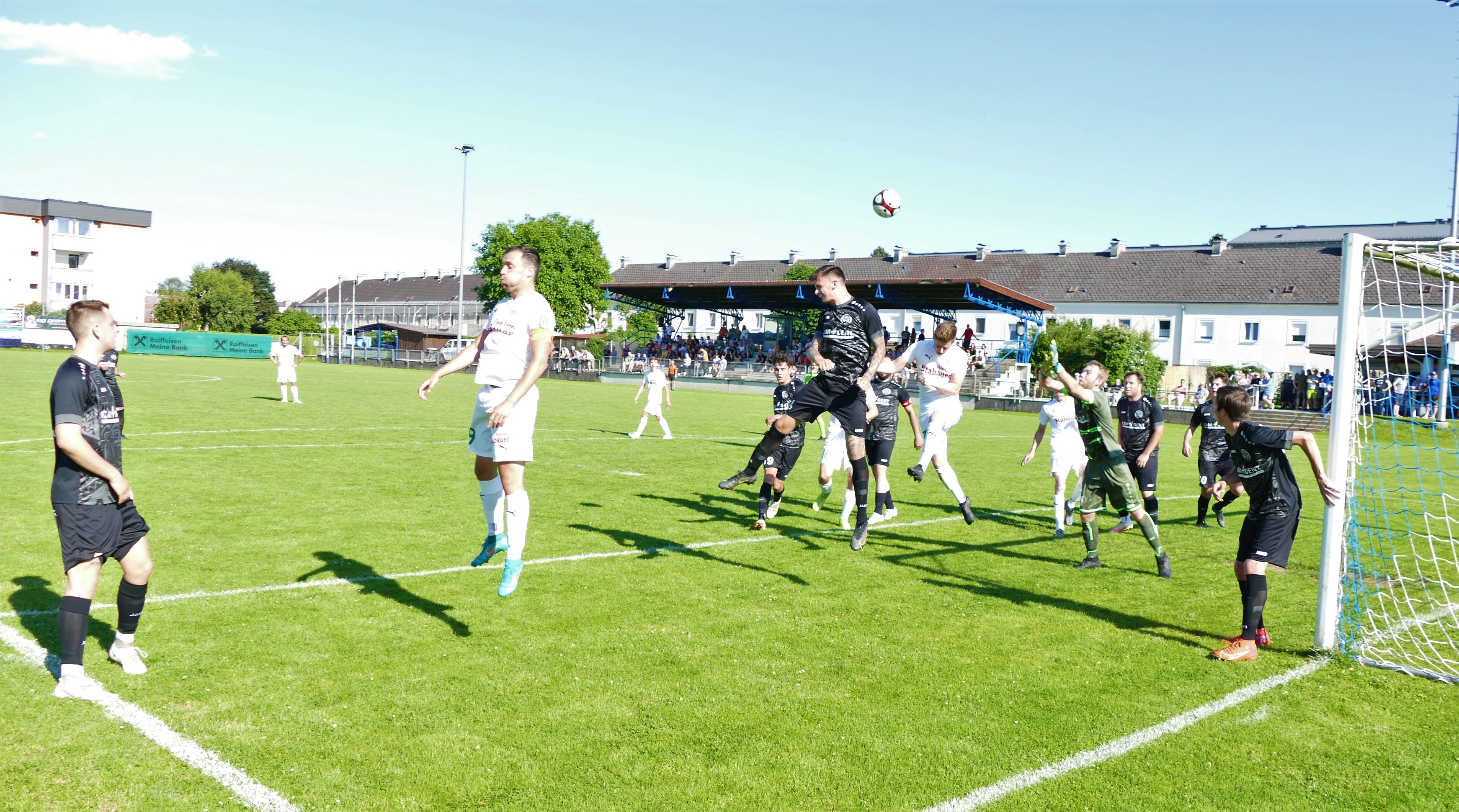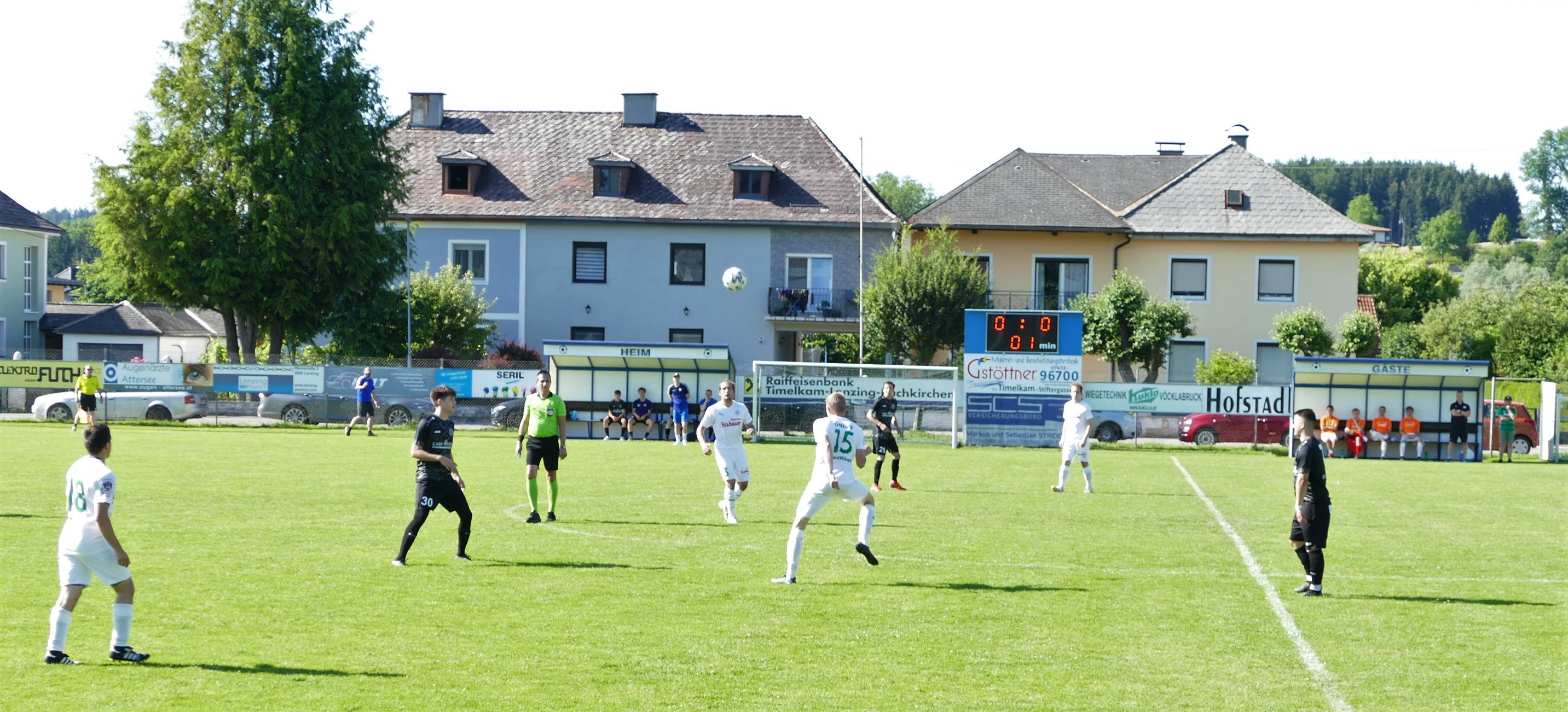 Gerade einmal fünf Minuten sind gespielt, da gibt es das erste Erfolgserlebnis für die Oberwanger. Sandro Sperr steht bei einem Querpass goldrichtig und verwertet zum 1:0. Bei den Oberwangern läuft alles nach Plan, doch leider gehen auch die Konkurrenten um den Aufstieg bei den Parallelpartien früh in Führung. Nur eine Minute nach dem Oberwanger Treffer gibt es die erste Großchance für Timelkam, aber Suljo Curic findet nach einem Solo seinen Meister in Oberwang-Keeper David Röthleitner. Wiederum auf der Gegenseite gibt es wenig später eine strittige Situation, Sandro Sperr geht im Strafraum zu Boden, der Elfmeterpfiff bleibt aber aus. (8.) Die Gäste bleiben weiterhin spielbestimmend. In der 15. Minute gibt es eine Doppelchance, zuerst scheitert Sandro Sperr an Tormann Bastian Sperr und im Anschluss wird der Schuss von Mathias Schmidt noch von einem Verteidiger geblockt. Wieder nur kurze Zeit später kommt Mathias Schmidt aus guter Position zum Abschluss, aber er bringt zu wenig Druck auf den Ball, wieder eine leichte Beute für den Tormann. (16.) Es geht weiter hin und her. Auf Seiten der Timelkamer lässt Vakkas Abaci einen strammen Schuss aufs Oberwanger Tor los, aber Julian Soriat kann den Schuss im Strafraum abblocken. (17.) In der 22. Minute gelingt aber den Hausherren schließlich der erste Treffer. Suljo Curic tankt sich durch die Verteidigung, David Röthleitner kann seinen Schuss zunächst noch großartig parieren, aber beim Nachschuss von Patrick Jobst ist er machtlos – 1:1. Jetzt ist der Timelkam TSV am Drücker und will gleich den nächsten Treffer nachlegen. Ein Schuss von Bernhard Stiegler geht zunächst noch ein Tor vorbei (27.), aber in der 33. Minute geht die Heimmannschaft mit 2:1 in Führung. Wieder ist es eine Einzelaktion von Suljo Curic, die dieses Mal von Erfolg gekrönt ist. Die Oberwanger müssen sich jetzt wieder aufraffen, damit sie zumindest noch das eigene Spiel gewinnen können. Simon Loindl hat vor der Pause noch eine Torchance, nach einem Fehlpass der Timelkamer setzt er den Ball aber neben das Tor. (37.) Zur Halbzeit sind die Oberwanger somit 1:2 im Rückstand.