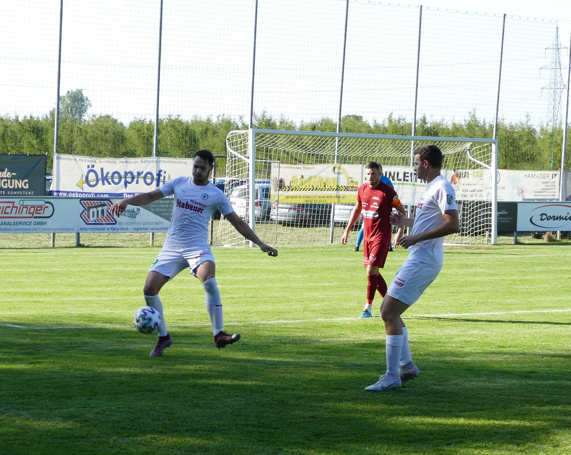 Das Spiel ist von Anfang an wild und umkämpft, Oberwang ist gut in der Partie. In der 11. Minute bringt Simon Loindl einen Querpass zur Mitte, den Marco Szalay im Zentrum knapp verpasst. Von Rüstorf ist in der Anfangsphase noch wenig zu sehen, bis sie plötzlich von den Oberwangern eingeladen werden. David Hamader fängt einen zu kurz geratenen Rückpass ab und wird auf dem Weg zum Tor von Oberwangs Tormann David Röthleitner gelegt – folgerichtig sieht dieser die Rote Karte wegen einer Notbremse. Die Oberwanger sind somit ab der 19. Minute in Unterzahl, nicht die besten Aussichten gegen einen starken Gegner wie Rüstorf. Ersatztormann Christoph Soriat kommt in die Partie und kann sich wenig später gleich das erste Mal auszeichnen. Er pariert glänzend den Schuss von David Hamader, der in der 23. Minute frei zum Abschluss gekommen ist. Auf der Gegenseite kommt Marco Szalay im Anschluss an einen Freistoß zum Schuss, trifft aber nur das Außennetz. (24.) Man merkt dem Spiel nicht an, dass hier 11 Mann gegen 10 Mann spielen, die Gäste verkaufen sich sehr gut. Beinahe hätten sie sogar noch vor der Pause die Führung erzielt, aber Simon Loindl scheitert alleine vorm Tor an Rüstorfs Keeper Nicolas Spiessberger. (34.) Bis zur Pause passiert dann nichts mehr, es geht torlos in die Kabine.