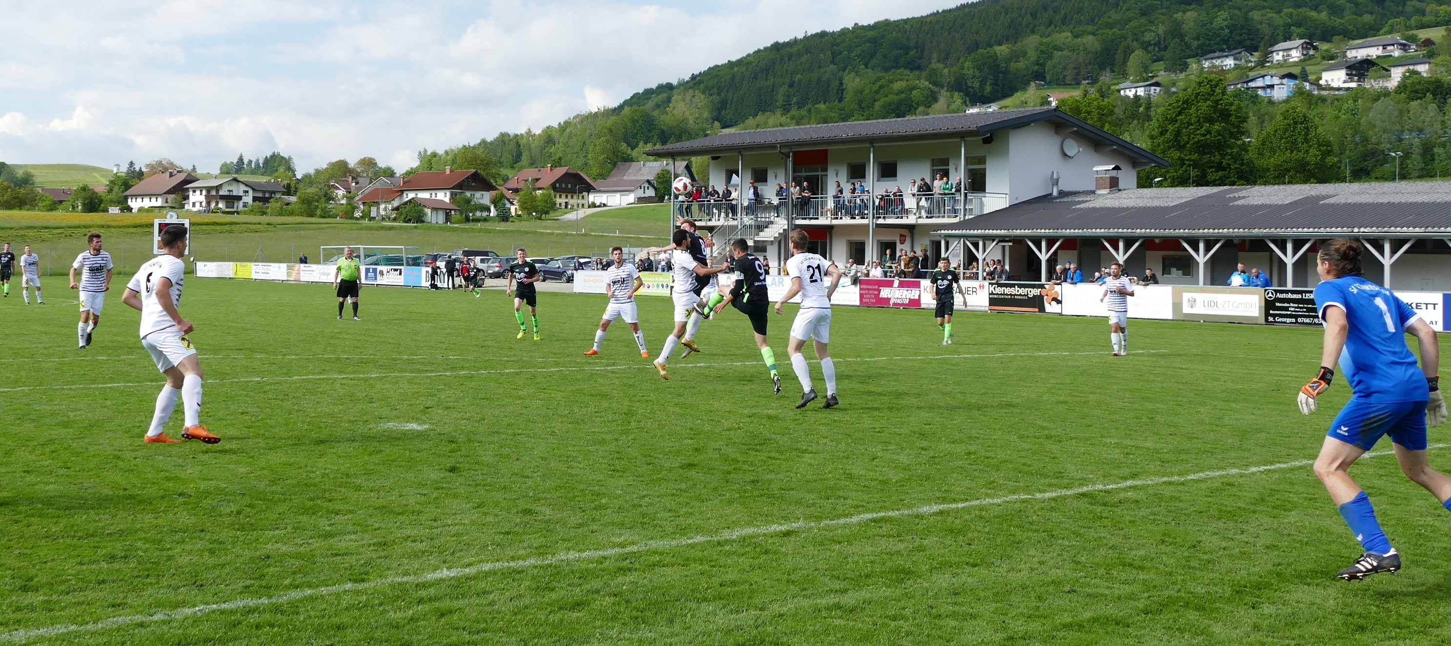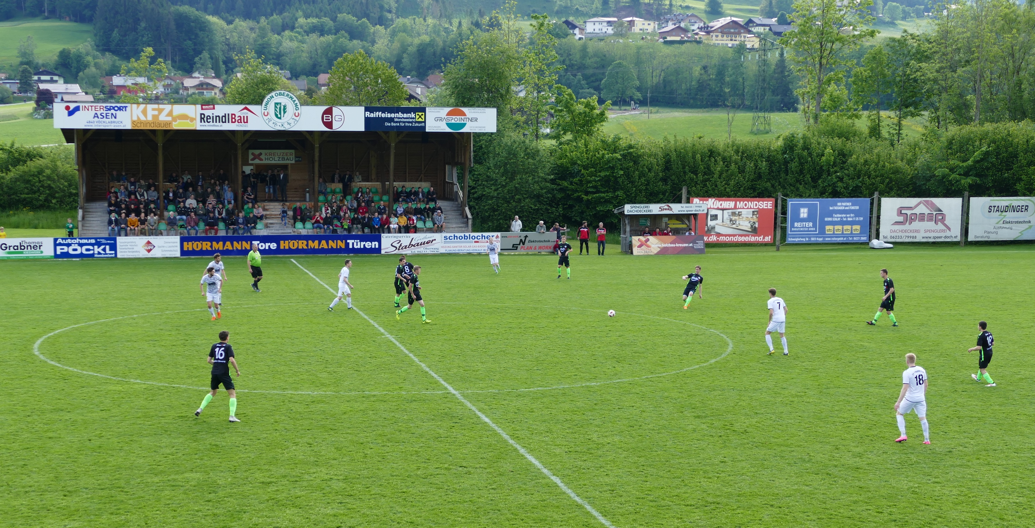 Zu Beginn merkt man beiden Mannschaften an, dass es heute um viel geht. Das Spiel ist flott, aber in der Defensive lässt keiner etwas zu. In der 18. Minute bringt Scharnstein das erste Mal eine Flanke in den Oberwanger Strafraum und prompt köpft Tobias Götzenhofer zum 1:0 ein. Die Gäste zeigen sich eiskalt und gehen mit der ersten Chance in Führung. Oberwang hat zwar mehr vom Spiel, mehr wie ein paar Halbchancen schaut zunächst aber nicht heraus. Zu allem Überfluss muss Mario Lettner bereits in der 31. Minute angeschlagen hinaus. Die Aufgabe wird nicht leichter für die Oberwanger, die aber zum Ende der ersten Hälfte noch einmal Gas geben. In der 39. Minute ist Robert Speer einmal frei durch, scheitert aber am Scharnsteiner Tormann Lachmair. Nur eine Minute später ist Lachmair auch beim Schuss von Marco Szalay auf dem Posten, den Nachschuss setzt Mathias Schmidt übers leere Tor. Oberwang ist in dieser Phase am Drücker und knapp am Ausgleich dran, aber dann zeigt Scharnstein, warum sie auf Platz Eins in der Tabelle liegen. In die Oberwanger Drangphase hinein erzielen sie im Konter in Person von Fabian Drack das 2:0. (43.) Kurze Zeit später ist Pause, alles läuft für die Gäste.
