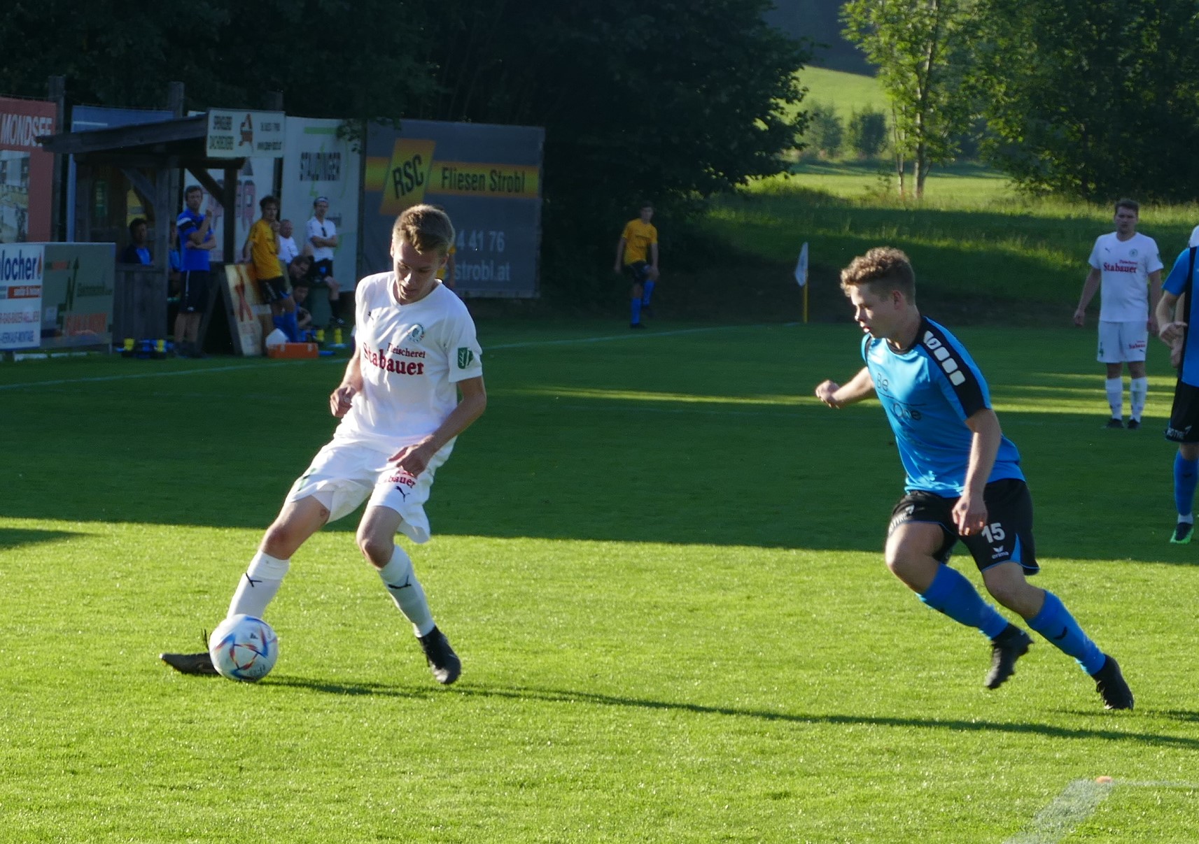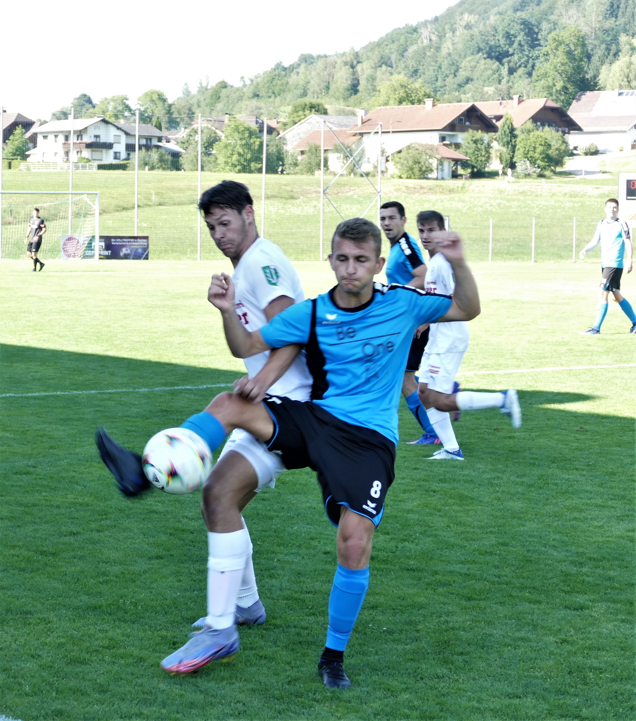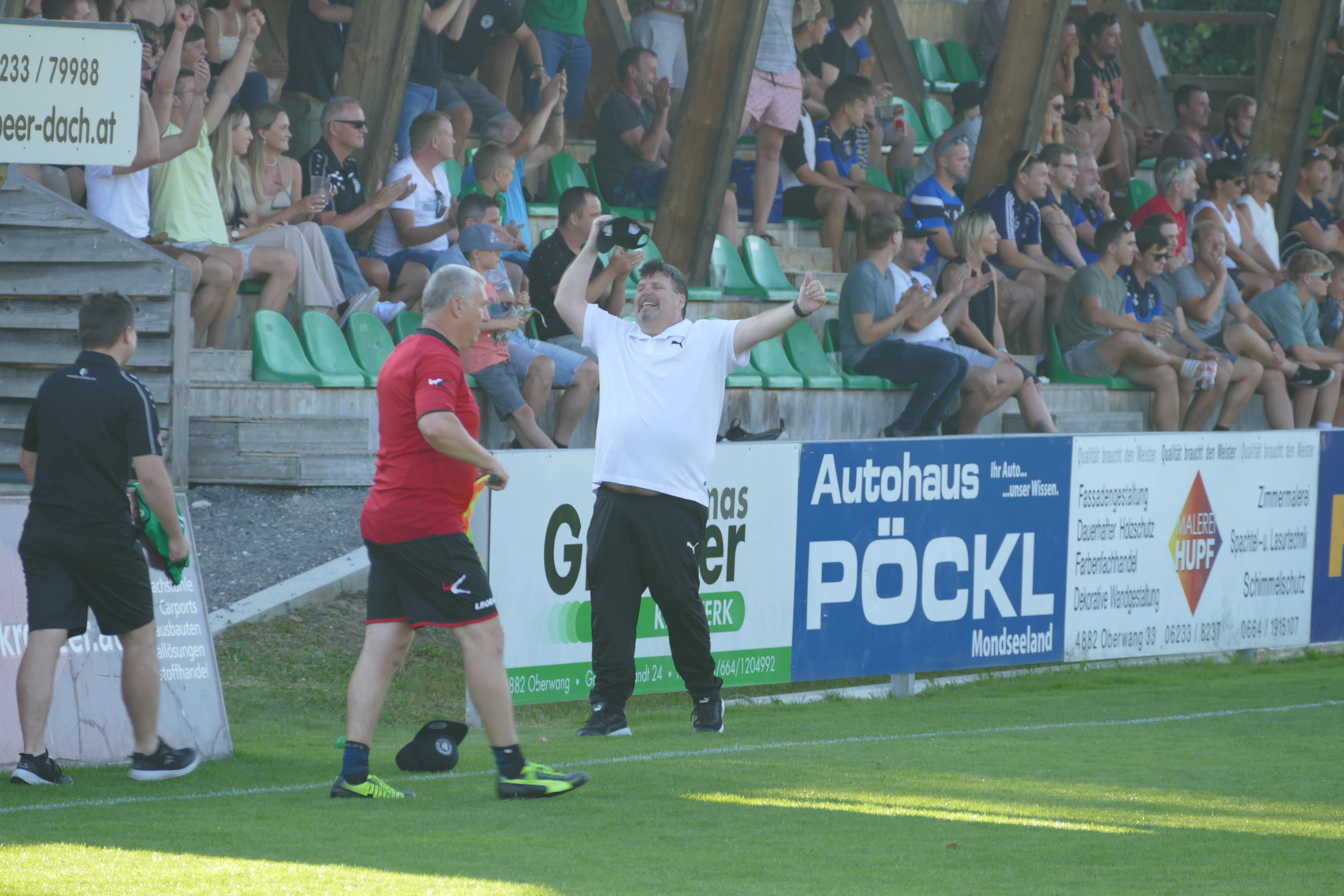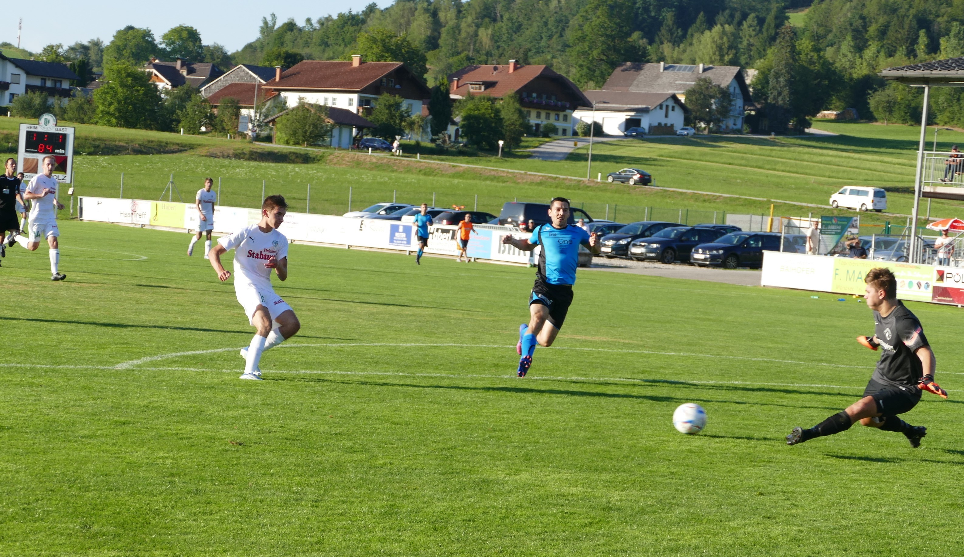 Nach Seitenwechsel tut sich vorerst wenig bei noch sehr sommerlichen Temperaturen in Oberwang. Dafür können die Hausherren in der 55. Minute ein dickes Ausrufezeichen setzen. Nach einem Eckball kommt Innenverteidiger Markus Soriat volley zum Abschluss und trifft zum 1:0. Dieser Treffer tut dem Oberwanger Spiel sichtlich gut, das Spiel verlagert sich wieder mehr in die Hälfte von Gampern. Simon Loindl probiert es in der 59. Minute mit dem nächsten Abschluss, wieder muss sich Gamperns Keeper langmachen, um den Ball über die Latte zu lenken. Genauso überraschend wie der Oberwanger Führungstreffer fällt dann auch der Ausgleich für Gampern. Simon Premm macht den Partycrasher und erzielt mitten in der guten Phase der Oberwanger den Treffer zum 1:1. (66.) Insgesamt geht der Spielstand aber so in Ordnung. Beide Mannschaften versuchen danach, den Führungstreffer zu erzielen. Gampern hat in der 73. Minute Glück, dass ein abgefälschter Schuss von Christoph König neben das Tor geht. Auf der anderen Seite kommt Wolfgang Draschwandtner zum Schuss, der aber gerade noch abgeblockt wird. (80.) Die Schlussphase bleibt hochspannend. In der 84. Minute kann Sandro Sperr dem letzten Verteidiger von Gampern den Ball abluchsen, aber im Eins-gegen-Eins mit dem Tormann versagen ihm dann die Nerven. Es war die vermeintlich letzte Topchance auf die neuerliche Führung, aber dann wird es noch einmal hektisch in der Nachspielzeit. Wir schreiben die 92. Minute, als Sandro Sperr nach einer Flanke im Strafraum umgetreten wird. Der Schiedsrichter gibt den Elfmeter für Oberwang. Markus Soriat tritt zum Strafstoß an und hämmert den Ball zum umjubelten 2:1 Siegtreffer ins Kreuzeck.