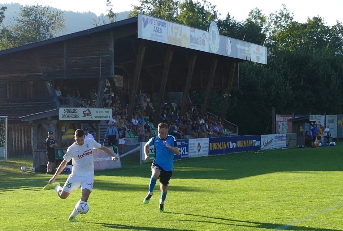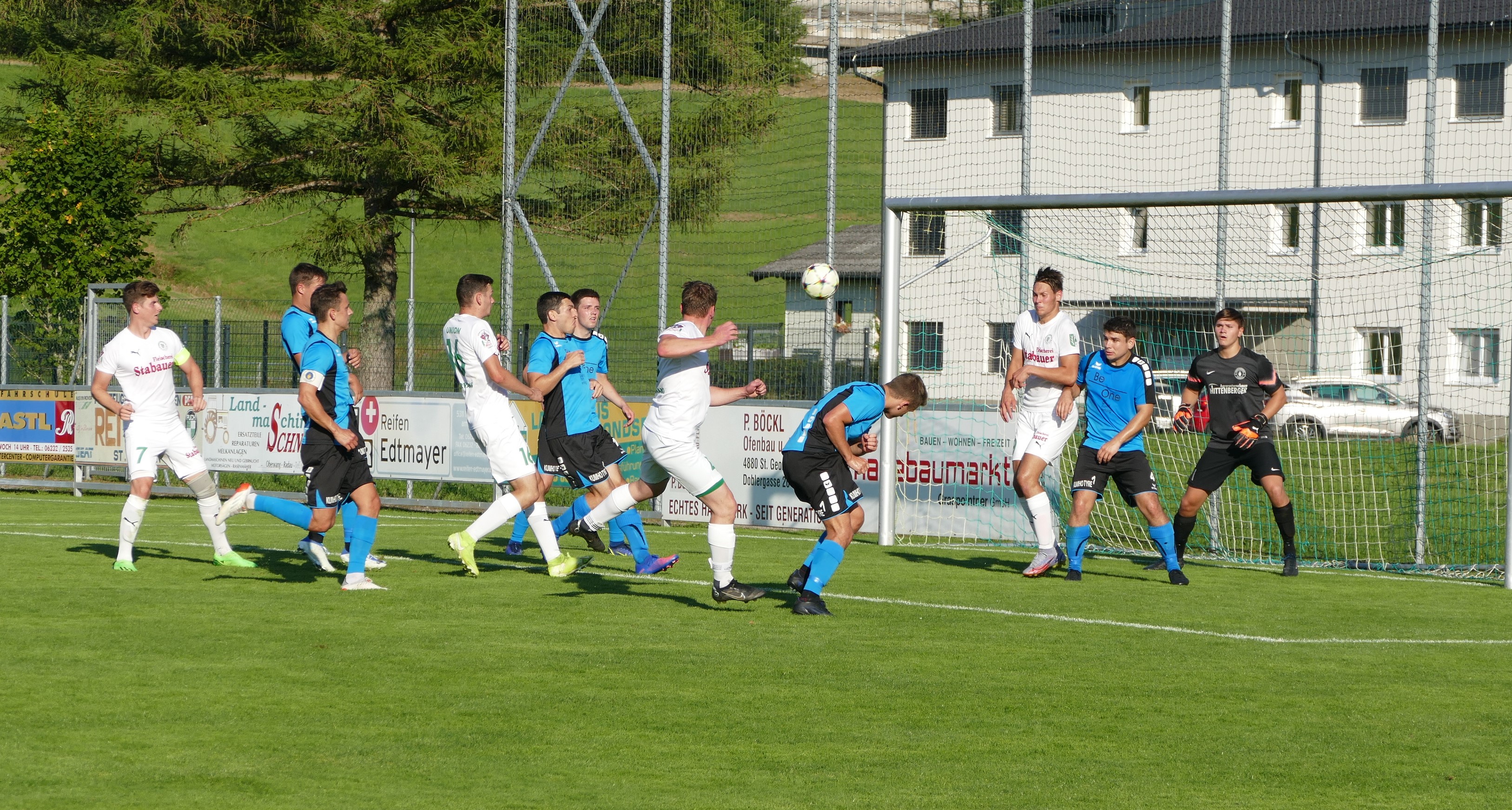 Der neue Trainer macht sich von Beginn weg an der Seitenlinie bemerkbar und pusht die Mannschaft nach vorne. Die Oberwanger starten auch gut rein in die Partie, Michael Heiml setzt in der 9. Minute einen Weitschuss neben das Tor. Auf der Gegenseite probiert es Simon Premm mit einem Schuss, der aber am langen Eck vorbei geht (13.) Gampern übernimmt nach einer Viertelstunde das Kommando im Spiel und kommt jetzt zu Chancen. In der 16. Minute wird Valentin Fuchs im Strafraum von den Oberwangern unfreiwillig bedient, er kann aber Oberwangs Tormann David Röthleitner nicht überwinden. Die Hausherren haben dagegen einen kleinen Durchhänger, bis sich in der 23. Minute plötzlich Simon Loindl durch die Verteidigung tankt. Dominik Moshammer im Tor der Gäste ist aber aufmerksam und kann den Schuss parieren. In der 35. Minute kommt wieder einmal Simon Premm aus einer guten Position für Gampern zum Abschluss, aber der Ball geht drüber. Noch knapper dran am Torerfolg ist er in der 41. Minute, aber Tormann David Röthleitner gelingt es mit einer Traumparade, den Ball aus dem Kreuzeck zu fischen. Kurz vor der Pause hat Christoph König die Topchance auf die Oberwanger Führung, aber er kann aus kurzer Distanz den Tormann nicht überwinden (45.) In der Nachspielzeit der ersten Hälfte kommt auch noch Sandro Sperr zu einem guten Schuss, aber wieder ist Moshammer auf dem Posten. Zur Pause steht es noch torlos 0:0.