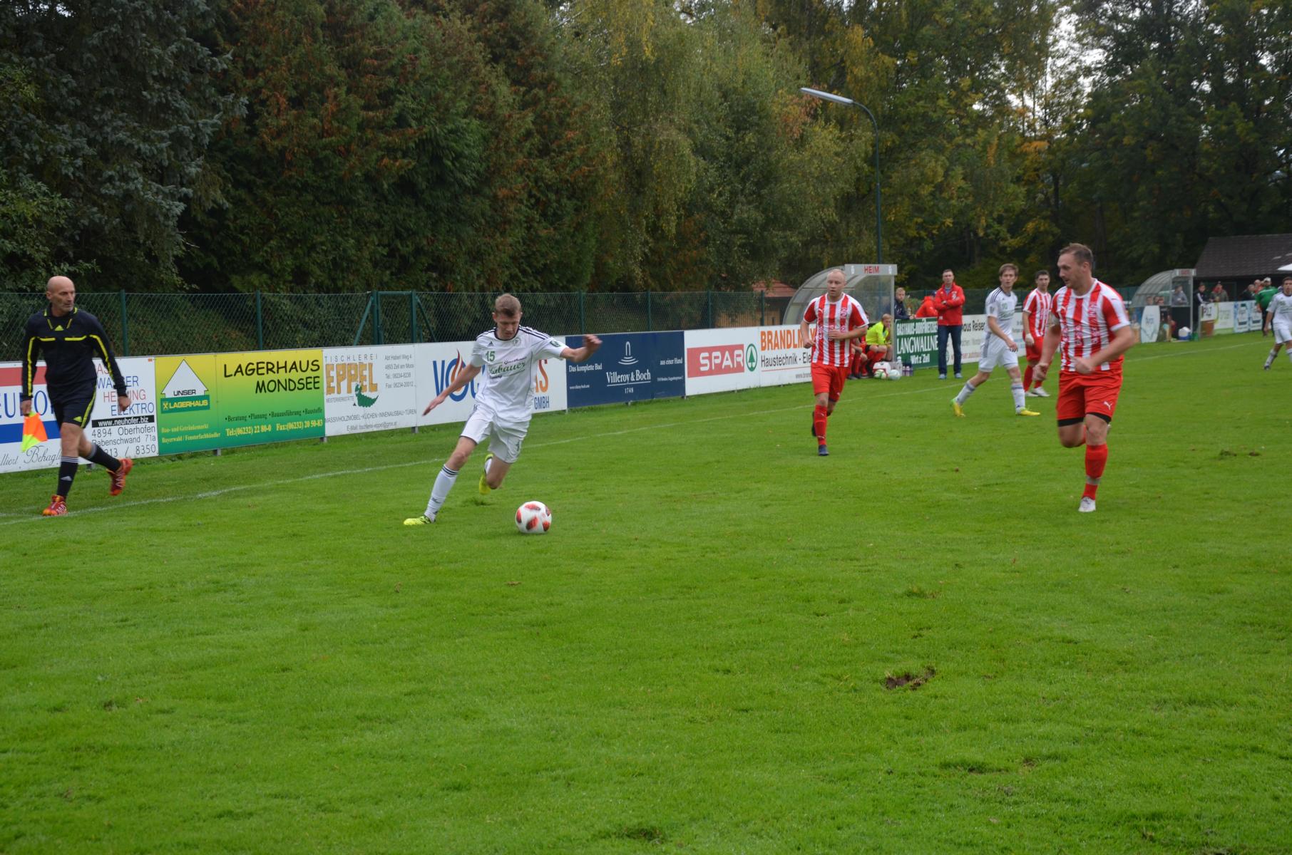 Die Zeller haben sich im Laufe der ersten Halbzeit gesteigert und können auch in der zweiten Halbzeit die erste Torchance verzeichnen. Nach einem Eckball von Daniel Dorfinger landet ein Kopfball von Maximilian Pointinger in den Händen von Tormann David Röthleitner. (50.) Besser machen es die Oberwanger in der 54. Minute: Der fleißige Marco Szalay erobert den Ball in der eigenen Hälfte und bedient Markus Lametschwandtner auf dem rechten Flügel. Der Ball kommt zu Robert Speer in der Mitte und der lässt sich diese Chance nicht entgehen und schlenzt den Ball mit links unhaltbar ins linke Kreuzeck – 1:0. Fast hätte Zell am Moos wenig später ausgeglichen. Ex-Oberwang Spieler Daniel Dorfinger ist von rechts zur Mitte gezogen und hat mit seinem Schuss David Röthleitner schon überwunden, aber Peter Lametschwandtner klärt mit einer tollen Rettungsaktion auf der Linie. (59.) Es ist jetzt ein offenes Spiel mit Chancen auf beiden Seiten. In der 62. Minute nimmt Mathias Schmidt einen Ball am 16er volley, der Schuss geht rechts daneben. Die Oberwanger machen sich danach mit Ballverlusten im Mittelfeld das Leben selbst schwer. Eben so ein Ballverlust führt in der 70. Minute zum 1:1 Ausgleich für Zell am Moos. Die Heimmannschaft schaltet nach der Balleroberung schnell um, Lochpass auf Tamas Imrö und der lässt David Röthleitner im Tor keine Chance. Die Oberwanger stecken den Gegentreffer aber schnell weg und zeigen eine starke Reaktion. In der 76. Minute bringt Michael Heiml einen Stanglpass zur Mitte und Marco Szalay schiebt zur vielumjubelten 2:1 Führung für Oberwang ein. Die Gäste spielen jetzt befreit auf und legen noch einen Treffer nach. Markus Lametschwandtner kommt wieder über den rechten Flügel, findet Robert Speer in der Mitte und der schnürt den Doppelpack mit dem Treffer zum 3:1 Endstand. (83.) Bis auf einen direkten Freistoß von Patrick Holzner, den David Röthleitner erst im Nachfassen bändigen kann, können die Zell am Mooser danach nichts mehr entgegenhalten.