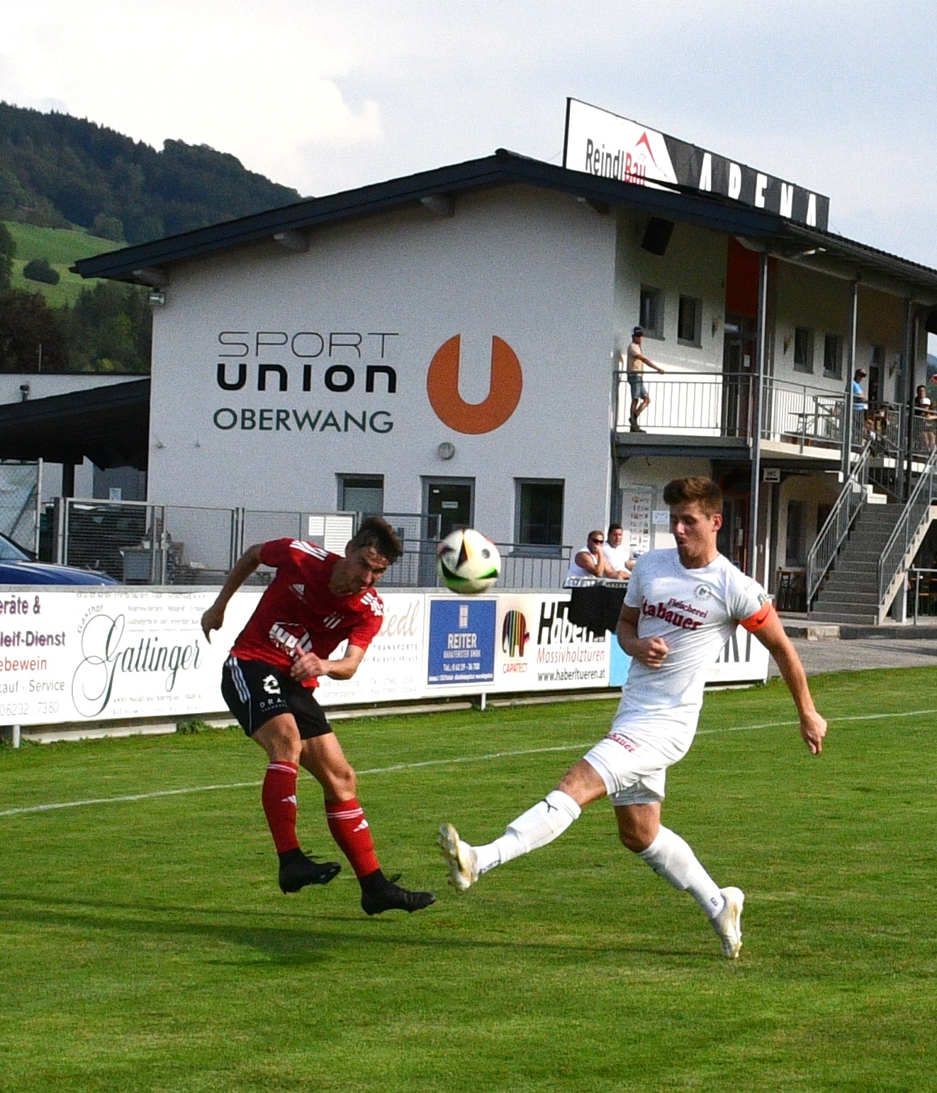 Die ersten beiden Saisonspiele mussten die Oberwanger im Regen austragen, dieses Mal scheint die Sonne für die Heimmannschaft. In der ersten Viertelstunde passiert im Spiel nicht viel, die Torhüter mussten sich noch nicht die Handschuhe schmutzig machen. In der 17. Minute ist der Ball dafür gleich einmal im Tor. Robert Speer wird mit einer Maßflanke bedient und lässt per Kopf Gästetormann Tobias Pramberger keine Chance – 1:0. Die Oberwanger zeigen sich effizient und gehen gleich mit der ersten Chance in Führung. Oberwangs Tormann Christoph Soriat muss erstmals in der 22. Minute eingreifen, der Schuss von Michael Bamberger stellt aber kein großes Problem dar. Die Gäste aus Scharnstein sind jedoch mit Fortdauer der Partie die etwas aktivere Mannschaft. Nach einem Eckball versucht es Lukas Aizetmüller per Kopfball, setzt diesen aber über das Tor. (29.) In der 40. Minute gibt es dann wieder einmal eine tolle Angriffsaktion der Oberwanger zu sehen. Sandro Sperr bedient Simon Loindl mit einem perfekten Lochpass, aber der Abschluss fällt zu zentral aus und wird eine Beute des Torhüters. Zur Pause führt die Union Oberwang mit 1:0.