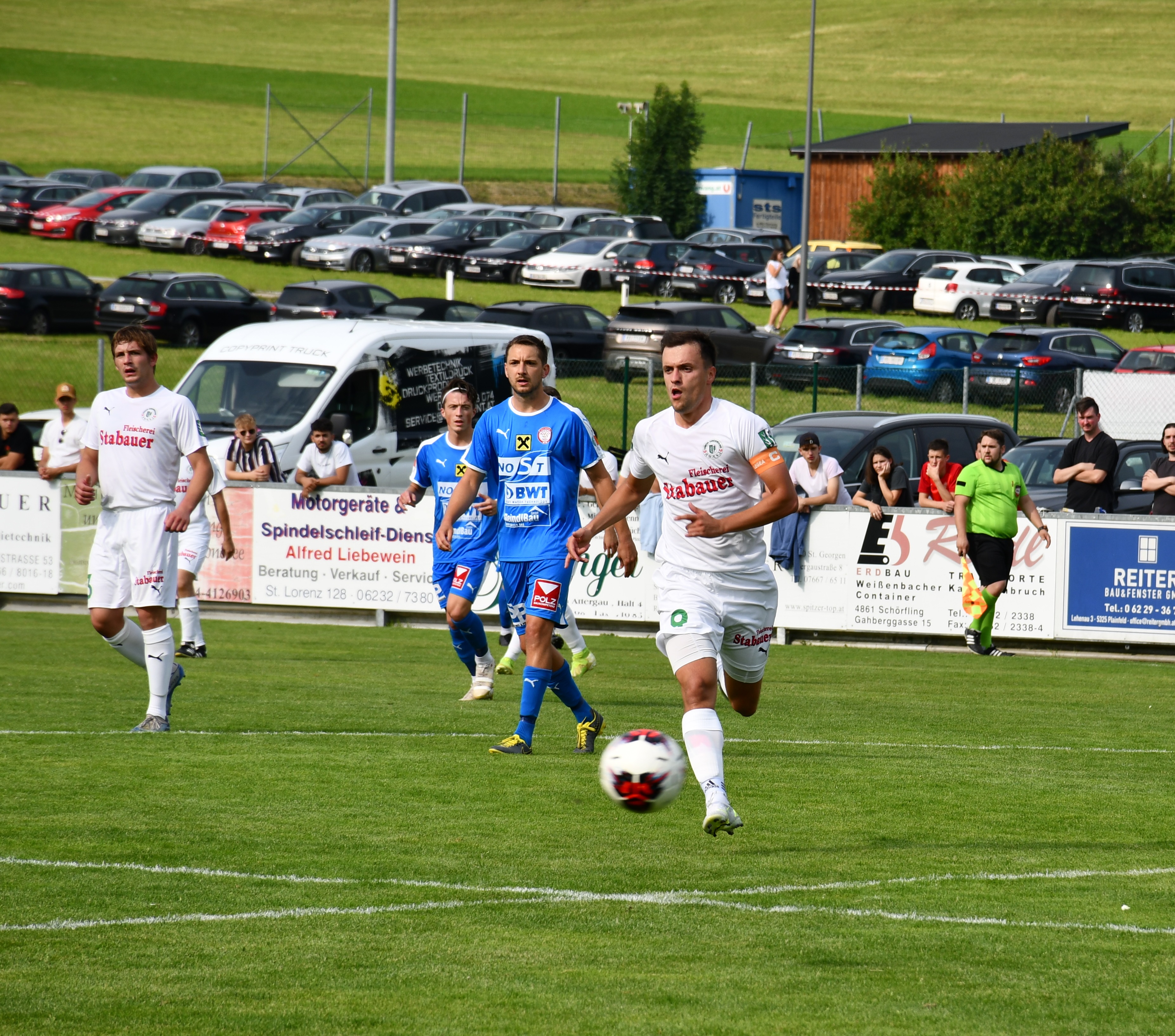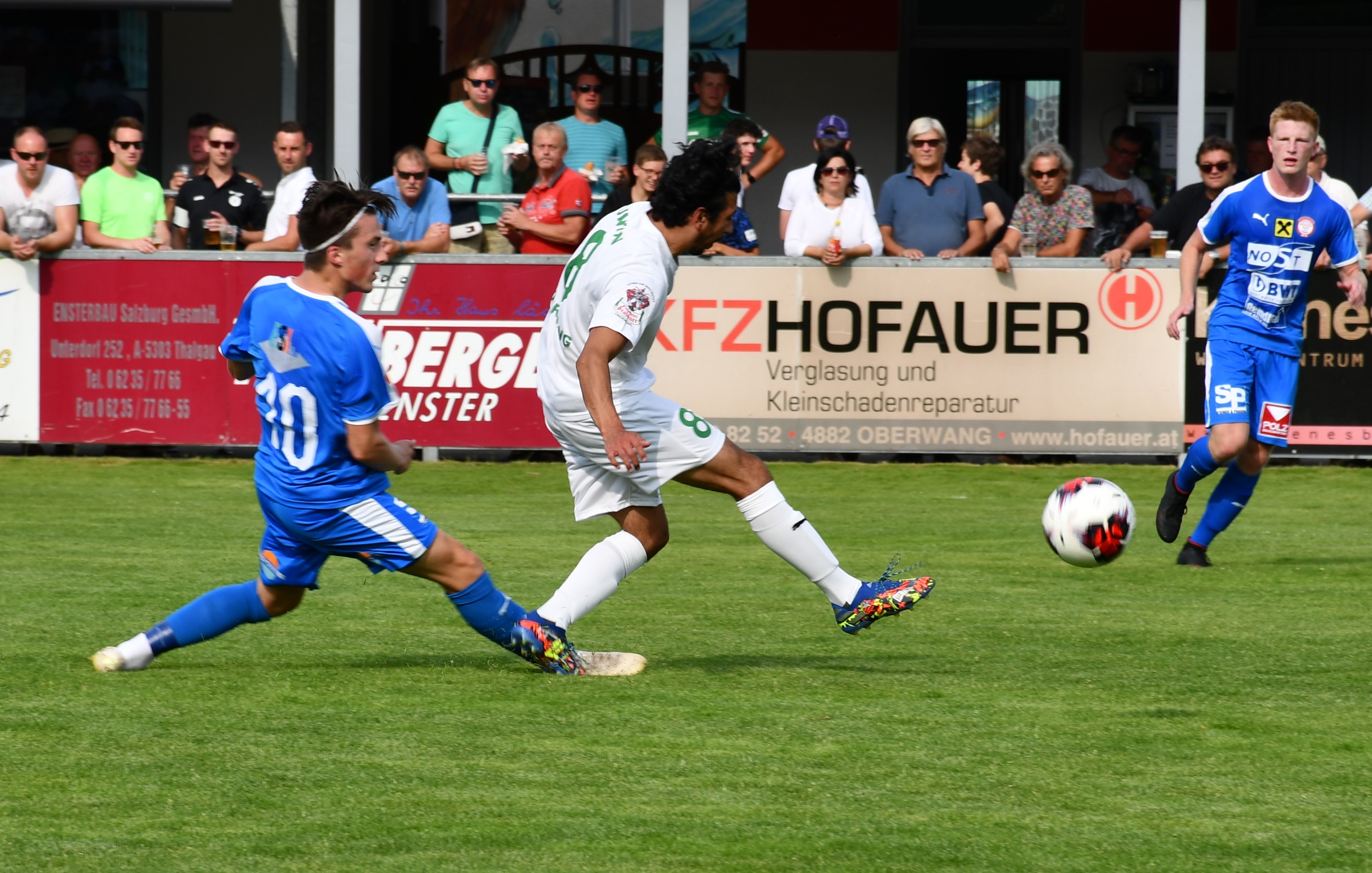 Vor einer ordentlichen Zuschauerkulisse ist es der Favorit aus Mondsee, der von Beginn weg das Tempo vorgibt. Bereits in der zweiten Minute muss Oberwangs Tormann Marko Plank das erste Mal einen Mondseer Schuss parieren. In der 5. Minute versucht es Lukas Leitner, sein Abschluss geht aber über das Tor. Die Oberwanger sind von Beginn weg engagiert, tun sich gegen den starken Gegner aber schwer, in die Partie zu kommen. In der Anfangsphase können sie sich auf ihren Torwart verlassen, der die Null festhält. So auch in der 12. Minute, als Maximilian Grössinger aus aussichtsreicher Position abzieht. Eine Minute später ist er aber machtlos, nach einem Querpass drückt Lukas Leitner den Ball aus kurzer Distanz über die Linie zum 1:0 für Mondsee. Auch nach dem Führungstreffer bleiben die Mondseer spielbestimmend. Ernst Grundner setzt einen Volleyschuss aus kurzer Distanz übers Tor (19.) und Marko Plank zeigt bei einem Freistoß erneut eine tolle Parade (37.). Die erste Halbzeit neigt sich schon dem Ende zu, da gelingt Mondsee doch noch der Treffer zum 2:0. Nach einem Eckball trifft Tobias Freinberger per Kopf. (42.) In der Schlussminute der ersten Hälfte hat Oberwang die bisher beste Tormöglichkeit. Neuzugang Adel Khalili schießt aus der Drehung, aber der Schuss wird noch abgeblockt. Somit geht es mit einem 2:0 Vorsprung für die Gäste aus Mondsee in die Kabine.