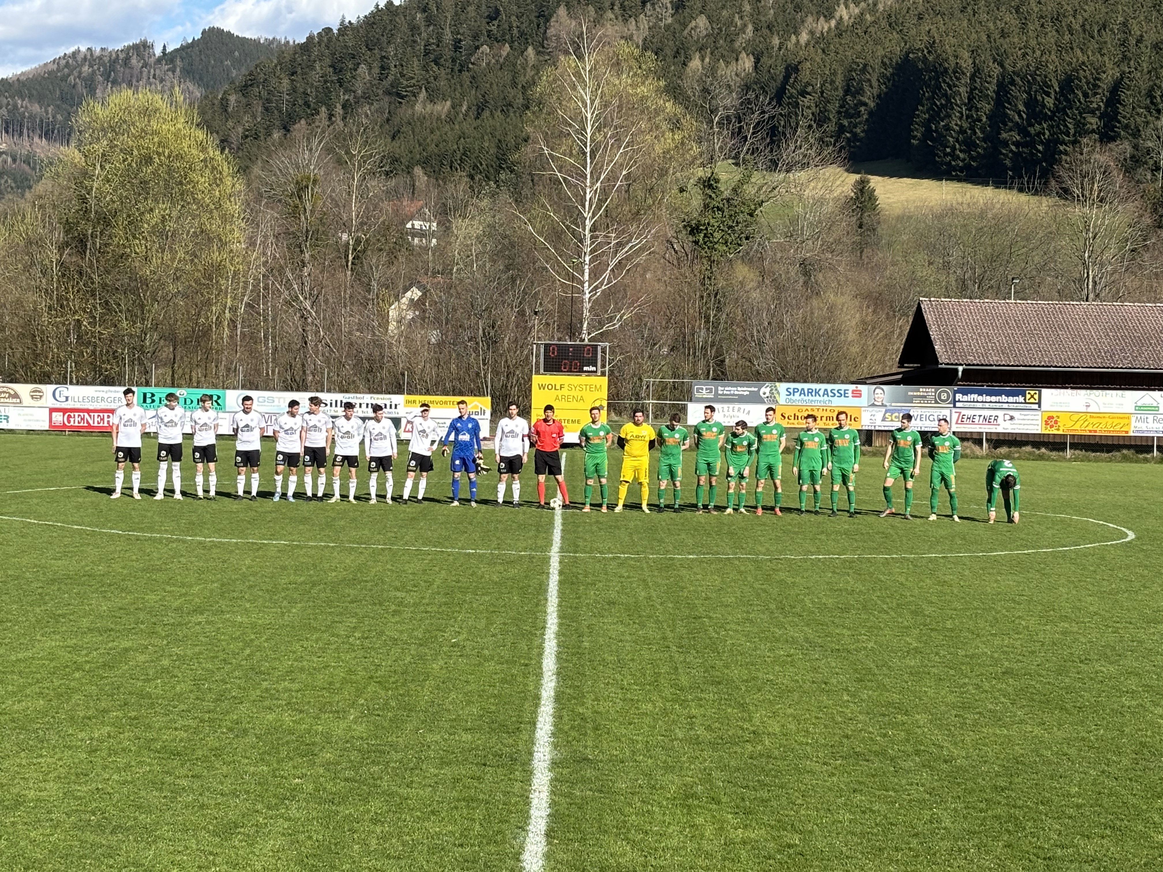 Das Spitzenspiel beginnt gleich einmal vielversprechend für die Oberwanger. Robert Speer kommt gleich in der ersten Minute zum Abschluss, verzieht aber klar. Es sollte aber vorerst die einzige Chance in der Partie bleiben, beide Mannschaften wollen zu Beginn kein zu großes Risiko eingehen. Dann übernehmen die Scharnsteiner das Kommando und werden konkreter vor dem Tor. In der 10. Minute versucht sich Joseph Pöll mit einem Weitschuss, der aber von Oberwangs Tormann Christoph Soriat entschärft wird. Die nächste Chance geht auf das Konto von Dominik Feßl, dessen Abschluss nur knapp übers Oberwanger Tor geht. (13.) Dann gibt es erneut wieder viel Mittelfeldgeplänkel, ehe Scharnstein einen Freistoß zugesprochen bekommt. Lukas Aizetmüller nimmt sich der Situation an, verzieht aber knapp. (32.) Kurz vor der Pause bringt Marco Weber einen Heber zwar am Tormann vorbei, aber er trifft auch das Tor nicht. (43.) Von den Oberwangern ist in der Offensive wenig zu sehen, erst in der Schlussminute der ersten Hälfte kommt Christoph König mal in eine gute Abschlussposition, schießt aber klar über das Tor. Mit 0:0 geht es somit in die Kabine.
