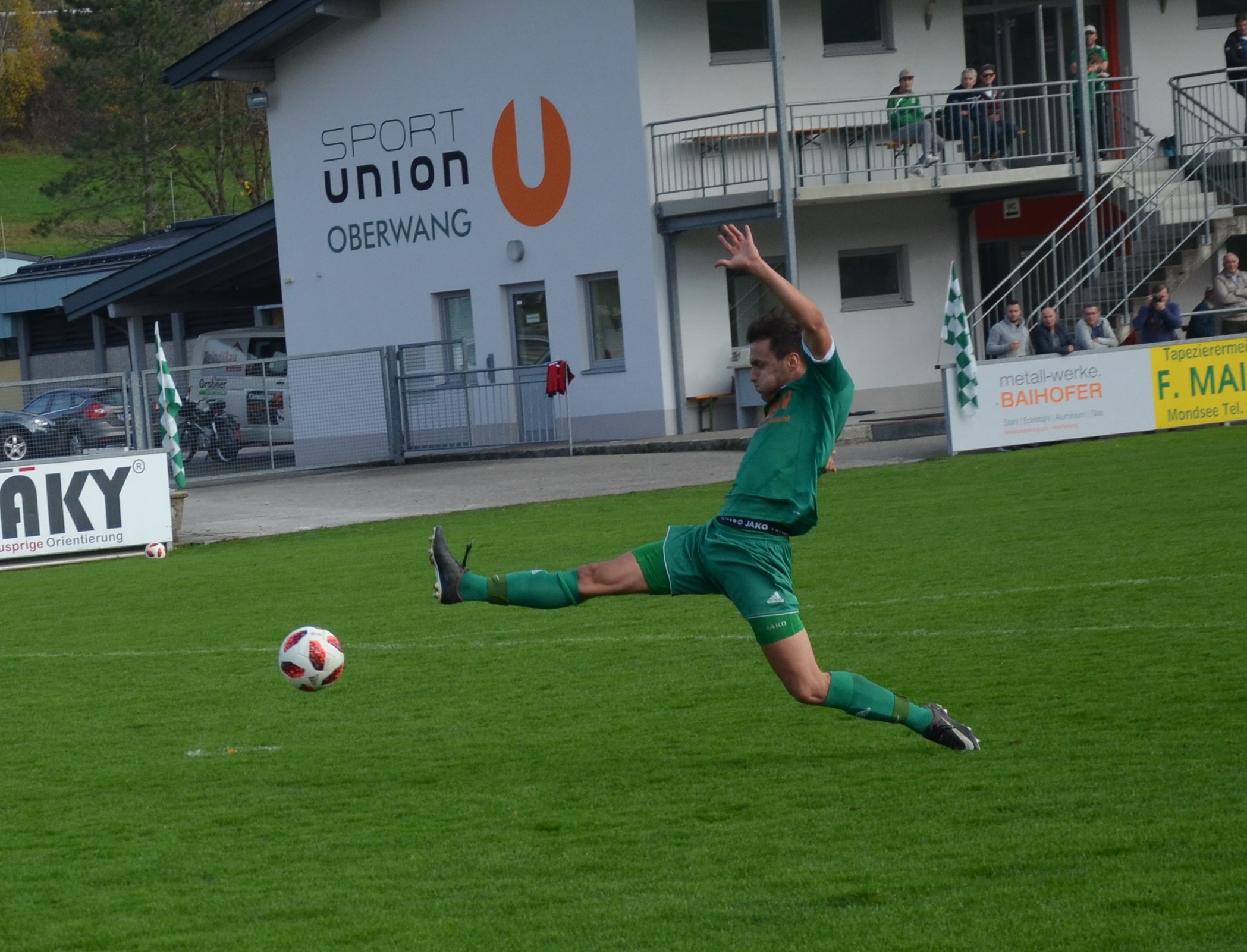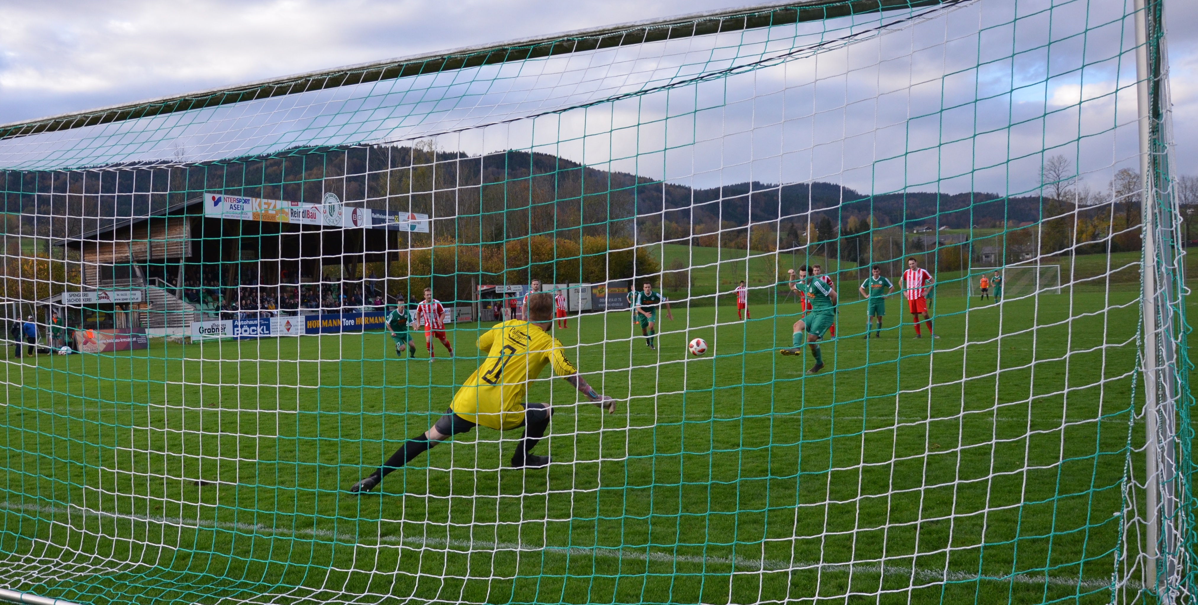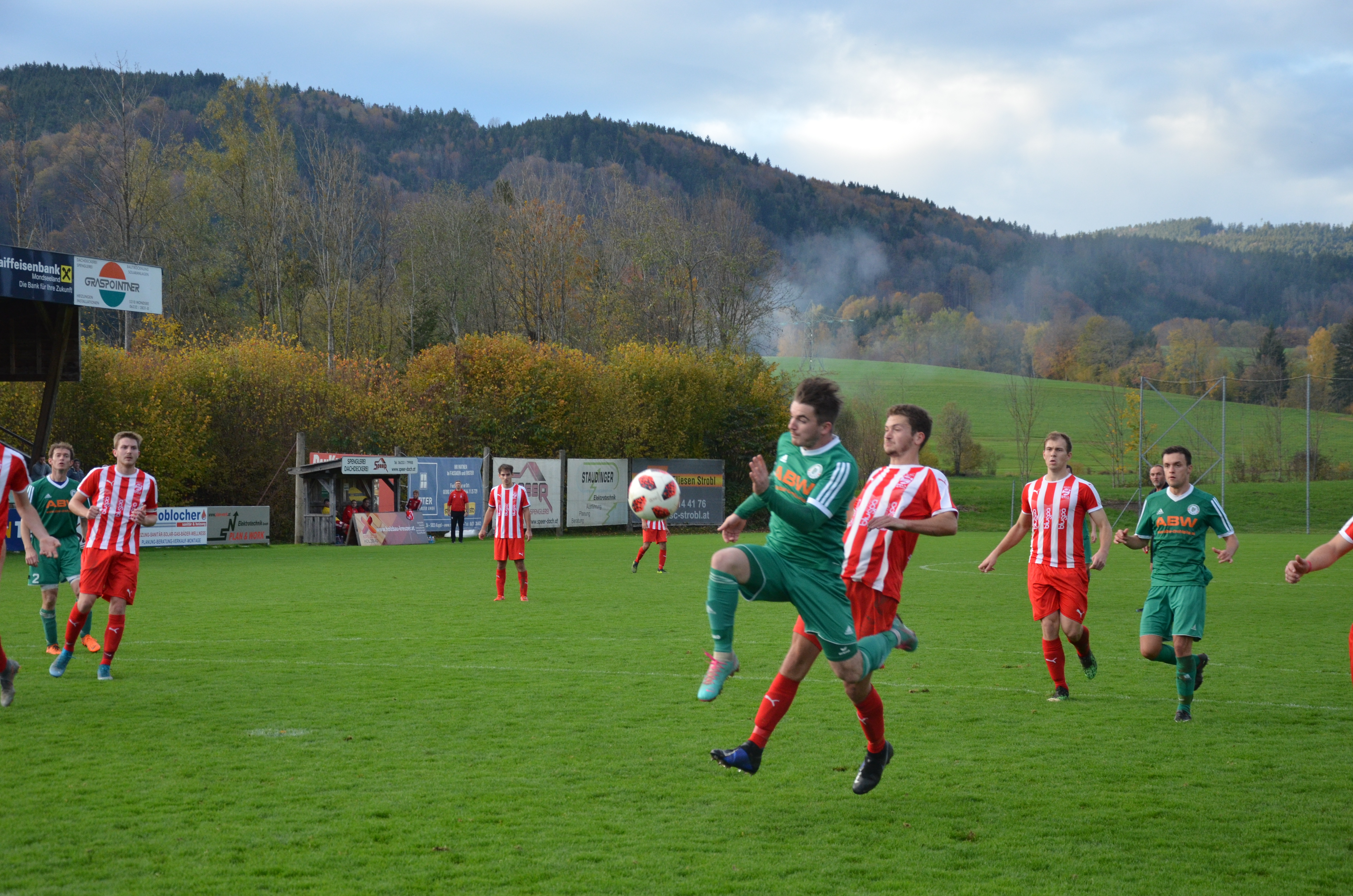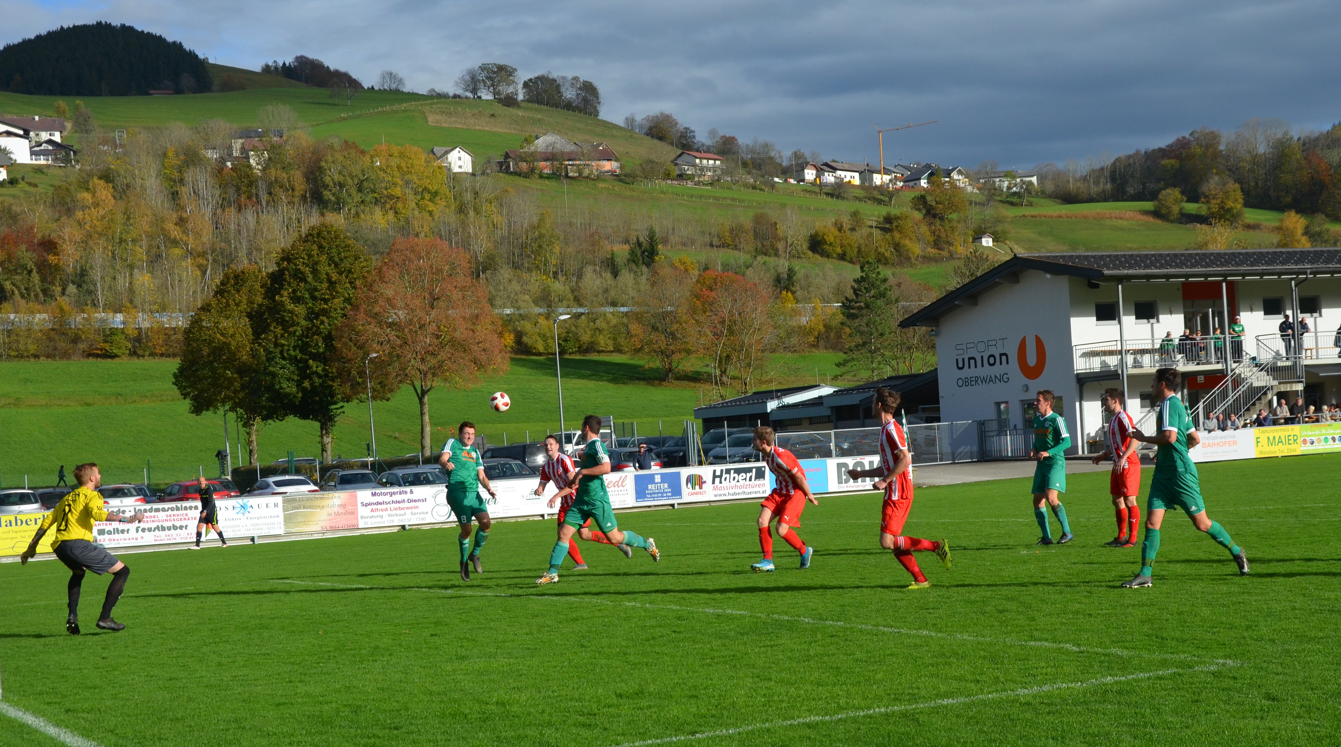 Das Derby braucht etwas um in Schwung zu kommen, beide Mannschaften tun sich auf dem tiefen Boden schwer. In der 14. Minute gibt es die erste Topchance für Oberwang, Josef Heisler setzt den Ball aber an die Innenstange. Zwei Minuten später versucht es wieder Josef Heisler mit einem Schuss, dieses Mal geht der Ball übers Tor. In der 22. Minute muss Mathias Schmidt angeschlagen raus, er wird durch Michael Heiml ersetzt. Nach 26 Minuten gibt es einen Freistoß für Oberwang. Mario Lettner bringt den Ball zur Mitte und Marco Szalay köpfelt wuchtig in die Zeller Maschen – 1:0. Defensiv sind die Oberwanger vor dem Seitenwechsel stabil, offensiv konnte man eine der wenigen Torchancen zur Führung nutzen.