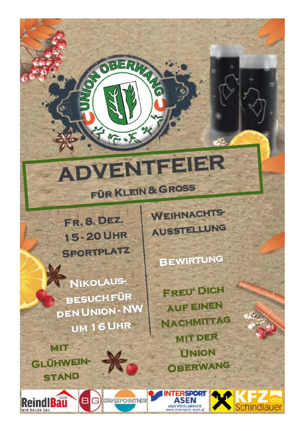 Am 8. Dezember 2023 lud die Union Oberwang zum ersten Mal zur Adventfeier.