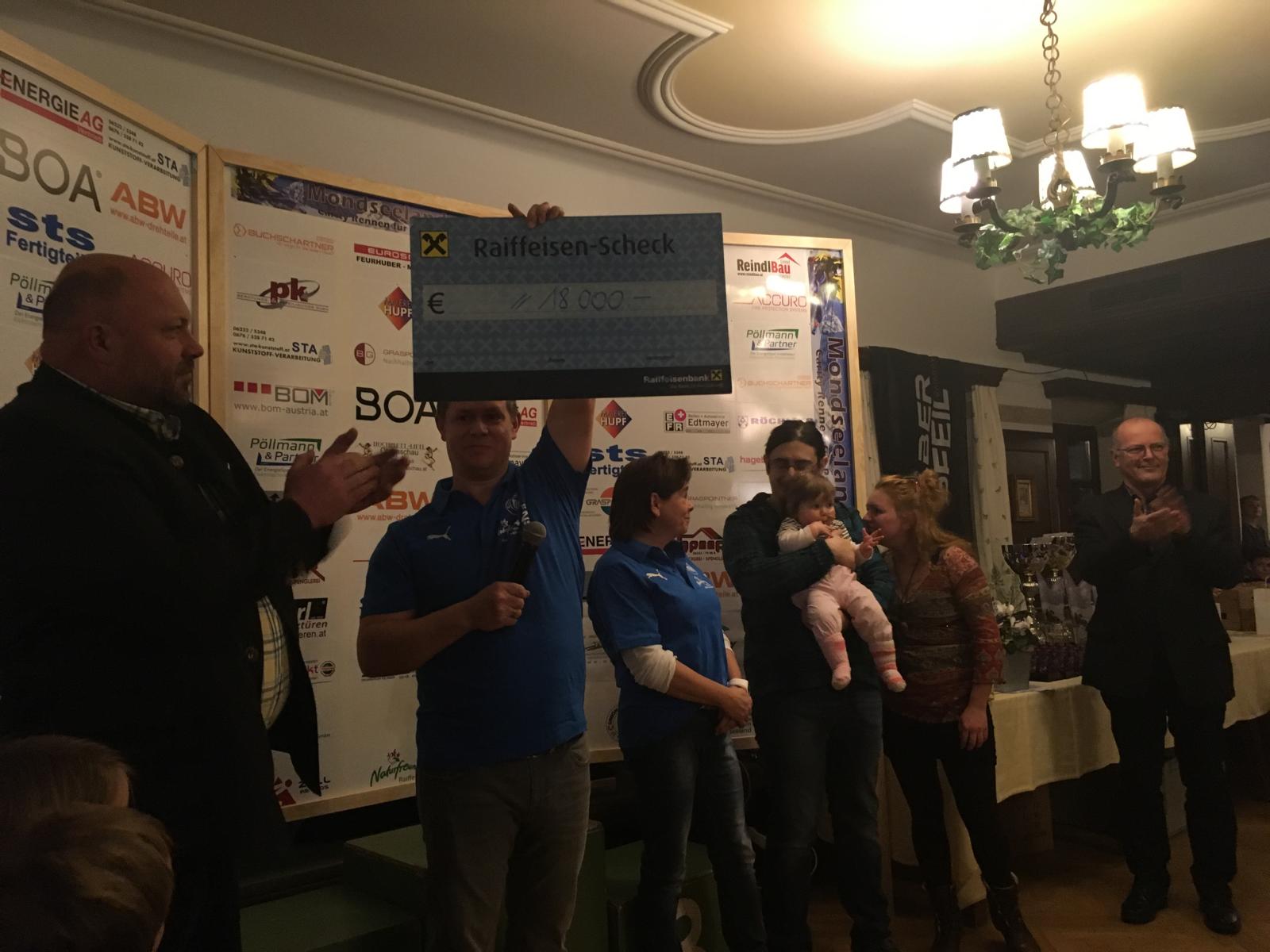 Bei der anschließenden Siegerehrung im Gasthaus Seewirt in Zell am Moos wurden nicht nur die Sieger des Rennen und der Gesamtwertung erwähnt, sondern es fand auch die Scheck Übergabe vom Charity Rennen statt!