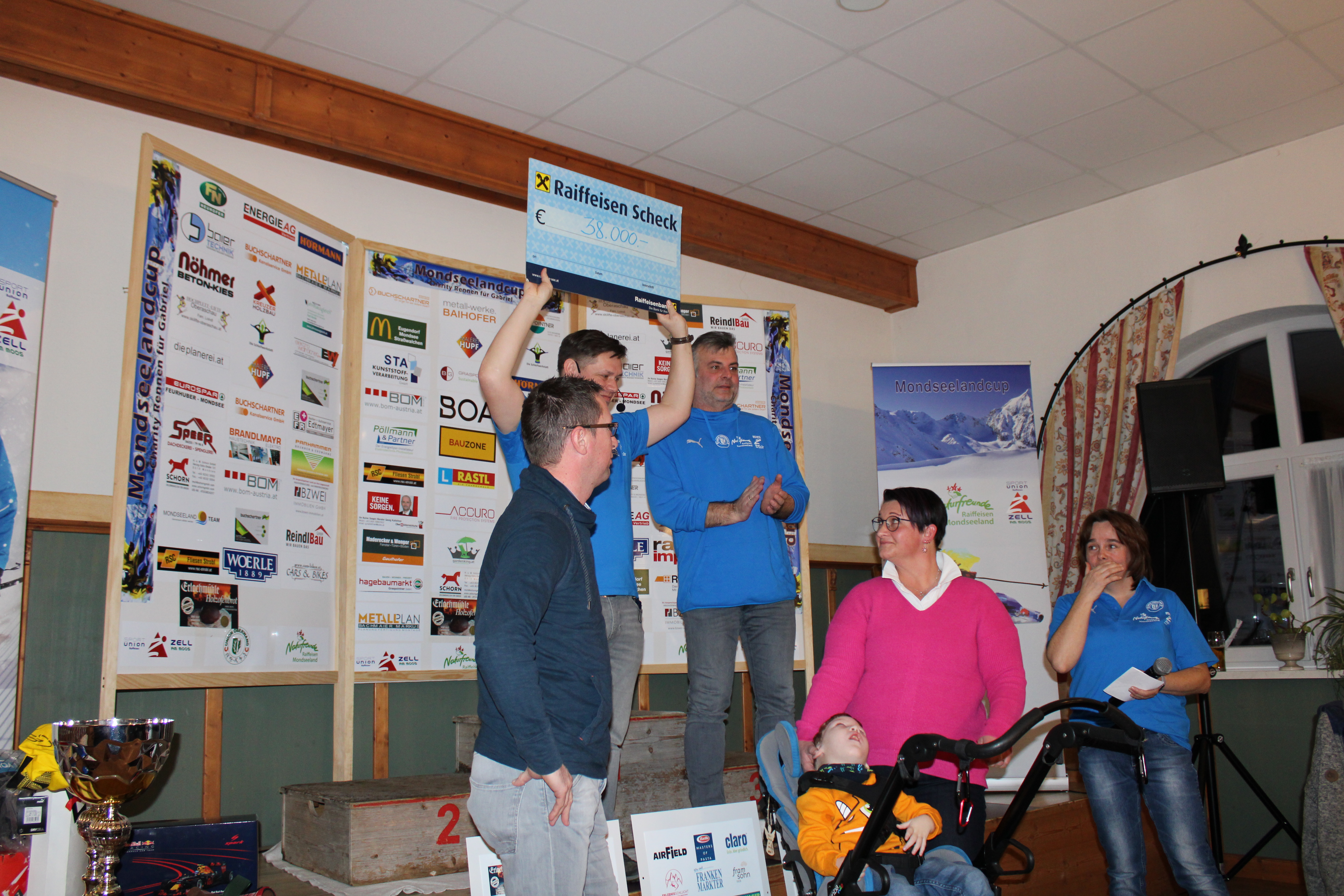 Bei der anschließenden Gesamtsiegerehrung im Gasthaus Stabauer in Oberwang wurden nicht nur die Sieger ausgezeichnet, sondern auch der Scheck vom Charity Rennen an Gabriel und seine Familie übergeben. Hier gilt noch einmal ein großer Dank an alle Sponsoren, die sich an dieser Aktion beteiligt haben!
